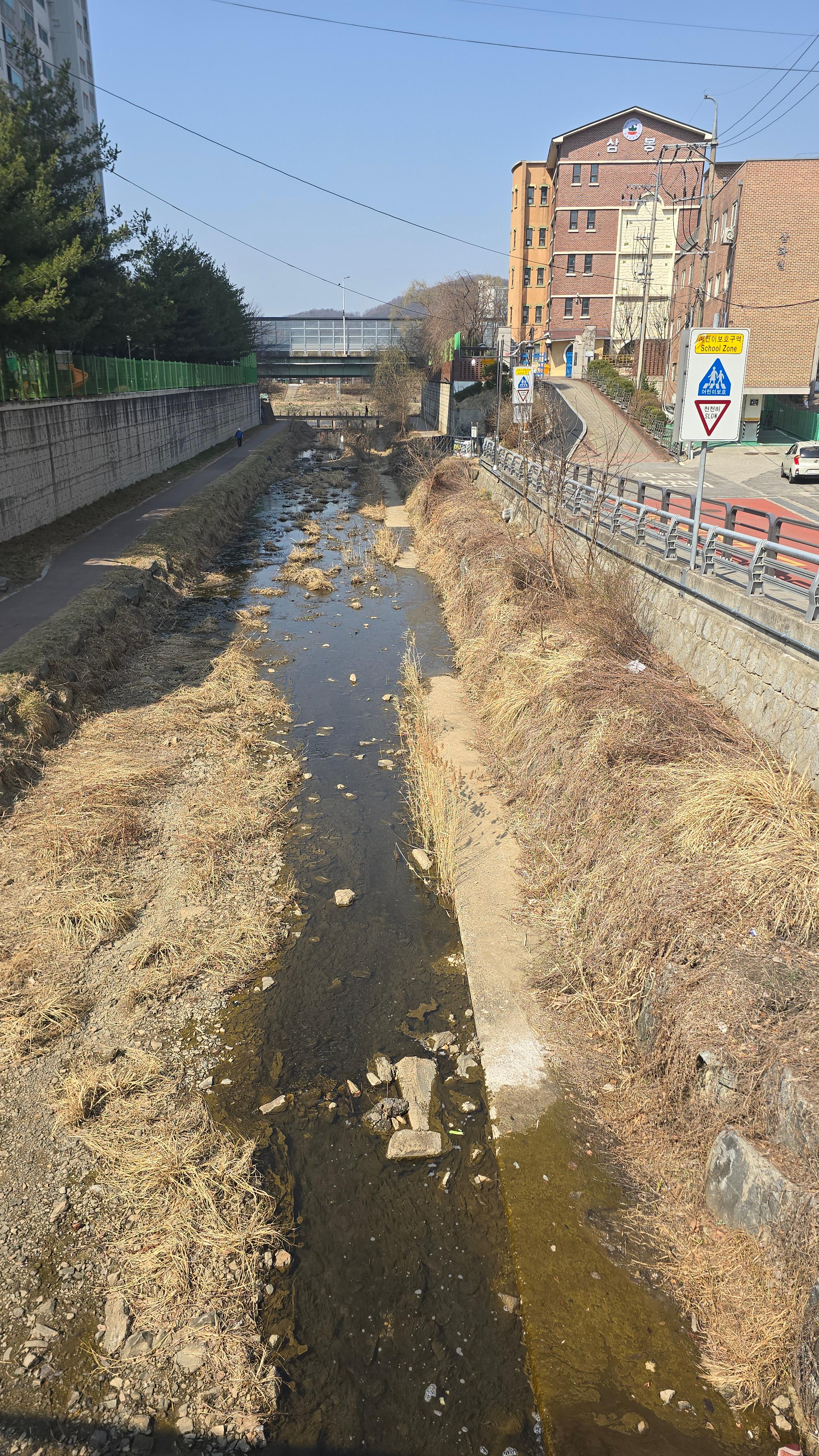 2025.03.21 #도시기록 #안양 #박달2동 #삼봉천 #삼봉추등학교/ 안양 삼봉천에도 봄이 왔나봄. 삼봉천과 안양천 합류 지점에는 삼봉초등학교가 있다. 삼봉초등학교는 경기도 안양시 만안구 박달2동(박달로437번길 21)에 있는 공립초등학교로 2001년 3월 1일 개교했다. "삼봉"은 박달동에 위치한 수리산 자락 삼봉에서 학교 이름을 가져왔다. 교화: 장미, 교목: 은행나무/ 웹사이트 www.asambong.es.kr
