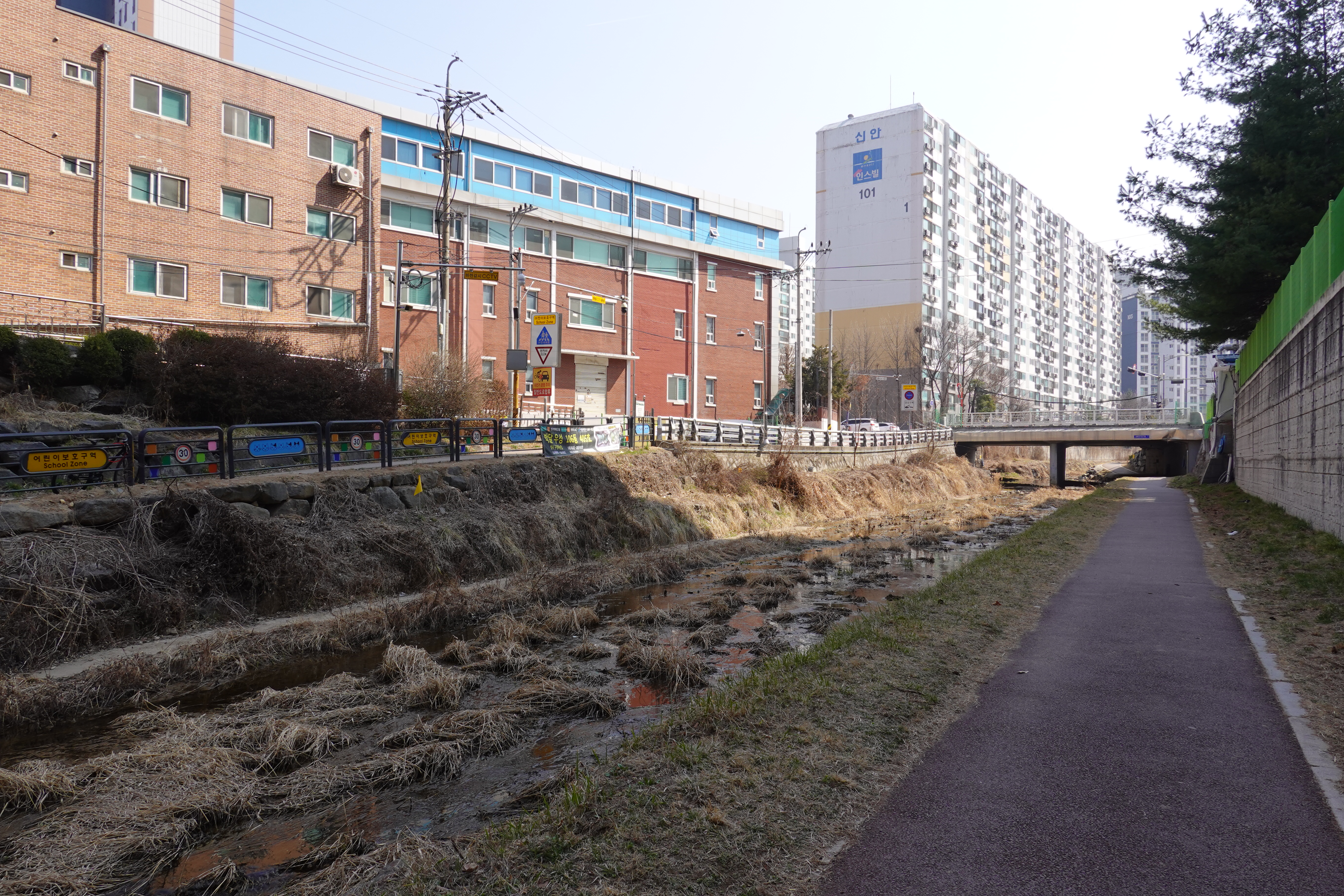 2025.03.21 #도시기록 #안양 #박달2동 #삼봉천 #삼봉추등학교/ 안양 삼봉천에도 봄이 왔나봄. 삼봉천과 안양천 합류 지점에는 삼봉초등학교가 있다. 삼봉초등학교는 경기도 안양시 만안구 박달2동(박달로437번길 21)에 있는 공립초등학교로 2001년 3월 1일 개교했다. "삼봉"은 박달동에 위치한 수리산 자락 삼봉에서 학교 이름을 가져왔다. 교화: 장미, 교목: 은행나무/ 웹사이트 www.asambong.es.kr