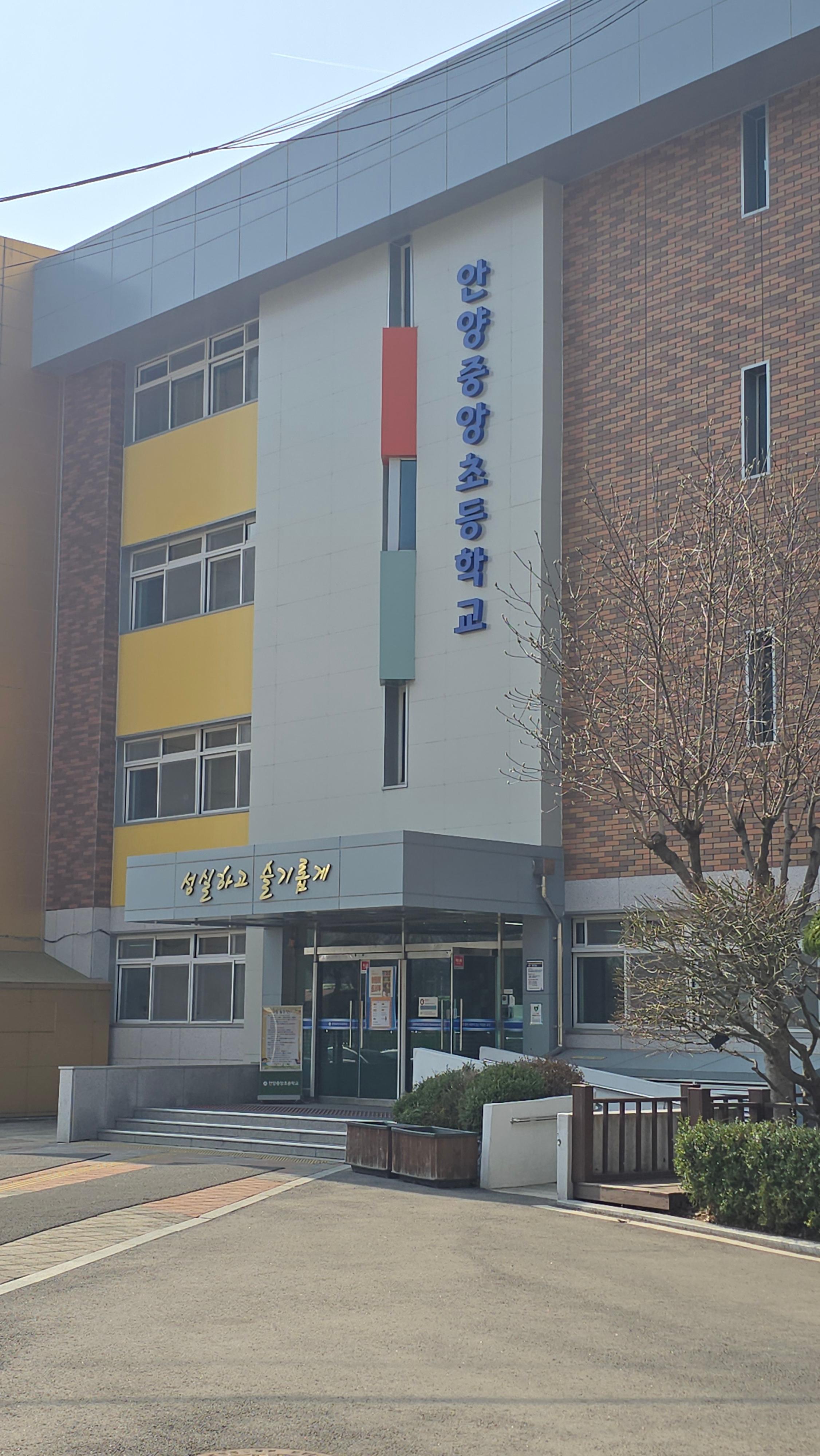 2025.03.21/ #도시기록 #안양 #중앙초등학교/ 안양천과 학의천 물길이 만나는 쌍개울문화광장 옆에 자리한 안양 중앙초등학교. 중앙초등학교는 경기도 안양시 동안구 비신2동(경수대로883번길 11)에 있는 공립초등학교로 1984년 9월4일 개교했다. 교화: 개나리, 교목: 사철나무/