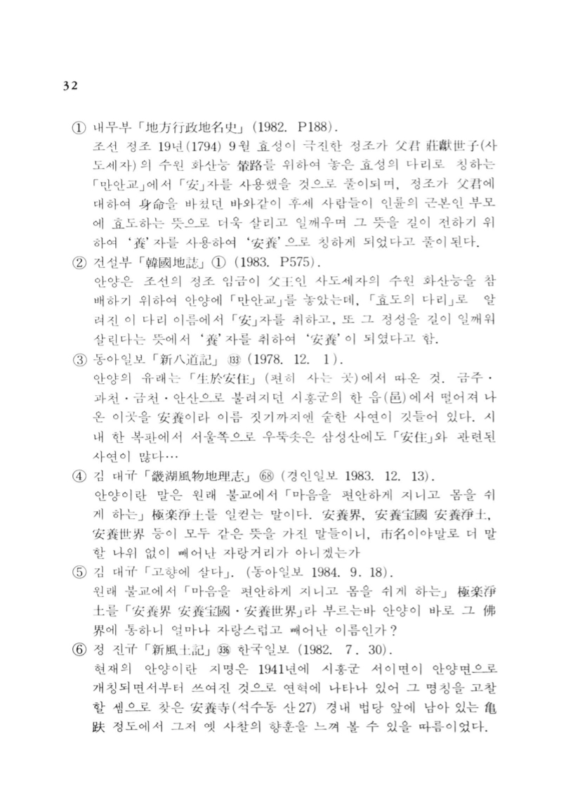 끝으로 본고를 집필하는데 있어 학계의 정병학 교수님(숙명여대 사학과) 최혁수 교수님(전 동국대 국문과) 김영진 박사님(한국농촌경제연구원 연구원장) 이명규 교수님(한양대 국문과) 김병모 교수님(한양대 문화인류학과) 최범훈 교수님(경기대 국문과) 장힘한씨(국문학) 심멸렬씨(불교학)와 안양에 거주 하시는 장배근씨(양지회장) 김형욱씨(전 안양 부읍장) 이성래 씨(전 동면 안양리장) 변원신씨(안양시 ,행정상담위원) 유효득씨(석수동 거주), 박유선씨(한국반공연앵 안양시 지부장) 최명래씨(안양시 안양동 674-89) 둥의 지도와 자문에 힘입은 바 컸었다.