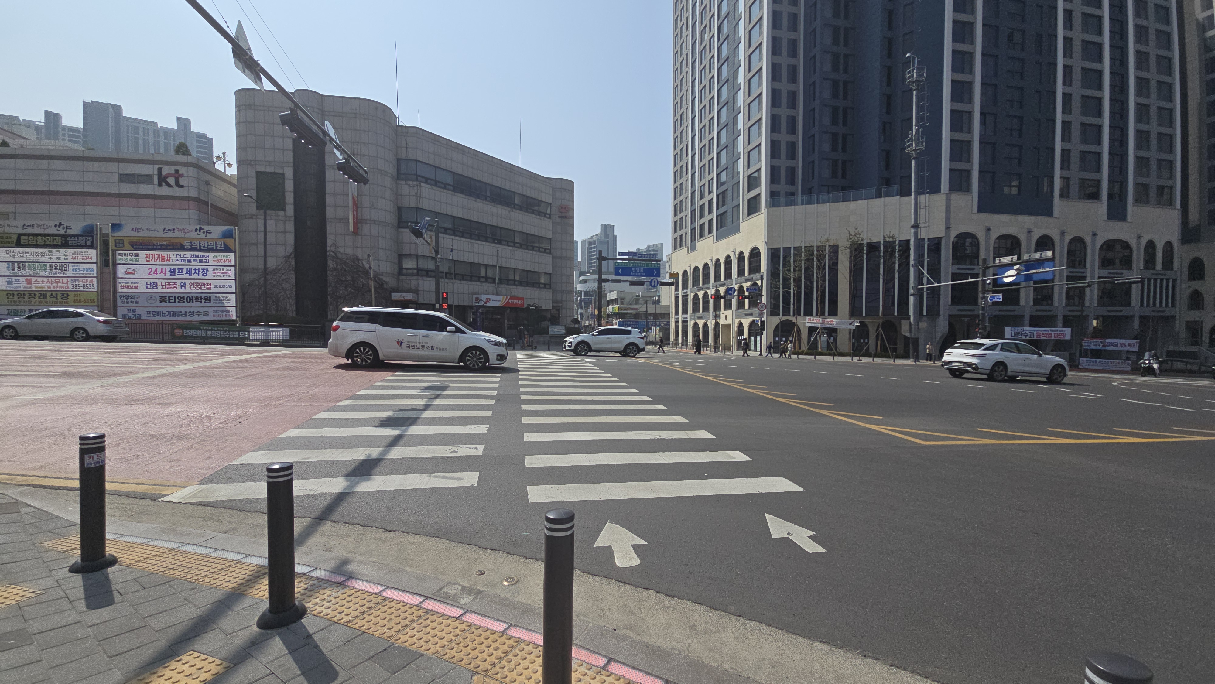 2025.03.23/ #도시기록 #안양5동 #횡단보도/ 안양시 만안구 "우체국사거리"라 불리우던곳. 안양5동 옛 결혼회관 자리에 오피스텔 (25층의 주상복합 판테온 디오르나인 3개동)이 들어선 이후 우체국사거리(서안양우체국~안양초교)에 횡단보도가 새로 설치돼 지하도로 다니던 불편이 해소됐다. 안양초교~남부시장 방향에는 기존의 육교와 엘리베이터를 이용할수 있다.