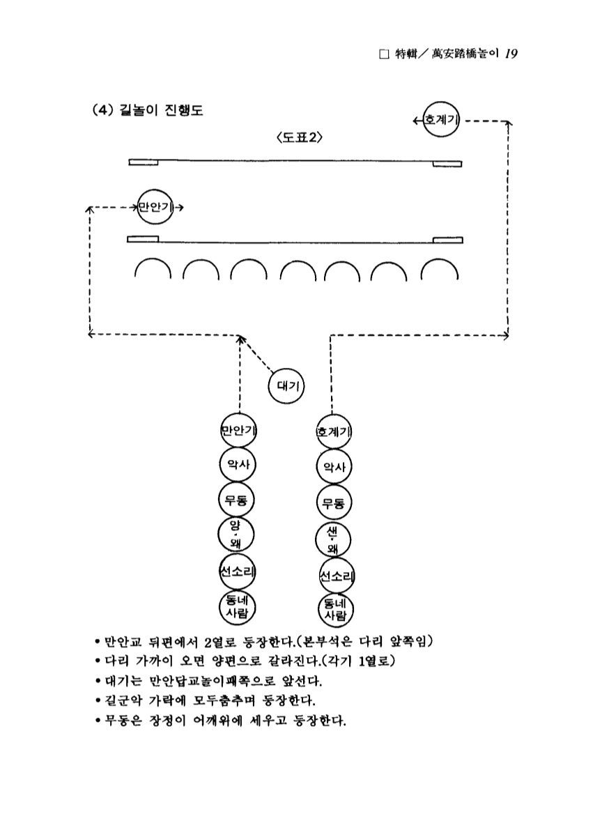 아래 자료는 안양문화원에서 1987년 12월31일자로 발간한 향토지 <안양문화> 제 6호에 게제된 >특집 _안양 만안답교놀이 실태조사> 내용으로 이병옥교수(한국체육대학 무용학과)가 답교놀이에 참여했던 어르신들과 관계자들을 만나 조사라하고 정리해 쓴글이다