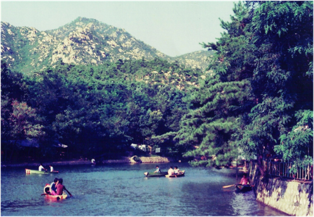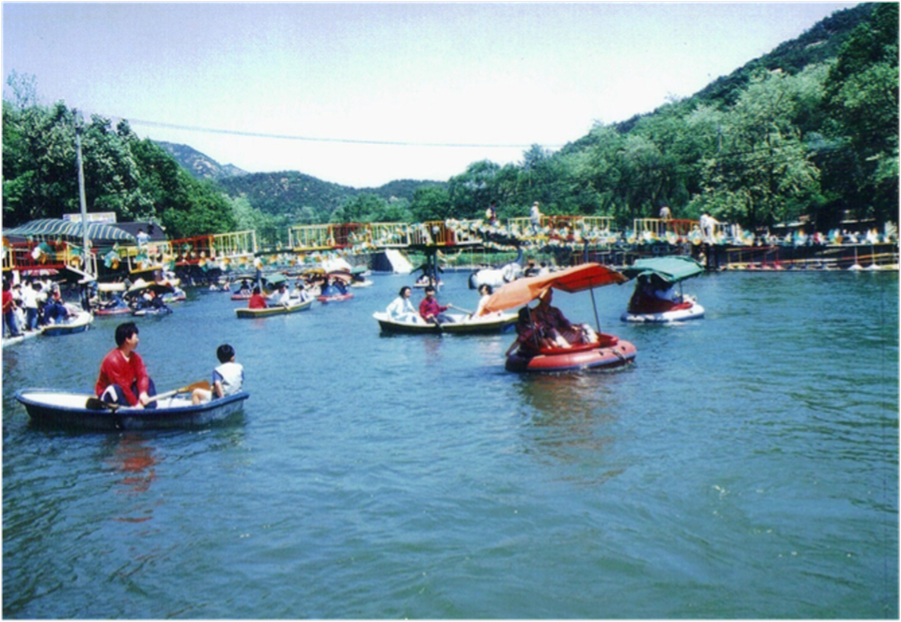 사진속 장소는 현재의 안양 파빌리온 앞 계곡으로 사진 가운데 뒤로 보이는 흰색 건물이 안양관광호텔( 현 블루몬테)이다. 사진에 보이는 것처럼 호수같이 물 많고 아름답던 곳은 1977년 안양대홍수 당시 산위에서 집채만한 바위들이 쏟아지는 등 처참하게 파괴되고 말았다.