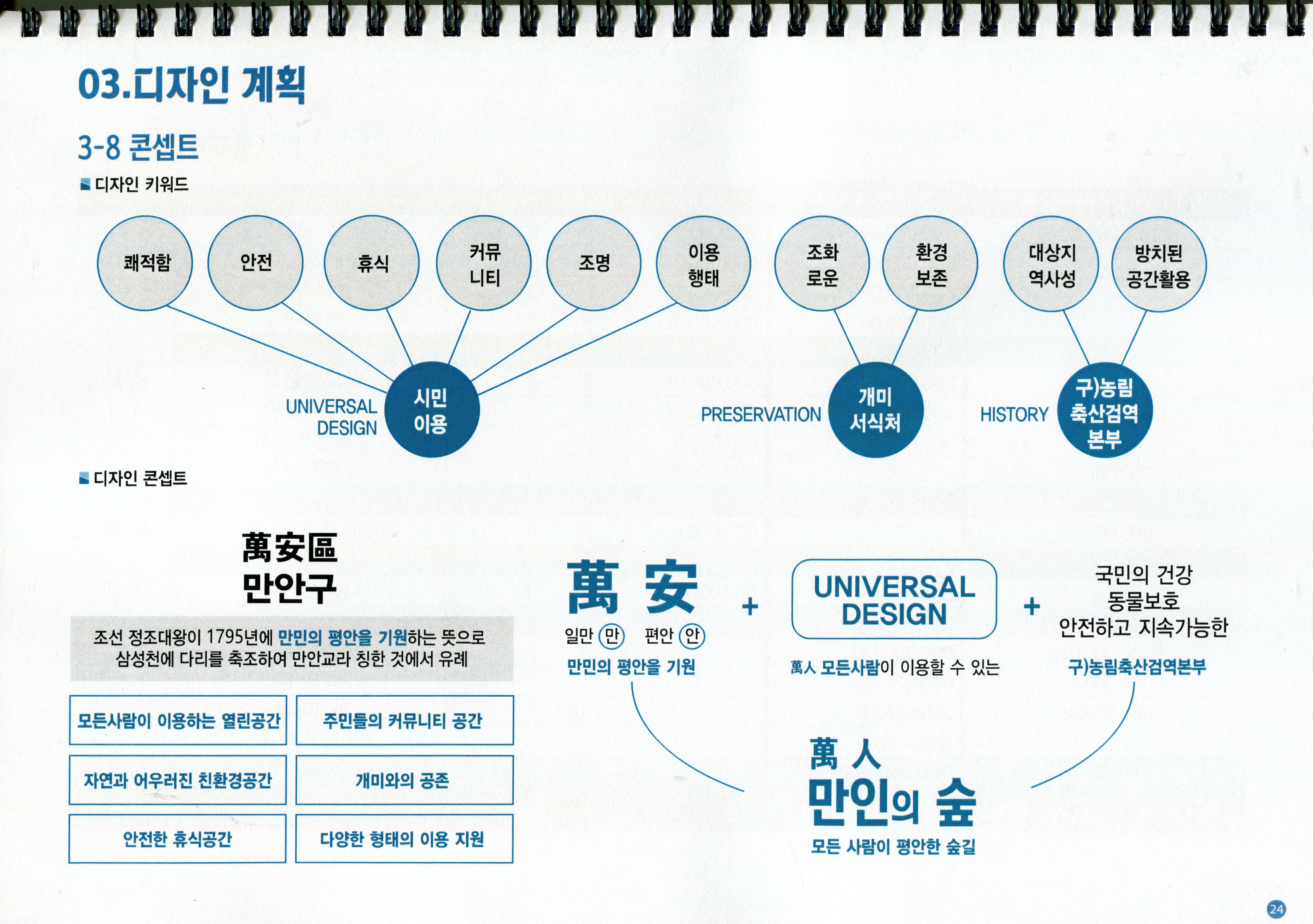 이번 유니버셜디자인사업은 본관 건물앞 정원을 대상지로 하여 2025년 경기도 공모사업에 선정되어 도비 30%(1억5천만원)를 지원받아 총 5억원을 투입하는 사업으로, 자연과 인간이 함께 공존하고 공생할 수 있는 환경으로 조성한다는 계획이다.