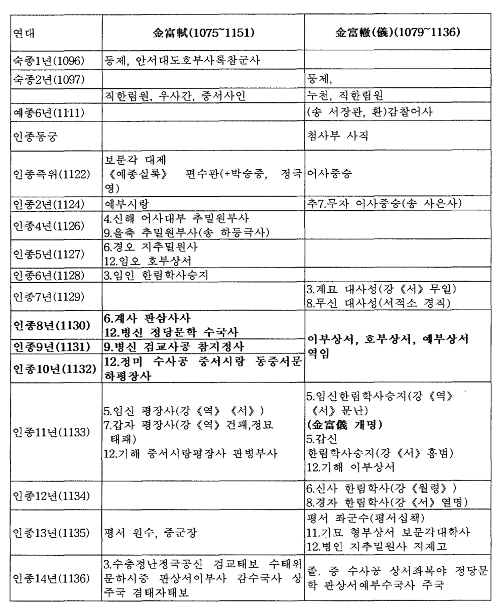 이 표를 보면 일명탑비가 건립된 인종 년을 전후한 시기에 부식은 판삼사사/ 정당 문학 수국사r 검교사공 참지정사f 수사공 중서시랑 동중서문하평장사를 역임하고 있고/ 부철은 이부상서/ 호부상서/ 예부상서를 역임하고 있으므로/ 결국 인종 년 당시 상서로서 일명탑비를 찬솔한 사람은 김부철이라고 봐야 할 것이다. 또 맏형 김부필을 제외\하고 김부일이 1125년에 합천 <반야사 원경왕사비>/ 검부식도 1125년에 개성 〈영통사대각국사비>를 쓰고 있는데/ 이들과 더불어 당시 문장으로 이름을 떨치던 3 형제가 각각 하나씩의 고승비문을 쓴 것으로도 보고 싶다.43)