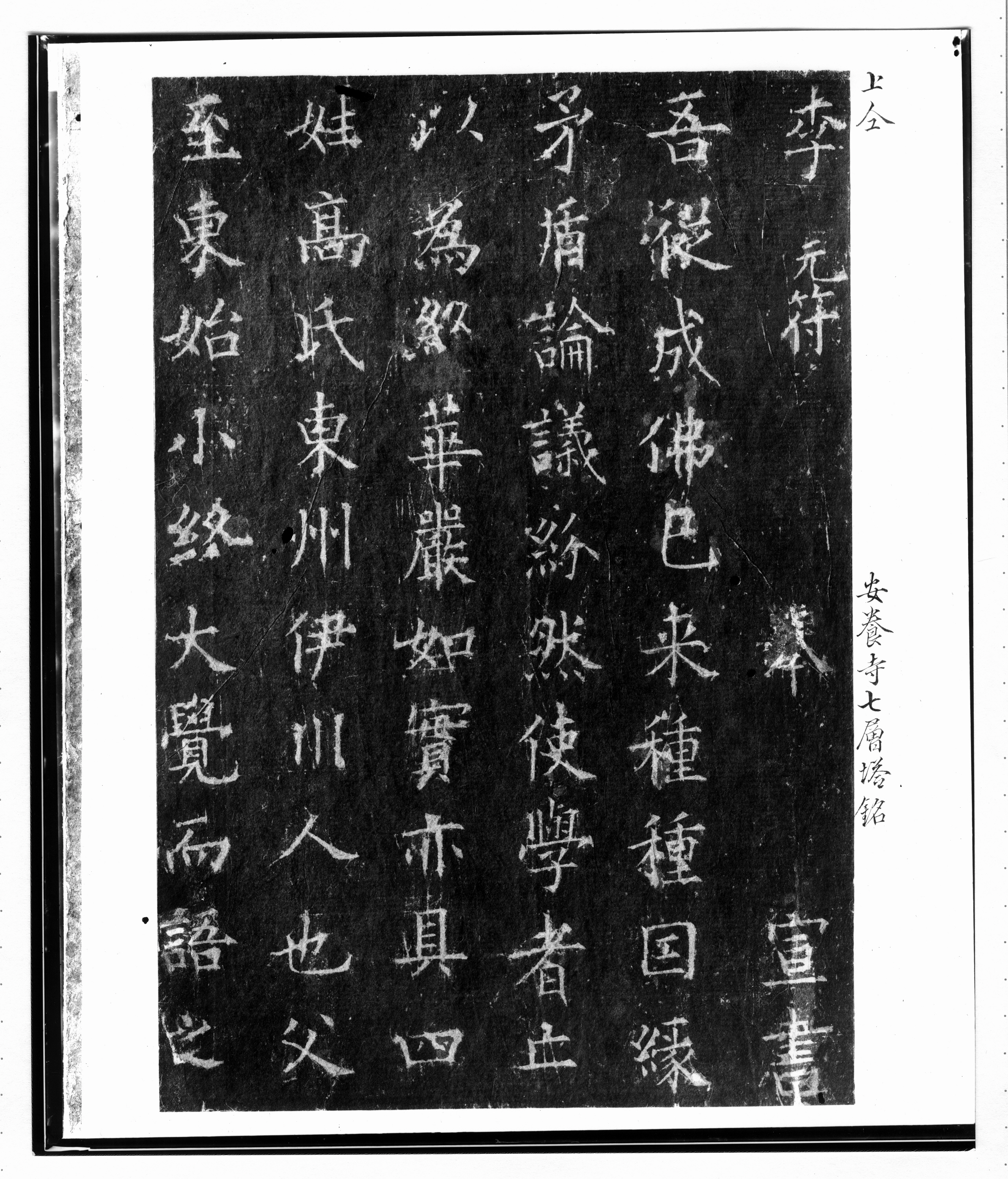 1931년 촬영. 탁본 안양사 칠층탑명.