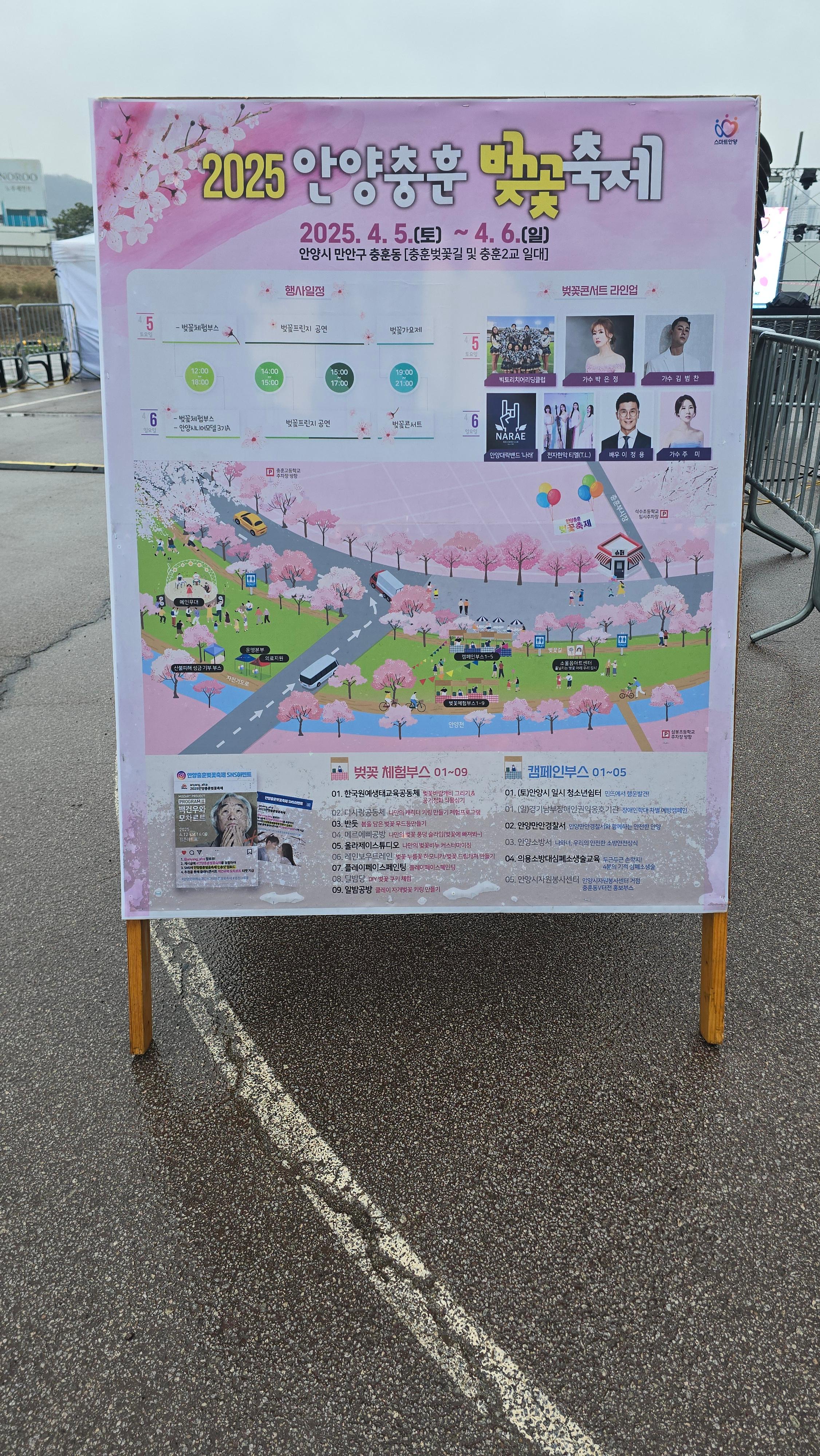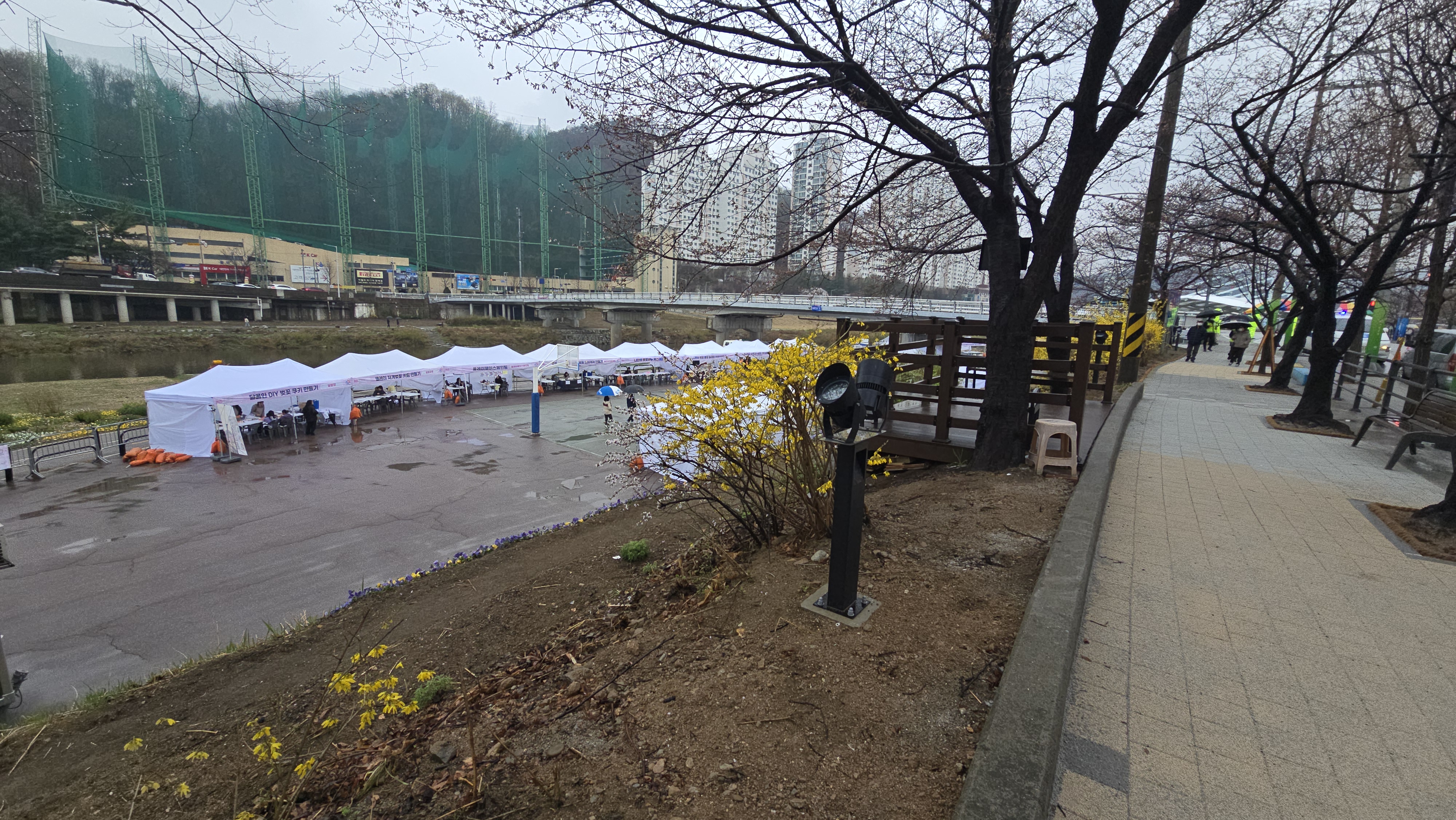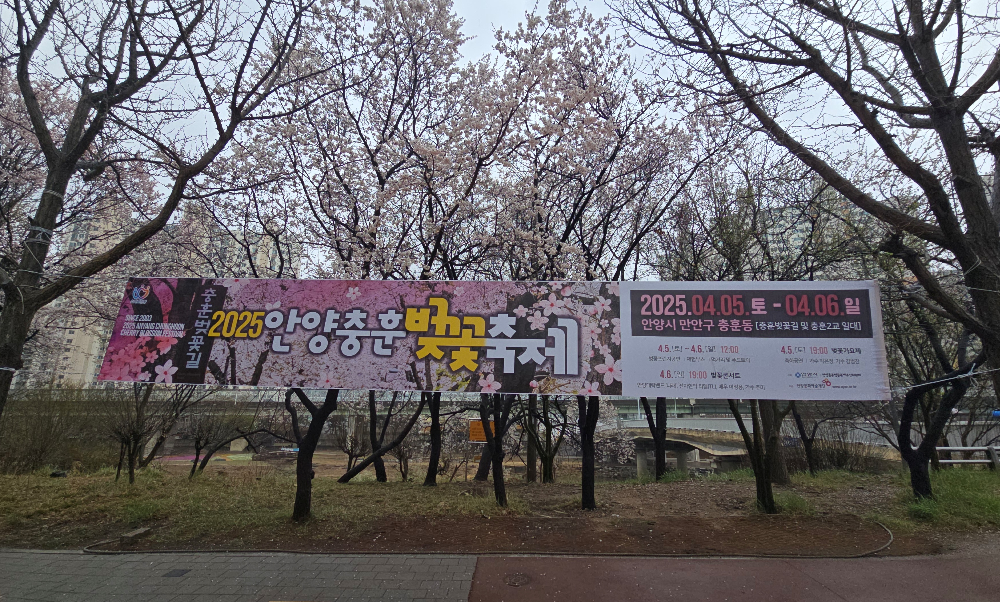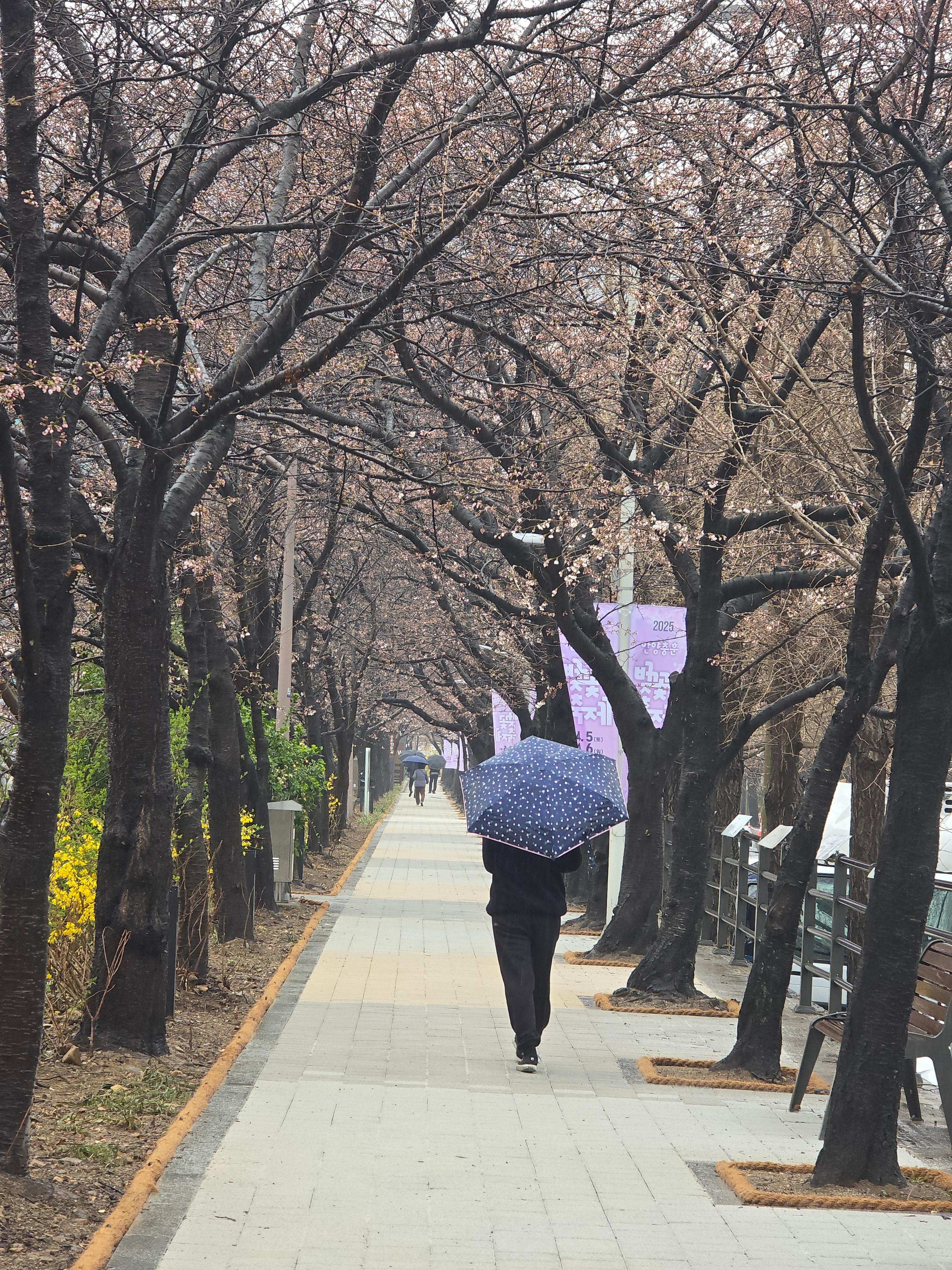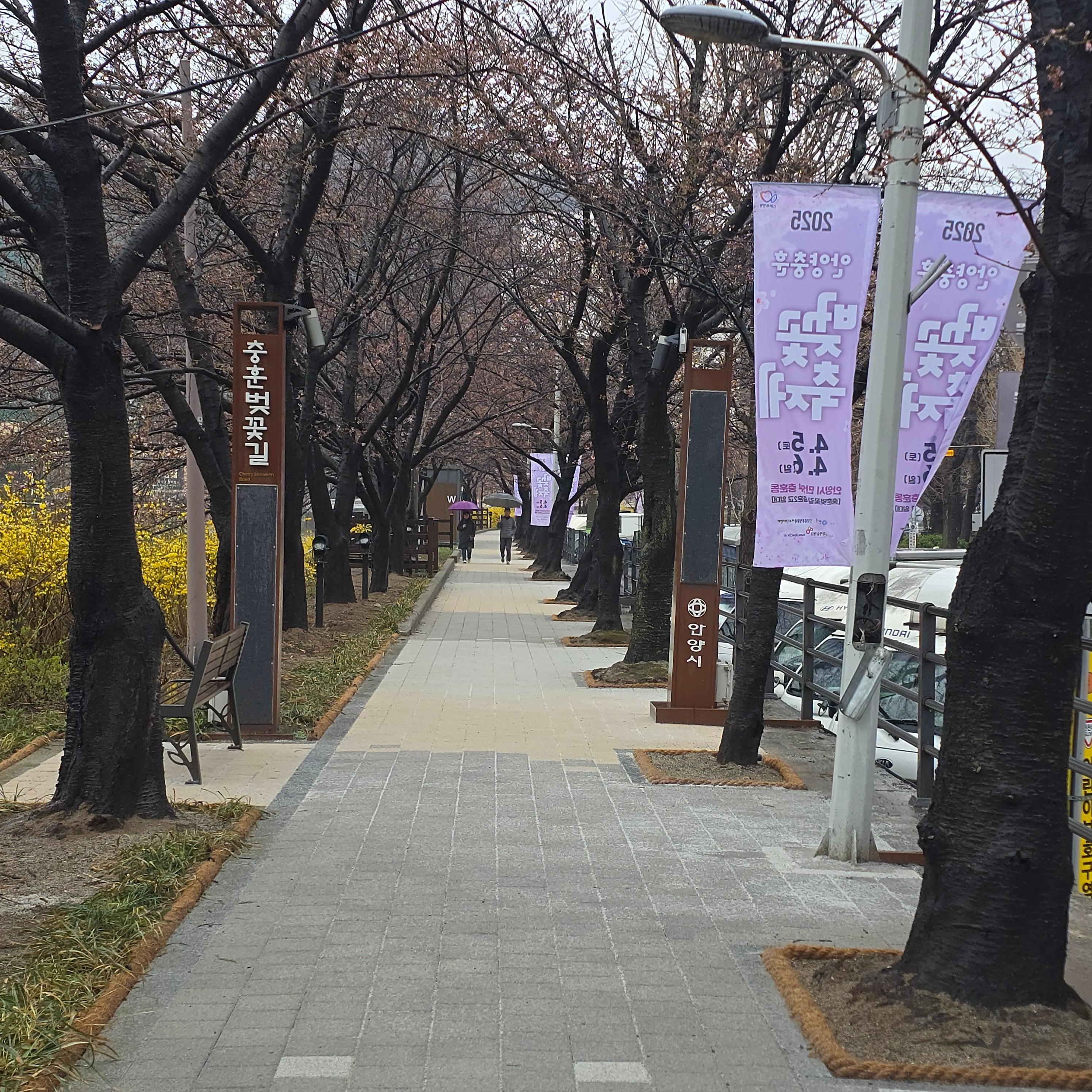 2025.04.05./ #봄봄봄 #안양 #충훈벚꽃길 #석수동/ 안양시 만안구 충훈동 충훈2교 일대에서2025 충훈벚꽃축제가 5일 시작됐으나 벚꽃 개화 예상이 어긋나 꽃은 피지않고 5일 오전부터 하루종일 내리는 우천으로 벚꽃가요제 행사는 취소되는 등 차질을 빚었다. 꽃구경을 하려면 사람 몰리는 축제 행사를 피해 축제 기간 이후인 월요일(7일)부터 평일 주간 또는 꽃 조명이 아름답게 켜지는 야간에 보면 좋을듯 싶다.