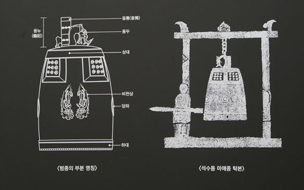 이 종의 형상은 역사적으로 한국에 전해 내려오는 전통양식의 종모양으로 이를 바위 절벽에 그대로 새겨놓았는데 '조선종'의 양식을 온전하게 갖춘 동종의 모습과 이 종을 치고 있는 불승의 모습이 새겨져 있다.