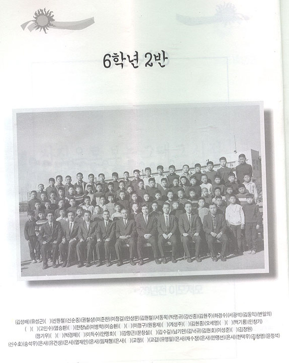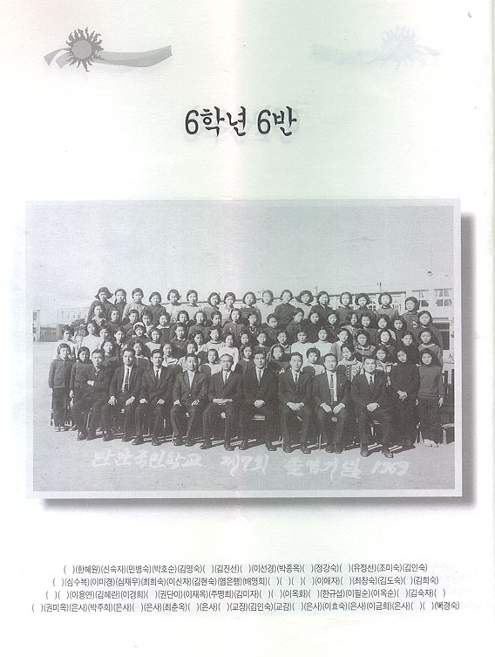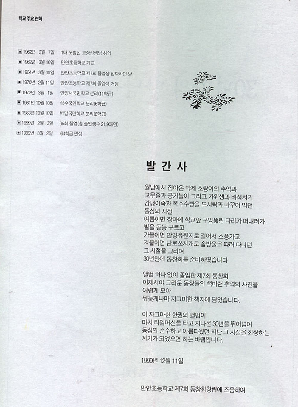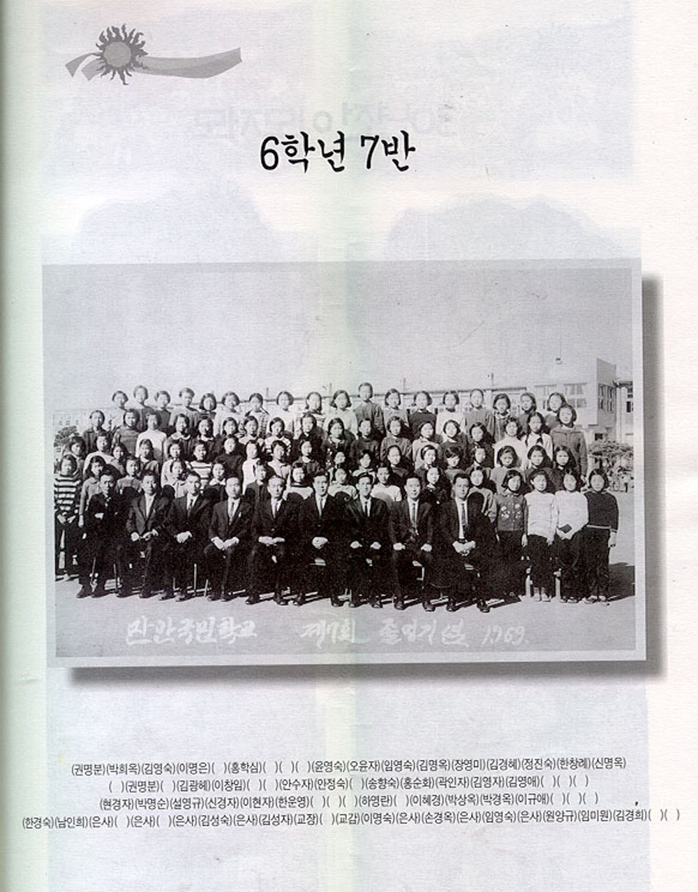 안양만안초등학교 7회동회는 졸업앨범이 없었다. 다만 졸업식장에서 반별 사진 한장만 받았을뿐이다. 이에 7회 동창들은 1999년 동창회를 만들면서 각 반별 사진을 모아 30년이 지난후 자체 즐업 앨범을 만들었다. 이 자료는 그때 만든 사진첩이다.