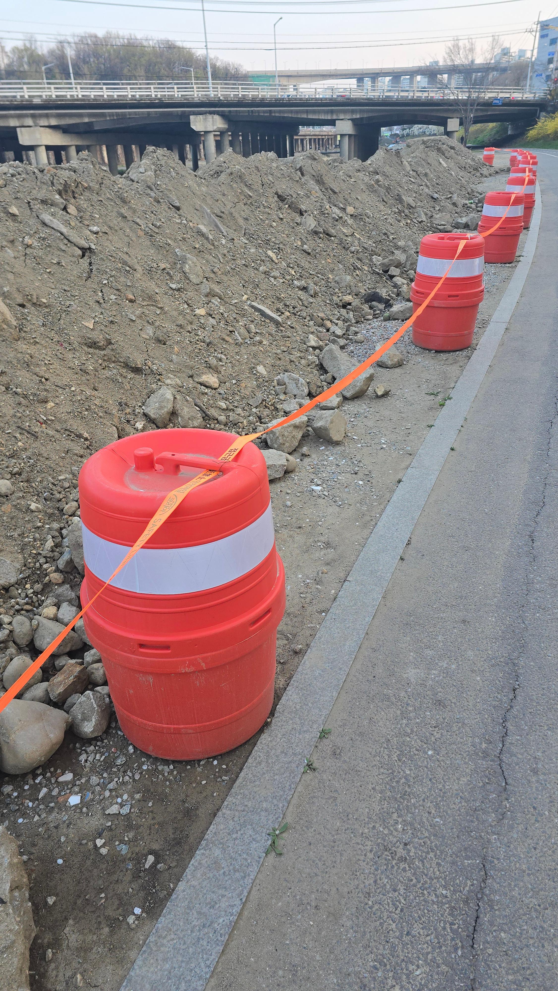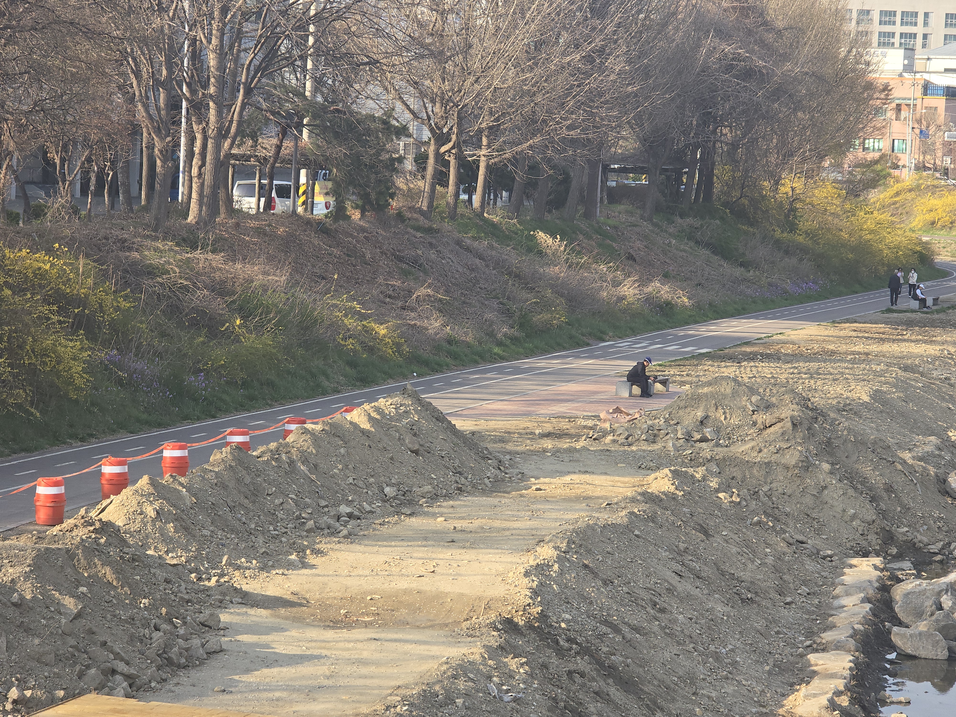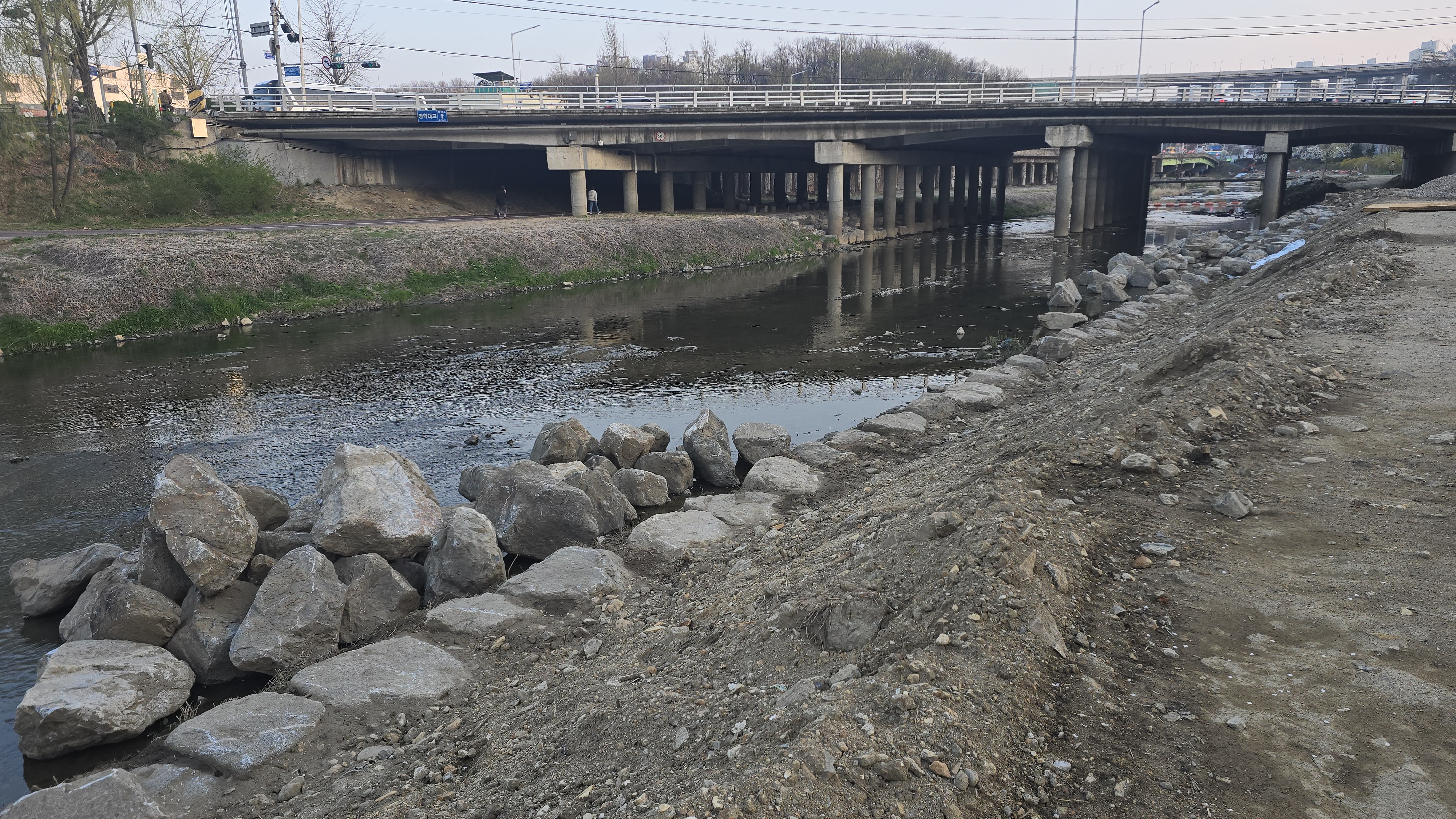 2025.04.08/ #도시기록 #안양 #공사중/ 안양천은 지금 공사중. 4월 8일 명학대교 다리밑 풍경.