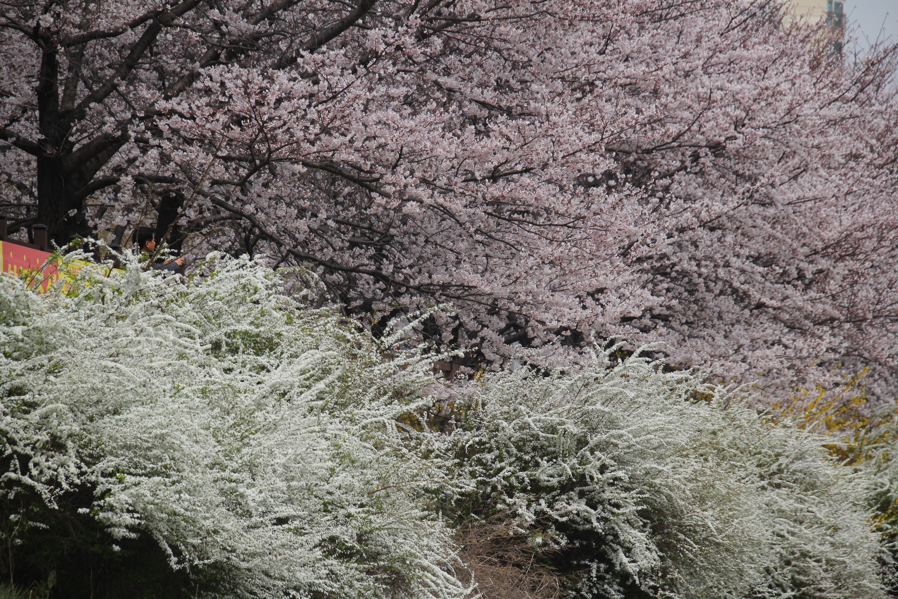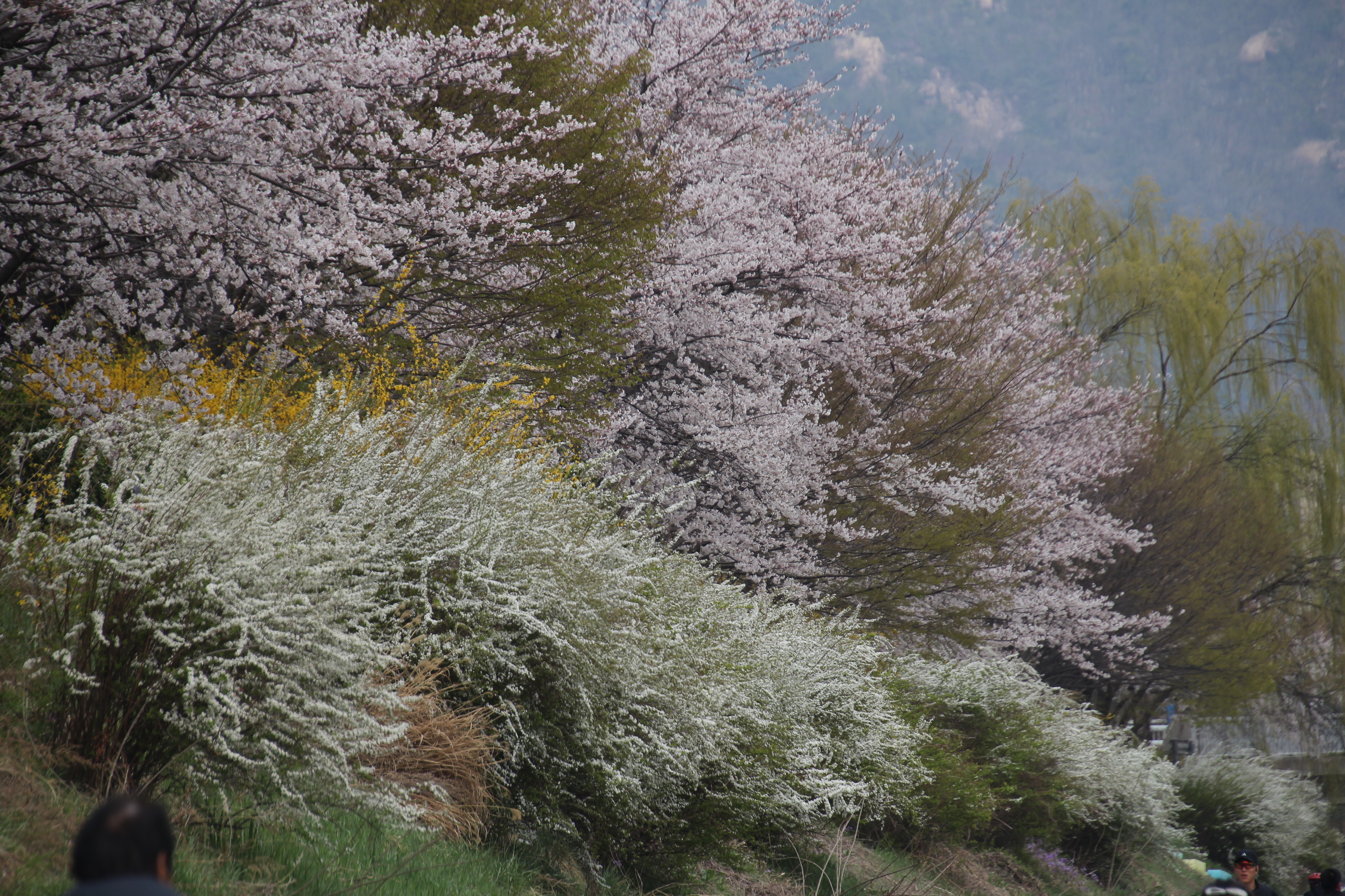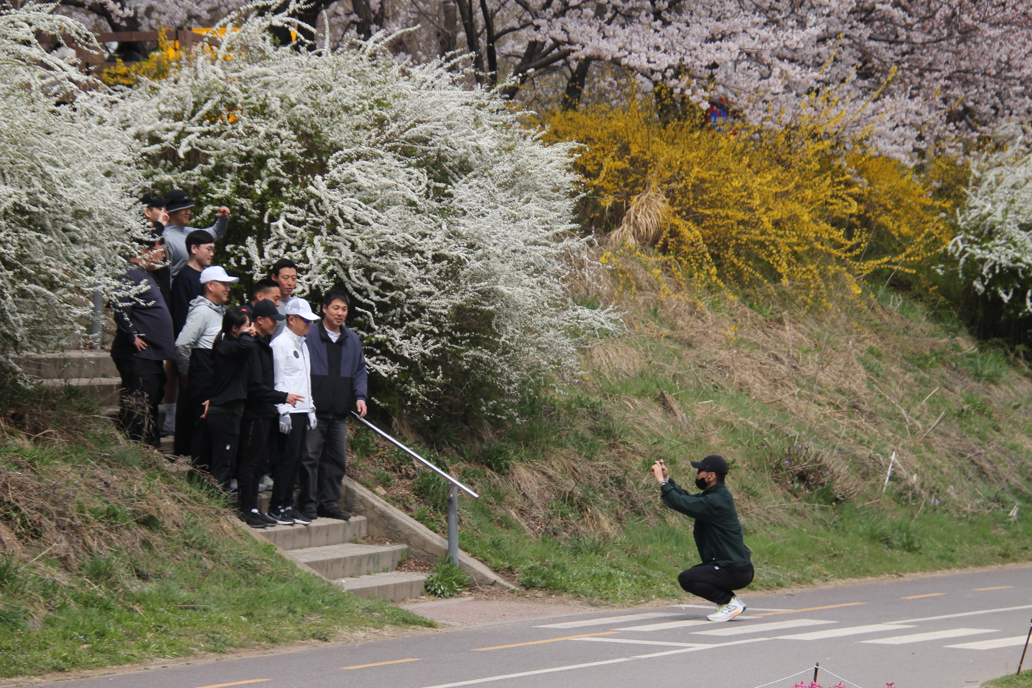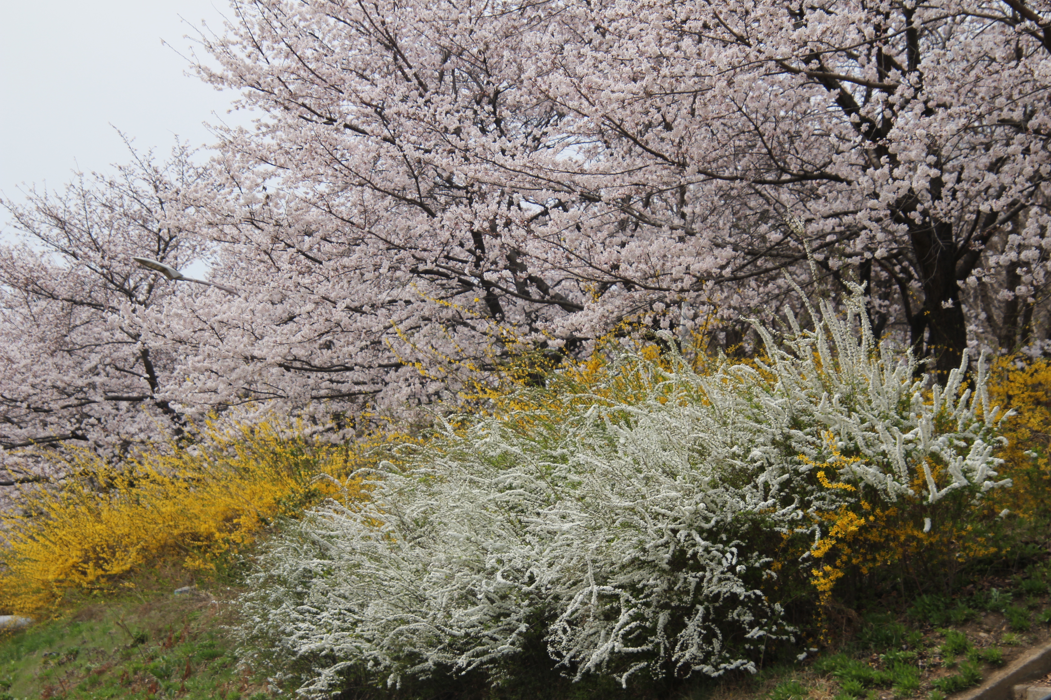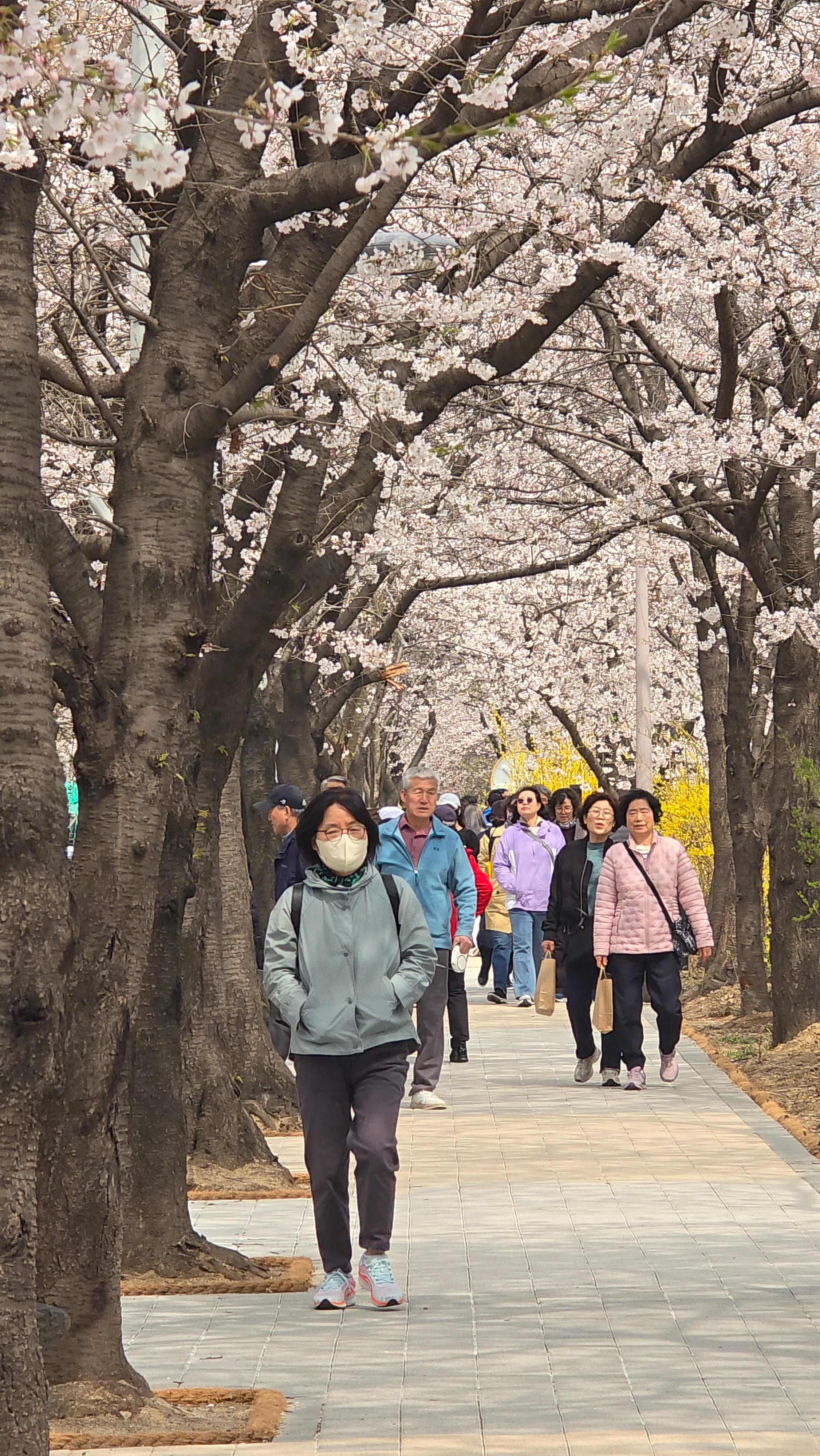 축제가 끝나고 이틀이 지나니 꽃이 만개했다. 충훈벚꽃길 특징은 하얀 벚꽃과 조팝나무꽃 그리고 노란 개나리꽃이 어우러져 핀다는 것이다. 특히 금년에는 안양천 시민정원 조성 사업이 시작되면서 천변에 다양한 꽃들로 화려한 정원을 만들엇다.