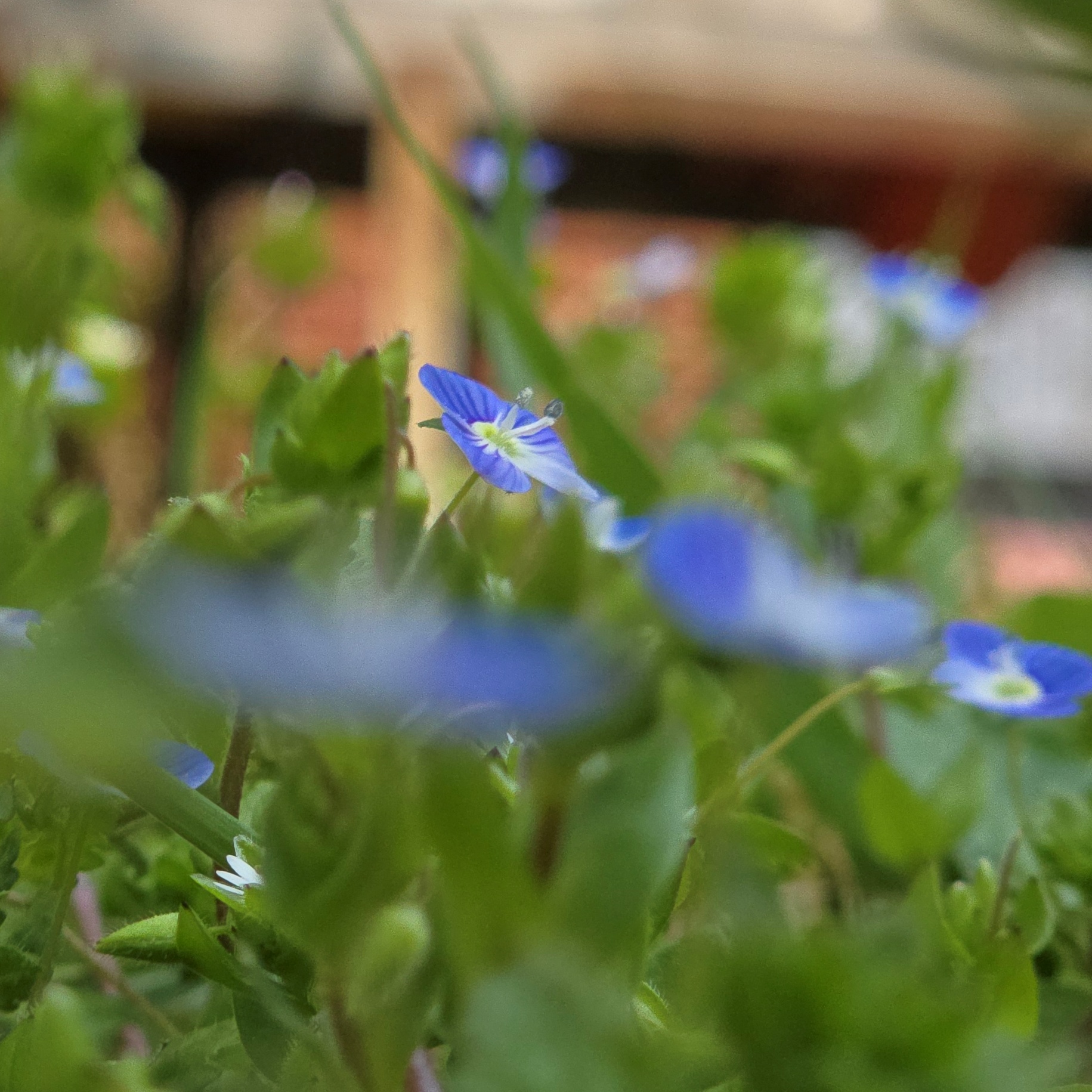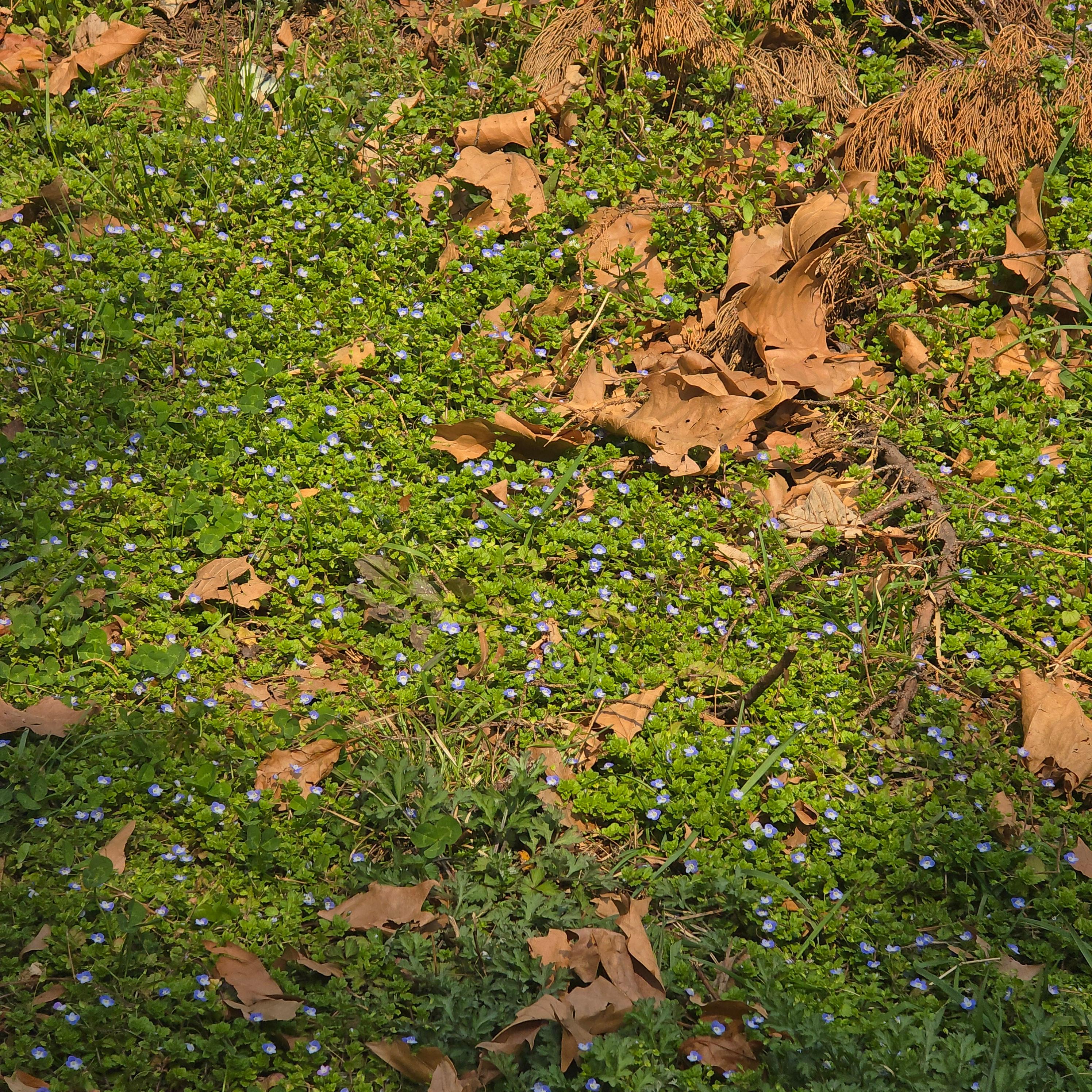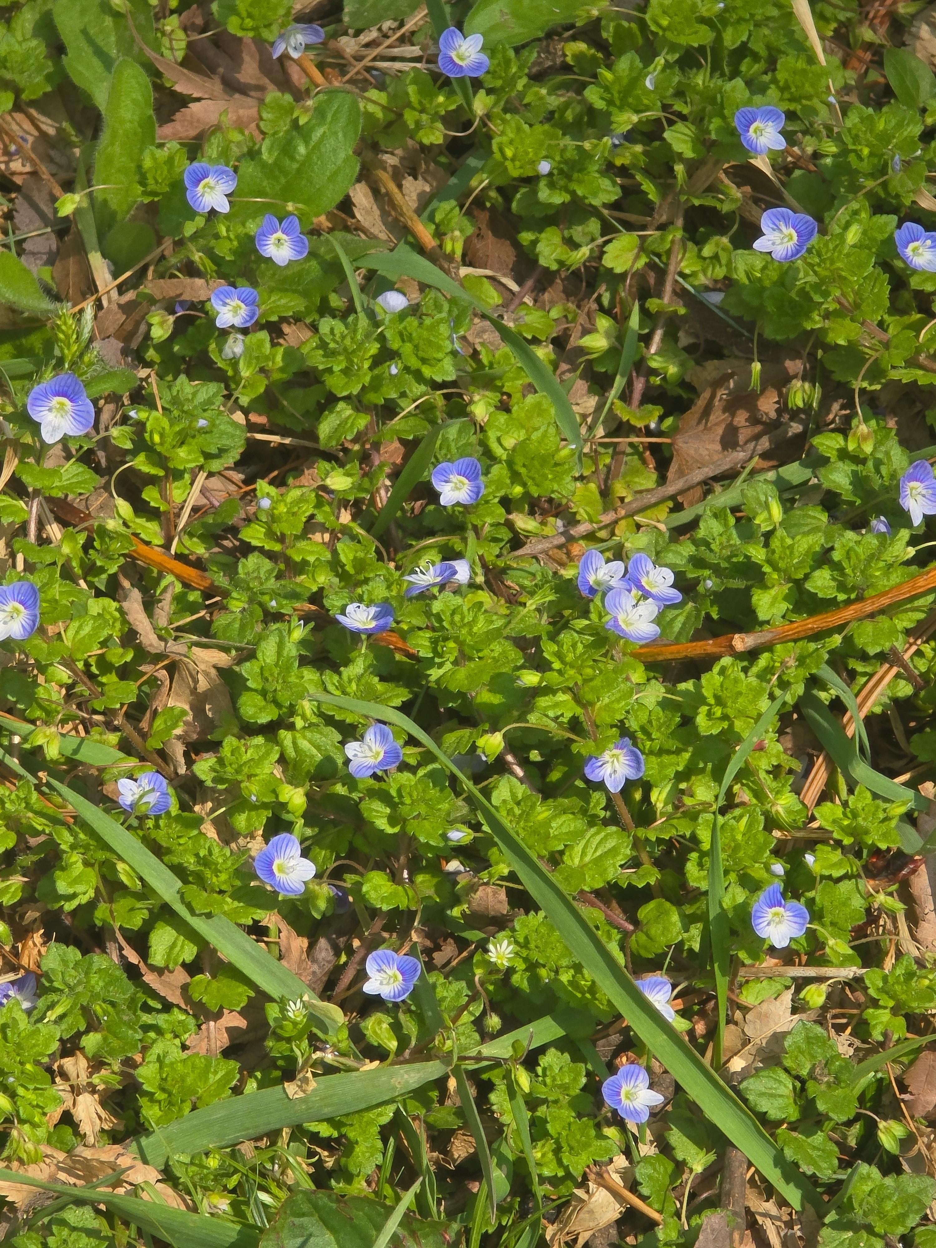 2025.04.10/ #도시기록 #들꽃 #봄까치꽃/ 안양6동 엣검역원에서. 바닥에 잉중맞은 꽃천지. 봄소식을 전하는 까치 같다고 해서 ‘봄까치꽃’이라고도 부르지요.. 우리 식물들은 대부분 여러 개의 이름을 갖고 있는데 이꽃의 부르기 민망한 것중 하나가 바로 개불알풀입니다. 열매의 모양이 희한하게도 개의 불알을 닮아서 붙여진 이름인데, 이게 조금 더 큰 것이 큰개불알풀이랍니다.
