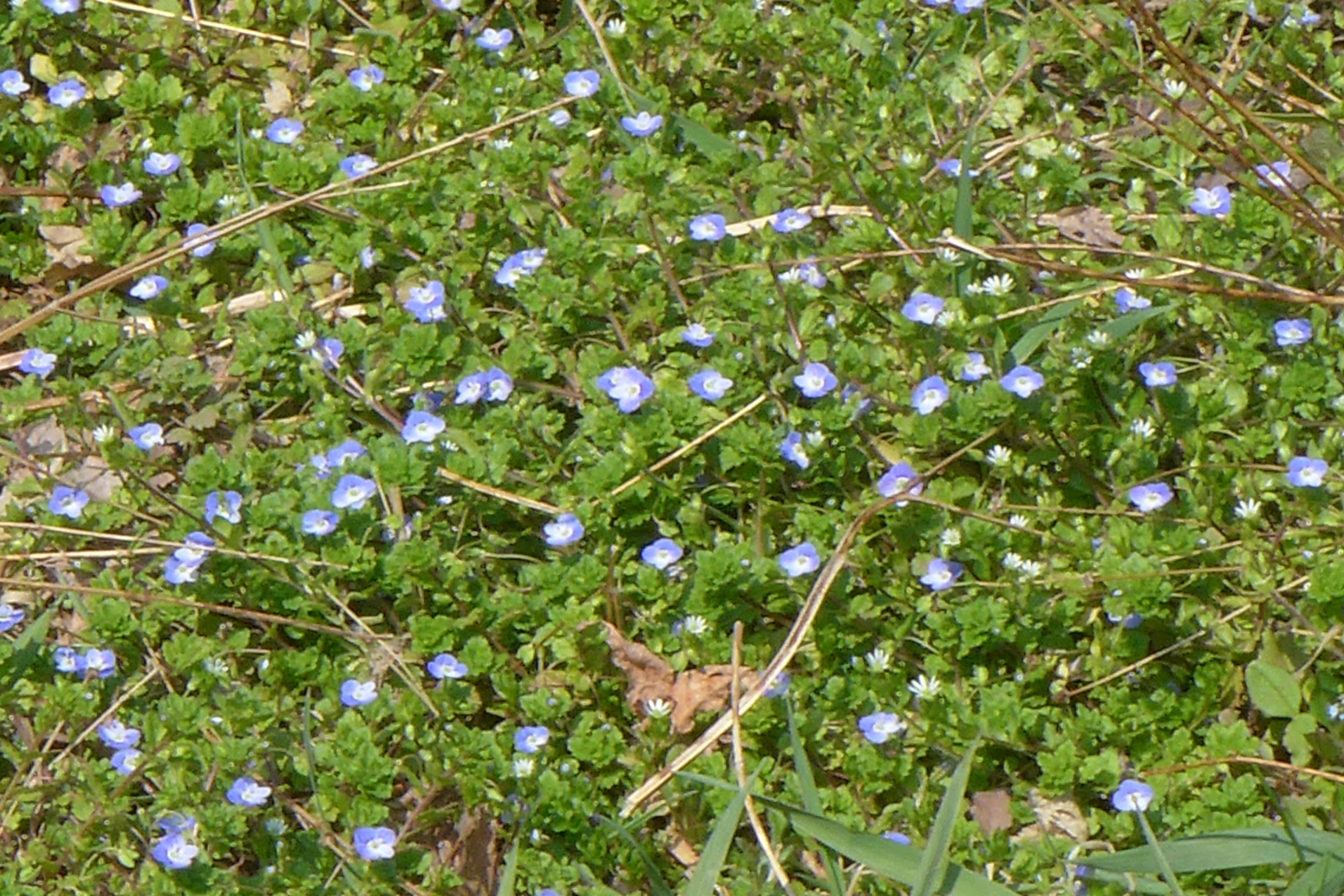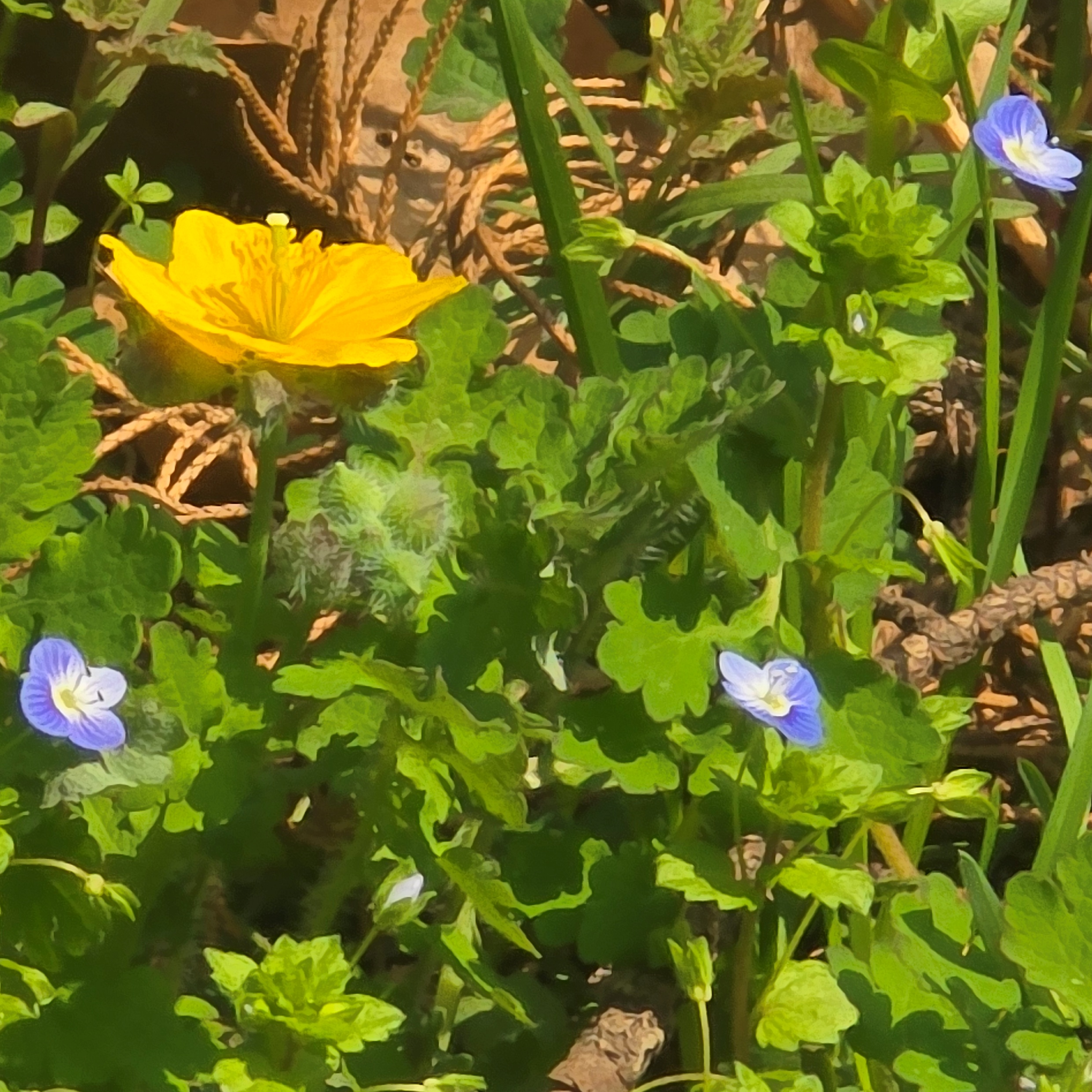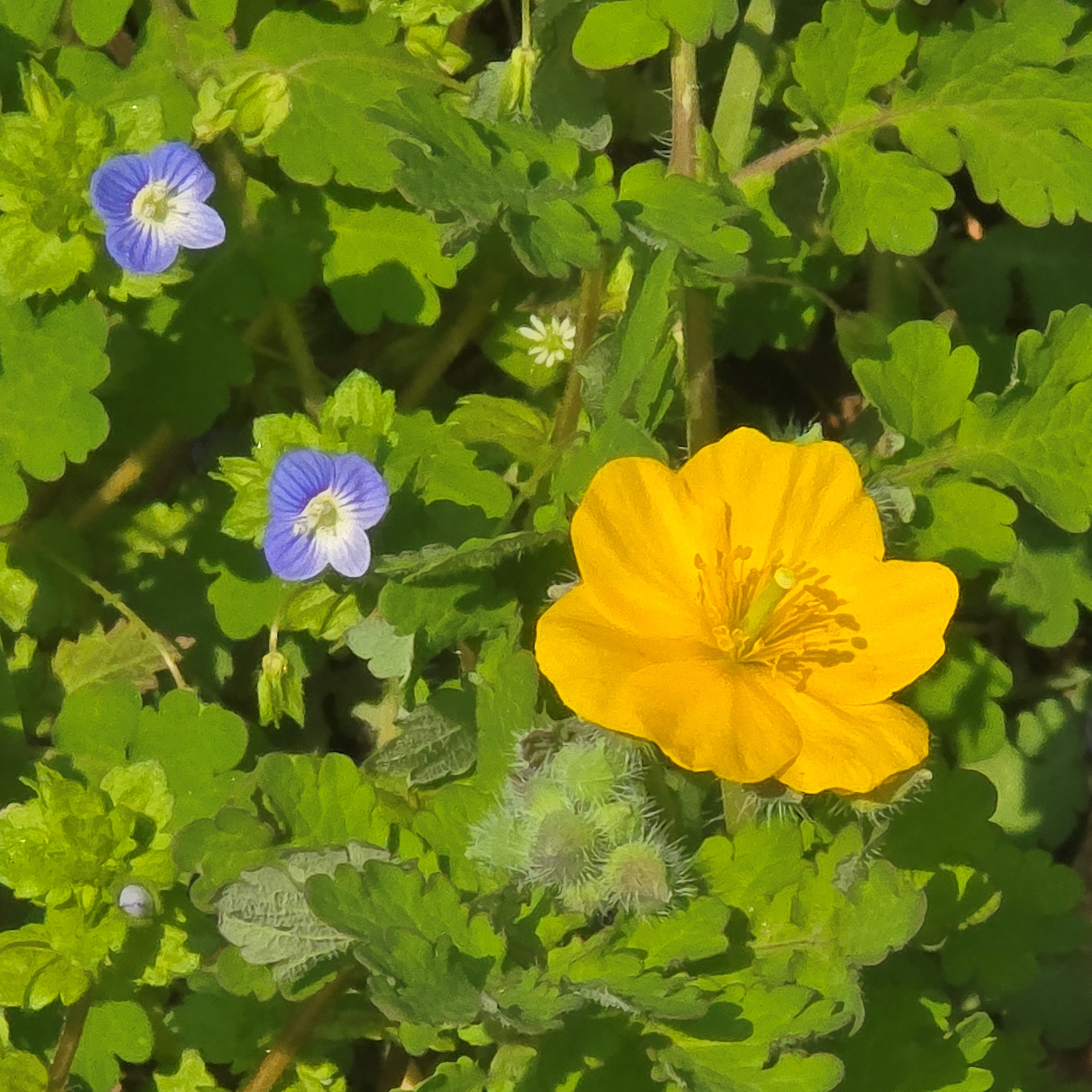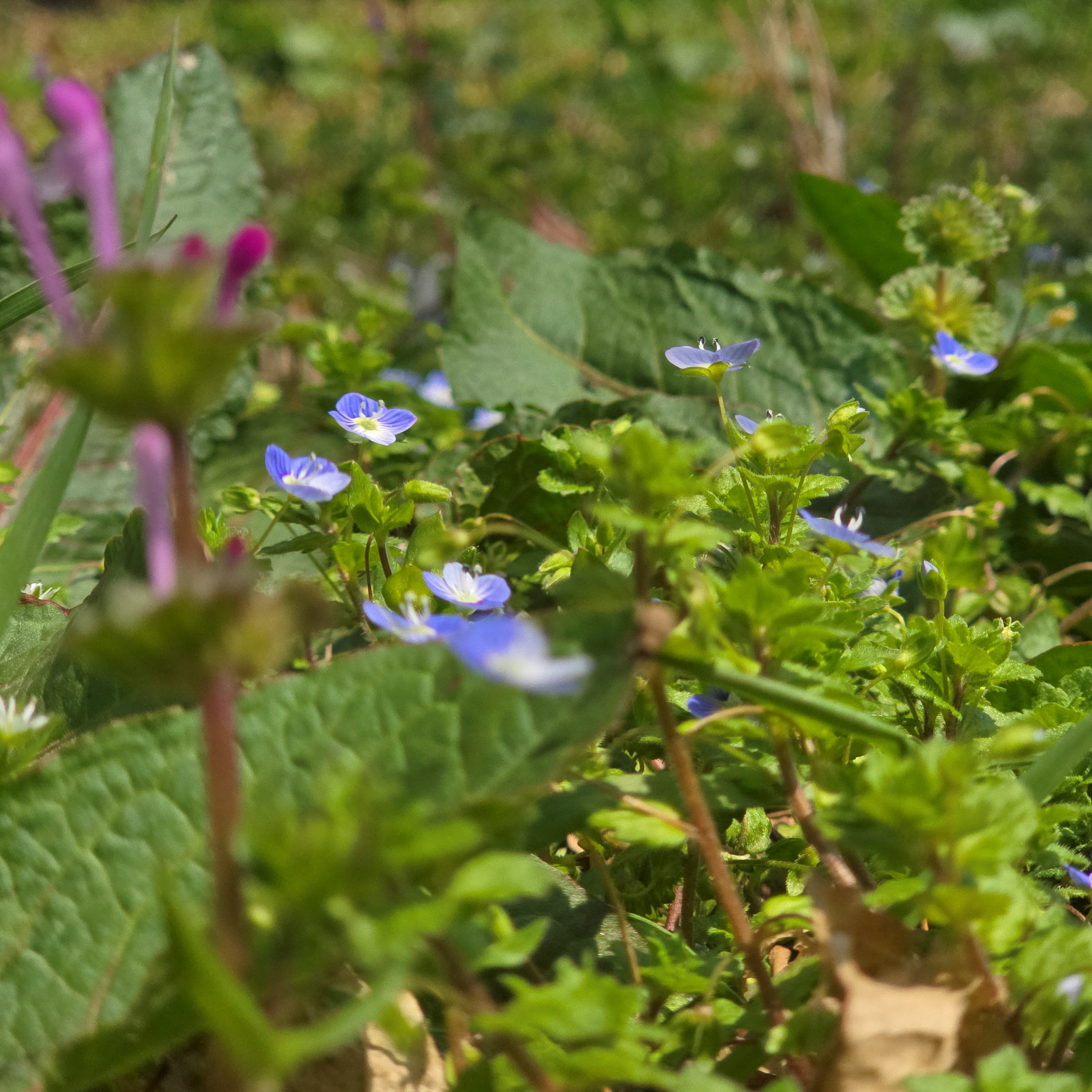 2025.04.10/ #도시기록 #들꽃 #봄까치꽃/ 안양6동 엣검역원에서. 바닥에 잉중맞은 꽃천지. 봄소식을 전하는 까치 같다고 해서 ‘봄까치꽃’이라고도 부르지요.. 우리 식물들은 대부분 여러 개의 이름을 갖고 있는데 이꽃의 부르기 민망한 것중 하나가 바로 개불알풀입니다. 열매의 모양이 희한하게도 개의 불알을 닮아서 붙여진 이름인데, 이게 조금 더 큰 것이 큰개불알풀이랍니다.