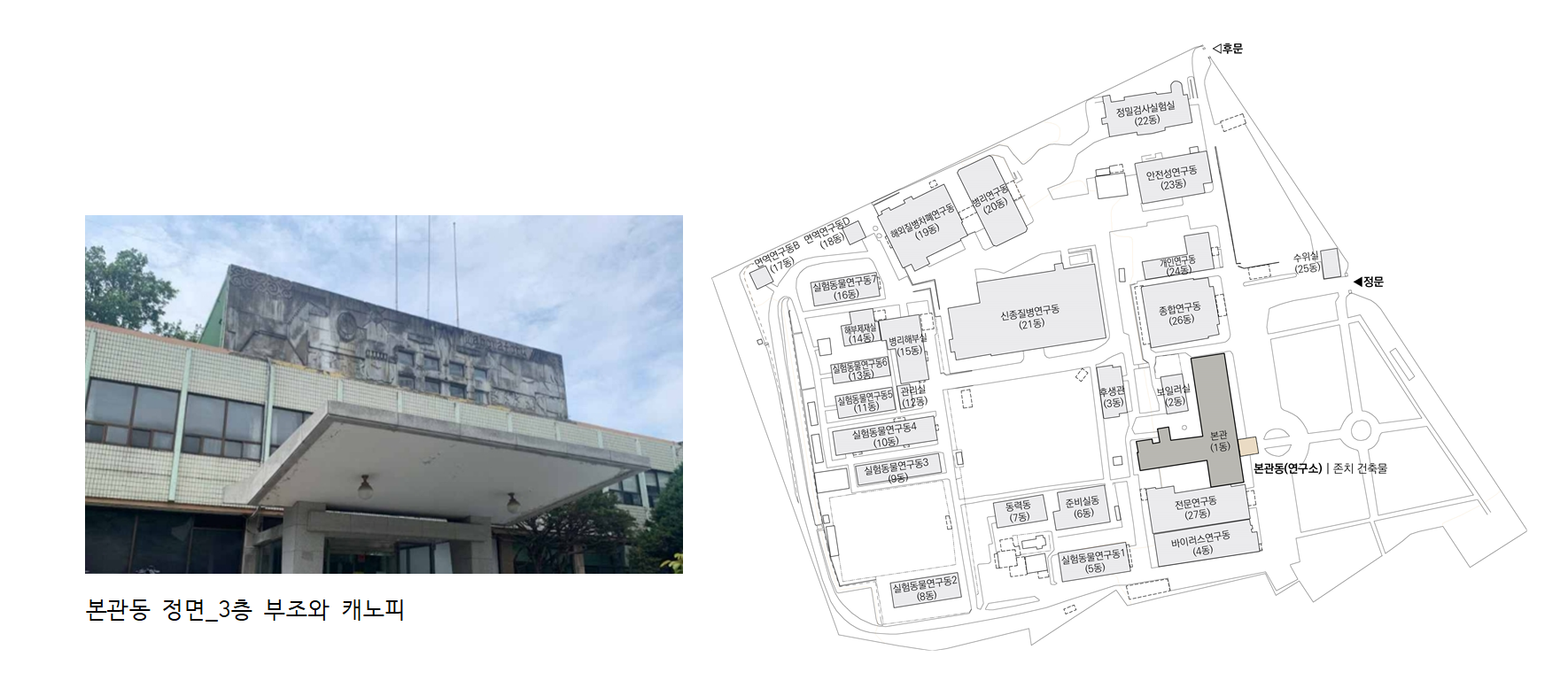본관동은 지상 3층의 철근콘크리트조 ‘T’자형 평면의 건축물로 항생항습실, 무균작업실과 같은 시설을 갖춘 연구소 기능의 건축물로 지어졌다. 일제강점기와 한국전쟁이 지나고 우리 스스로 모더니즘 건축을 만들어가던 초창기 작품 중 하나로 평가할 수 있을 것이다. 주출입구 캐노피와 톱니 형태의 수직창에서 나타나는 조형적 처리와 함께 캔틸레버로 돌출된 2층 공간의 밝은 타일 마감과 창문, 돌출된 수직 요소의 반복된 질서는 이 건축물이 우리 초기 모더니즘 건축에서 충분히 기억될 만한 작품임을 보여주고 있다.