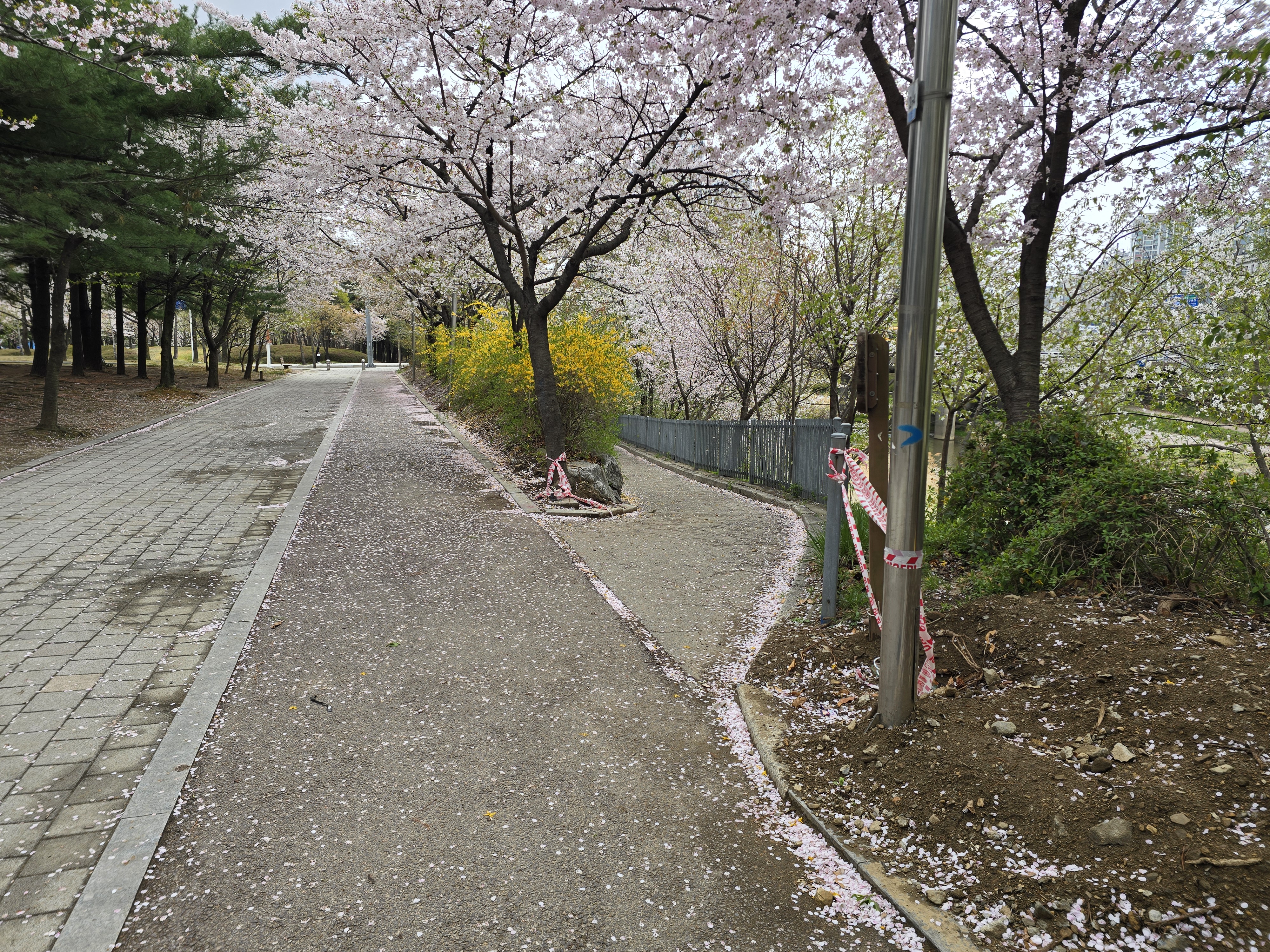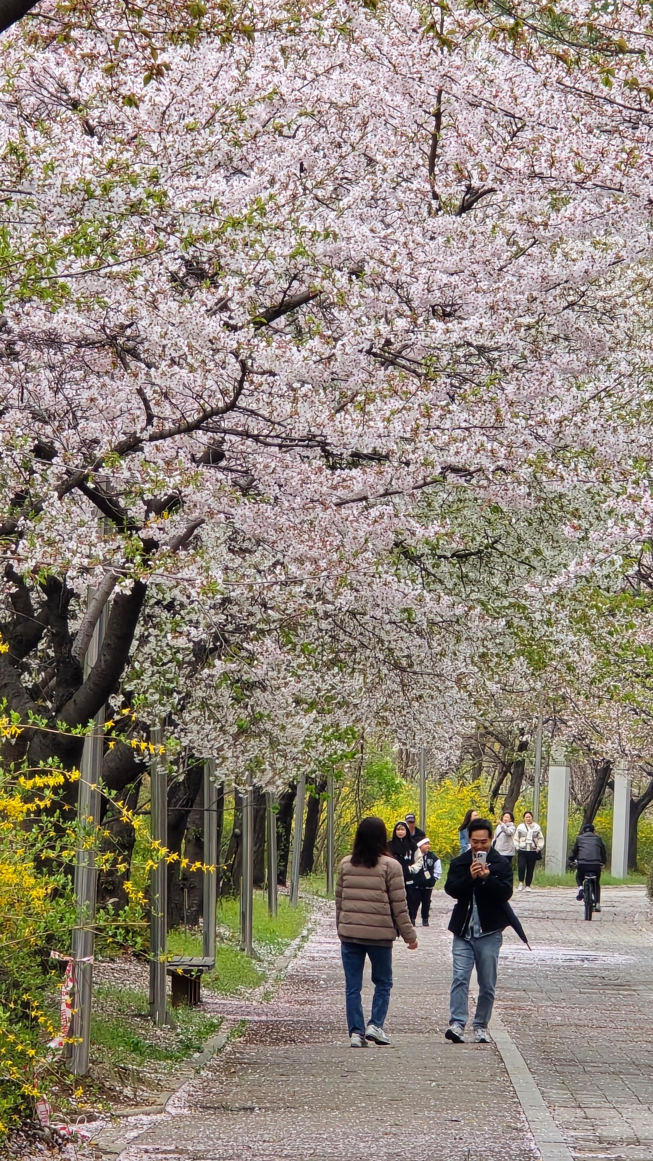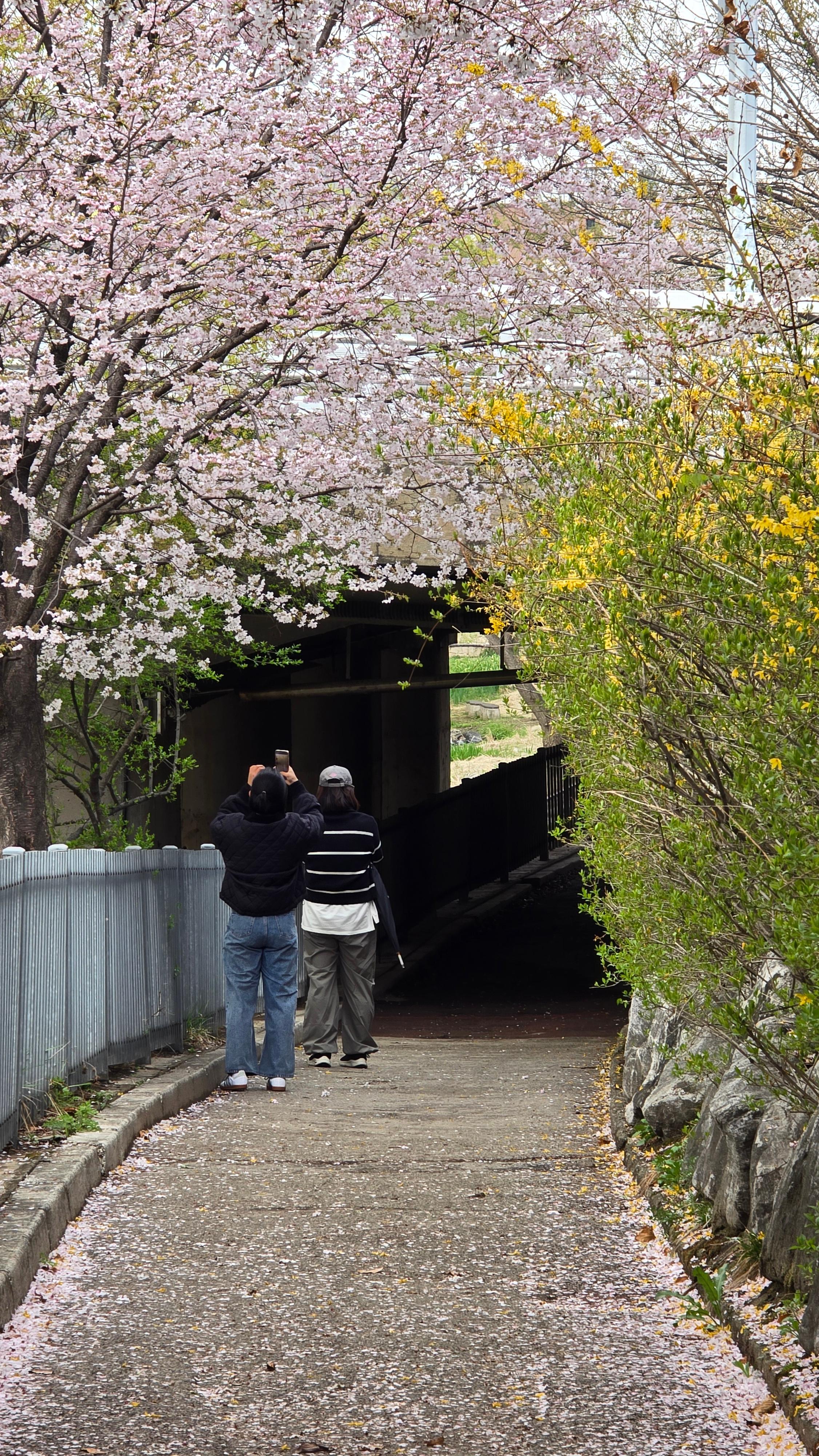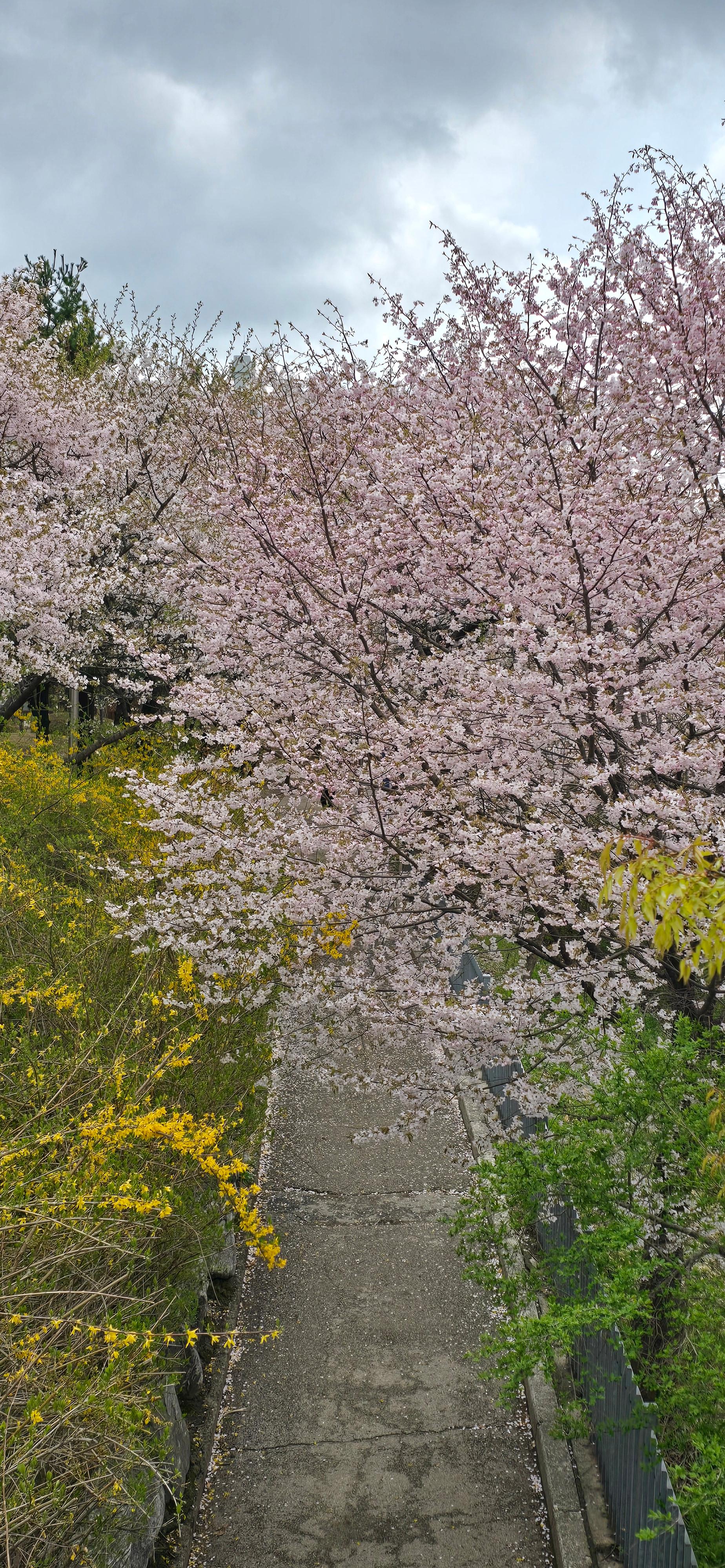 2025.04.13/ #벚꽃엔딩 #안양 #학운공원/ 안양 벚꽃 명소중 한곳인 학의천 남쪽 학운공원. 비오고 바람 부는날 벚꽃 엔딩을 보다.