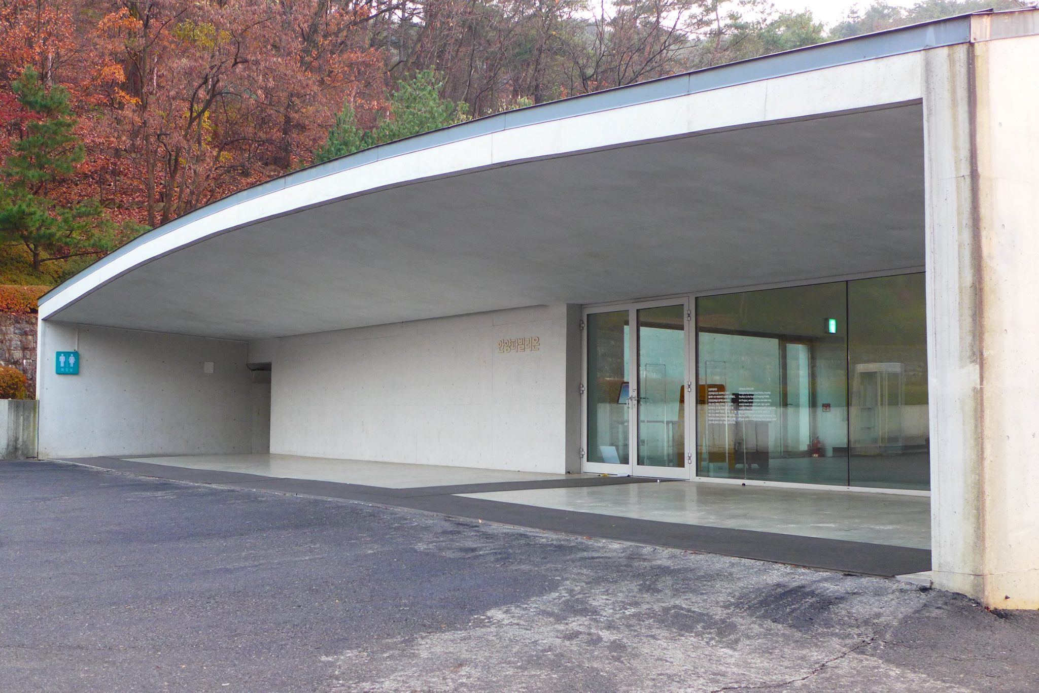'안양파빌리온'은 지상 7.3m, 연면적 894㎡ 규모의 건축물로 어느 각도에서 보든 똑같은 형태로 보이지 않는 특유의 공간구조와 기하학적 형태를 이룬 시적 공간으로 설계됐으며 단색화된 형태와 미묘한 빛의 조화를 공간미학으로 구현해냈다는 평가다.