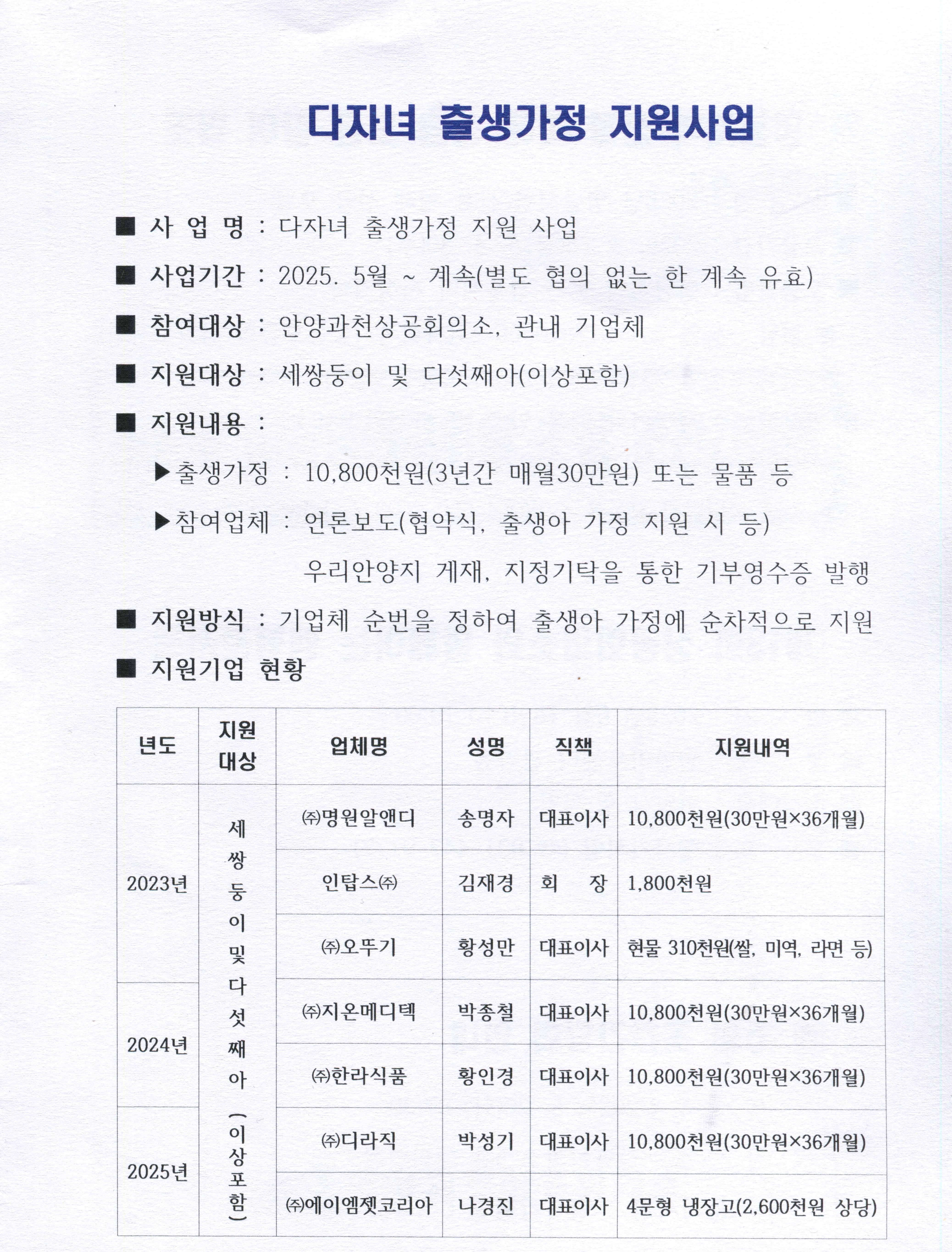 이를 통해 세쌍둥이 및 다섯째아 이상 출생 가정에 1080만 원(3년간 매월 30만 원) 또는 가정이 원하는 물품을 지원한다.