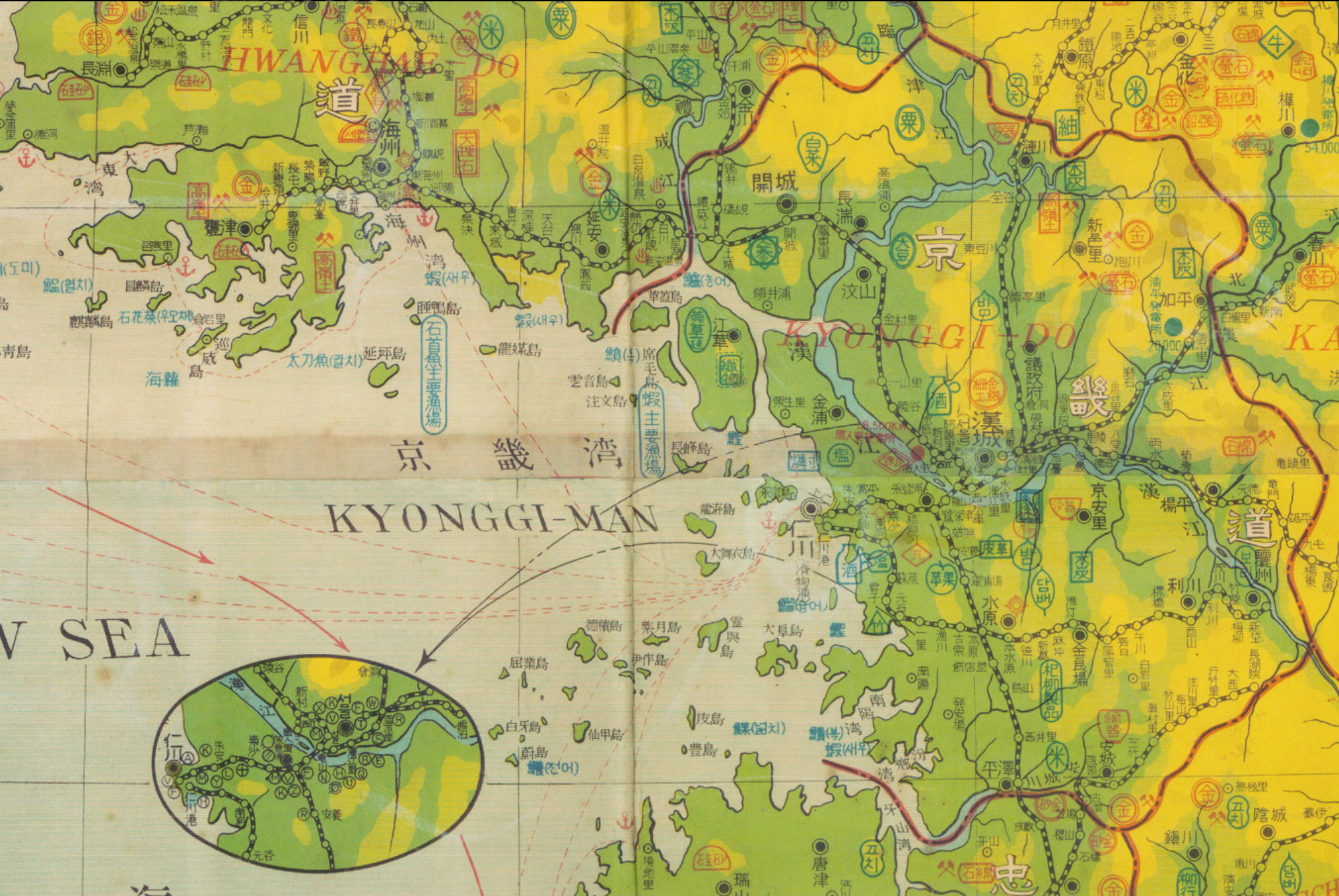 2025.04.17/ #아카이브 #옛지도 #조선산업지도 #since1948/ 해방되기 전 조사한 우리나라 전국의 농산물, 광물, 수산물 등의 생산지를 나타낸 산업용 지도로 지역 특산물도 표기. 일본에서 제작된 지도임에도 한자와 영어로 동해 표기.