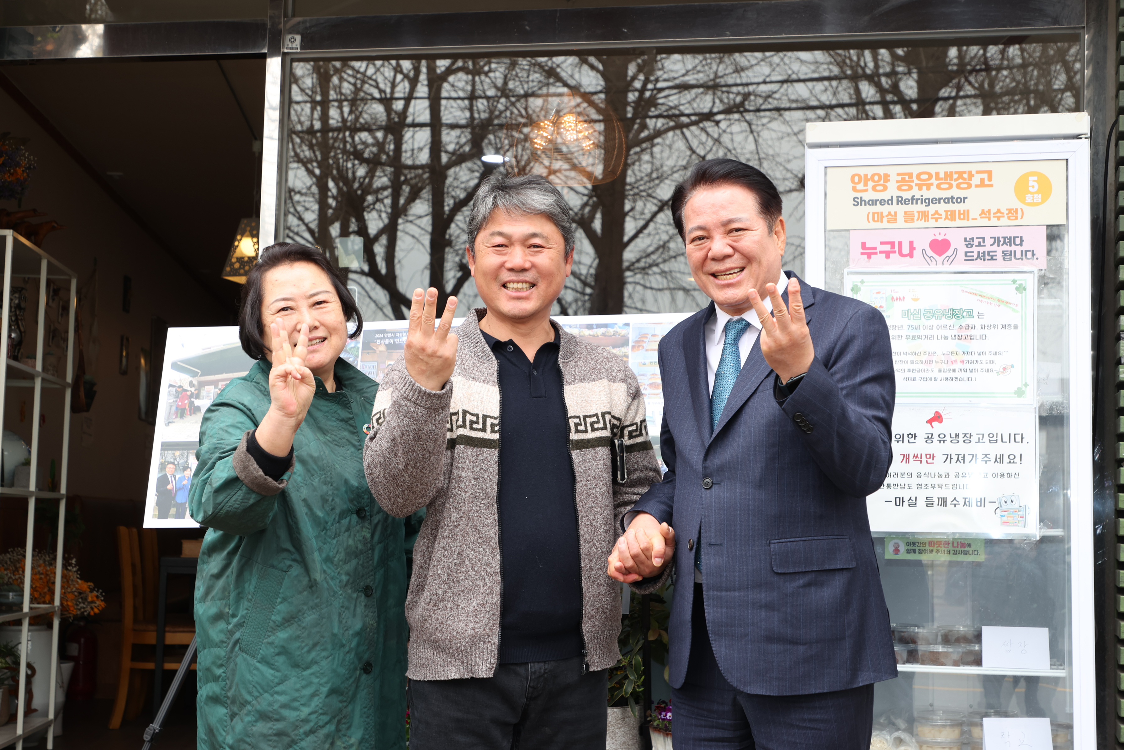 2025.04.09 #행사 #공유냉장고 #안양시지속가가능발전협의회 # 마실/ 최대호 안양시장이 지난 4월 9일 안양시 석수2동에 자리한 공유냉장고 5호점(마실 들깨수제비.만안구 석수로12)을 방문해 안양시지속가능발전협의회에서 운영하는 안양시 공유냉장고 운영 현황에 대해 보고 받고, 운영자들을 격려하고 간담회를 가졌다.
