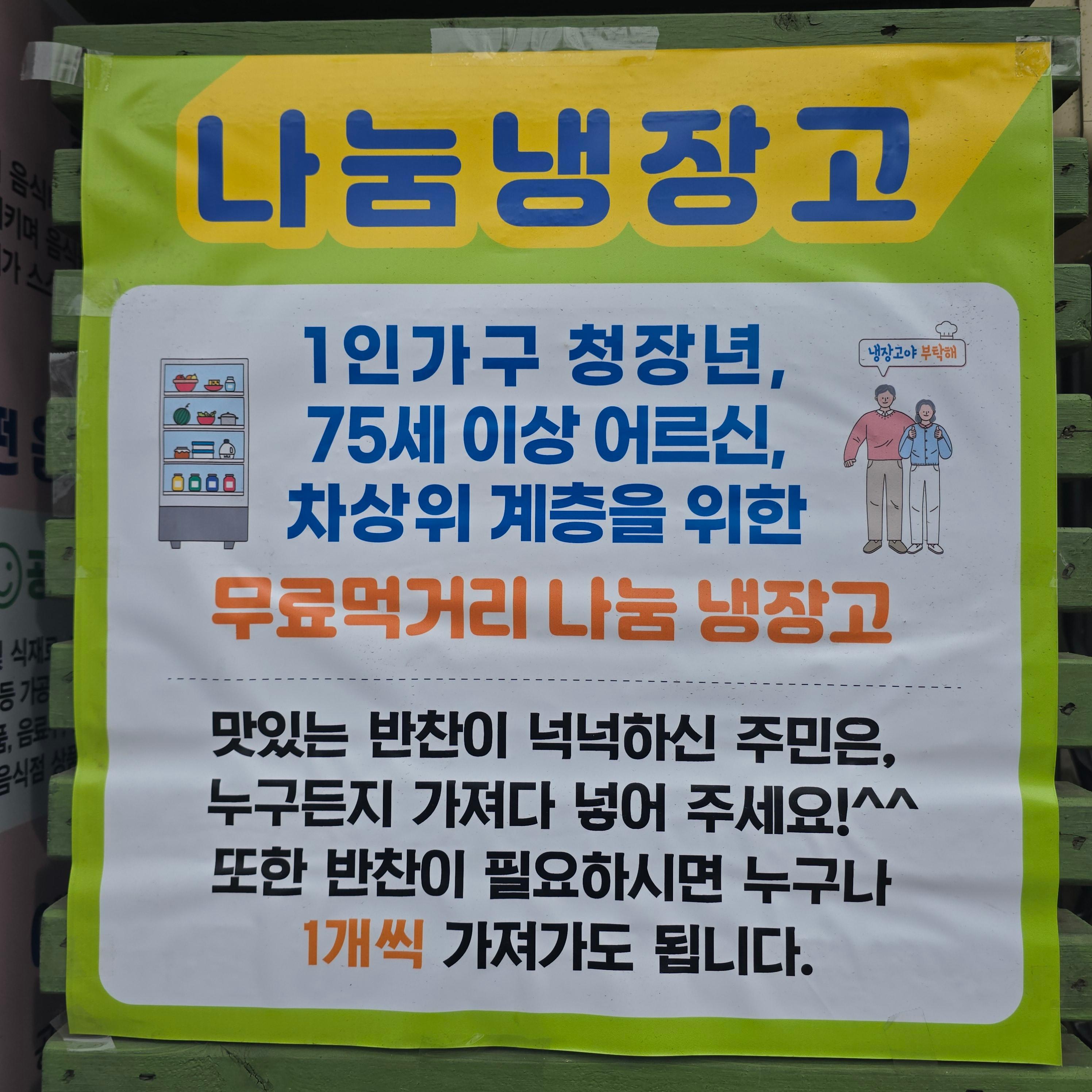 '공유냉장고'는 누구나 음식을 냉장고에 채워 놓을 수 있고 음식이 필요한 사람은 가져갈 수 있는 모두의 냉장고로 이웃과 나눔, 돌봄, 공유의 가치를 실천하고 잉여 먹거리를 줄여 환경을 지키는 일에도 기여한다. 특히 주민들이 따뜻한 정을 기반으로 서로 교류하고 소통하며 위안을 얻는 ‘우리동네 사랑 나눔 공유 프로젝트’이다.