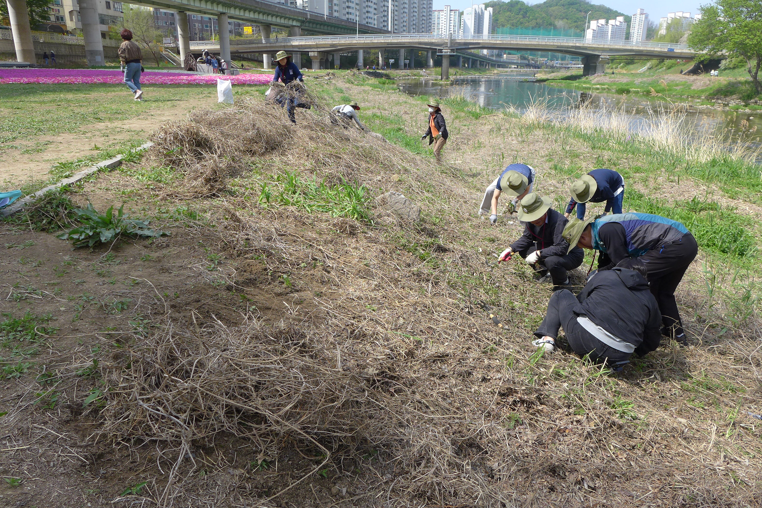 빠른 번식력으로 자생식물들의 생장을 방해하고, 생물 다양성을 저하시킬 수 있어 하천 생태계를 위협하는 생태계 교란식물 제거작업은 자생식물이 건강하게 자랄 수 있는 지속 가능한 생태환경을 만들기 위한 중요한 첫 걸음으로 건강한 하천 생태계 유지를 위해서는 이를 제거해야 하는데 식물의 싹이 나오기 시작하는 4~5월이 적기이기 때문이다.