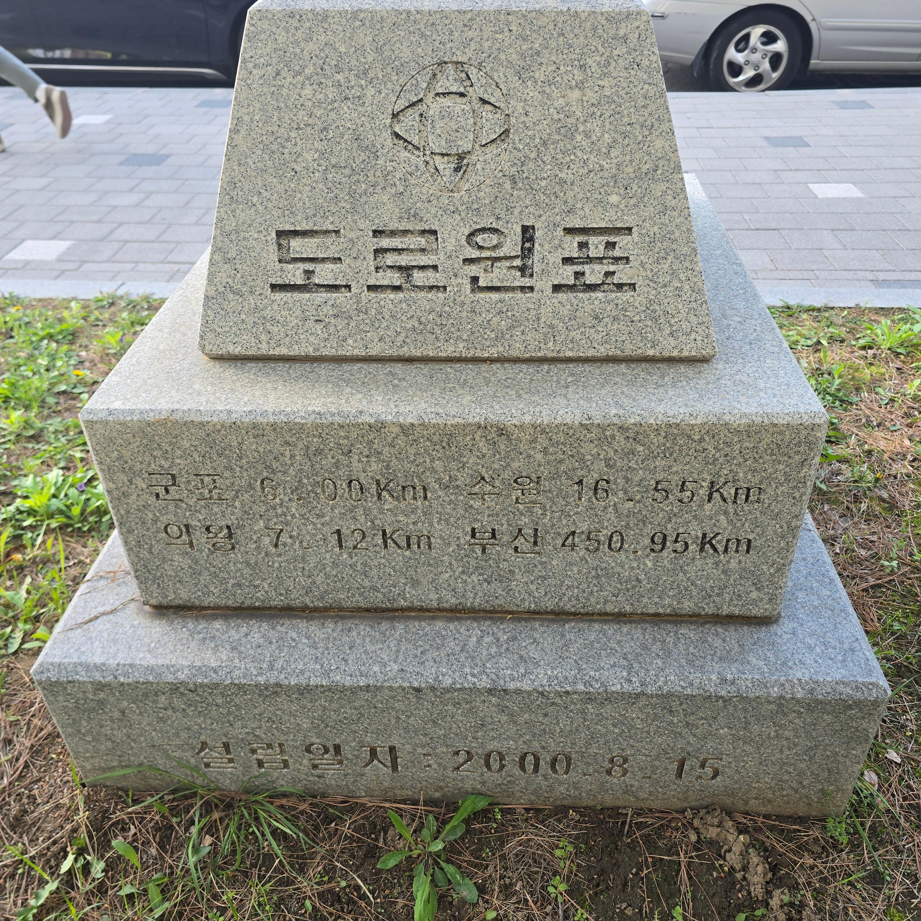 도로원표(道路元標)는 도로의 기점(起點) ·종점(終點) 또는 경과지를 표시하는 기준점 표시이다. 도로원표에는 주요 도시간 거리가 표시돼 있는데 도로원표를 설치하는 곳은 도청과 시청, 군청 등 행정의 중심지에 있는 도로교차로 중앙, 이른바 ‘교통섬’ 정가운데 또는 인근에 설치한다. 안양시의 경우 안양시청 민원실 앞에 설치돼 있는데 설치 일자를 보니 2000년 8월 15일이다.