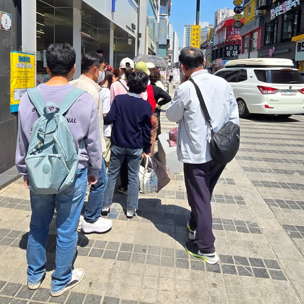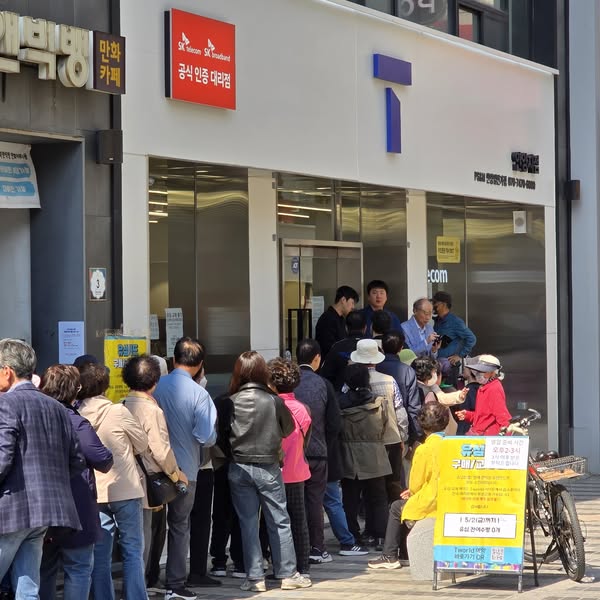 2025.04.29/ #도시기록 #안양 #SK #유심사태/ SK해킹사태, 유심 교체를 위해 줄서 있는 고객들. SK 안양 일번가점앞에서. 유심 재고가 없음에도 유심교체 절차와 방법을 제대로 알려주지 않아 마냥 줄서 있다. 결국 피해자는 고객이며 특히 나이드신 분들이 대부분이다. "SK 이놈들"