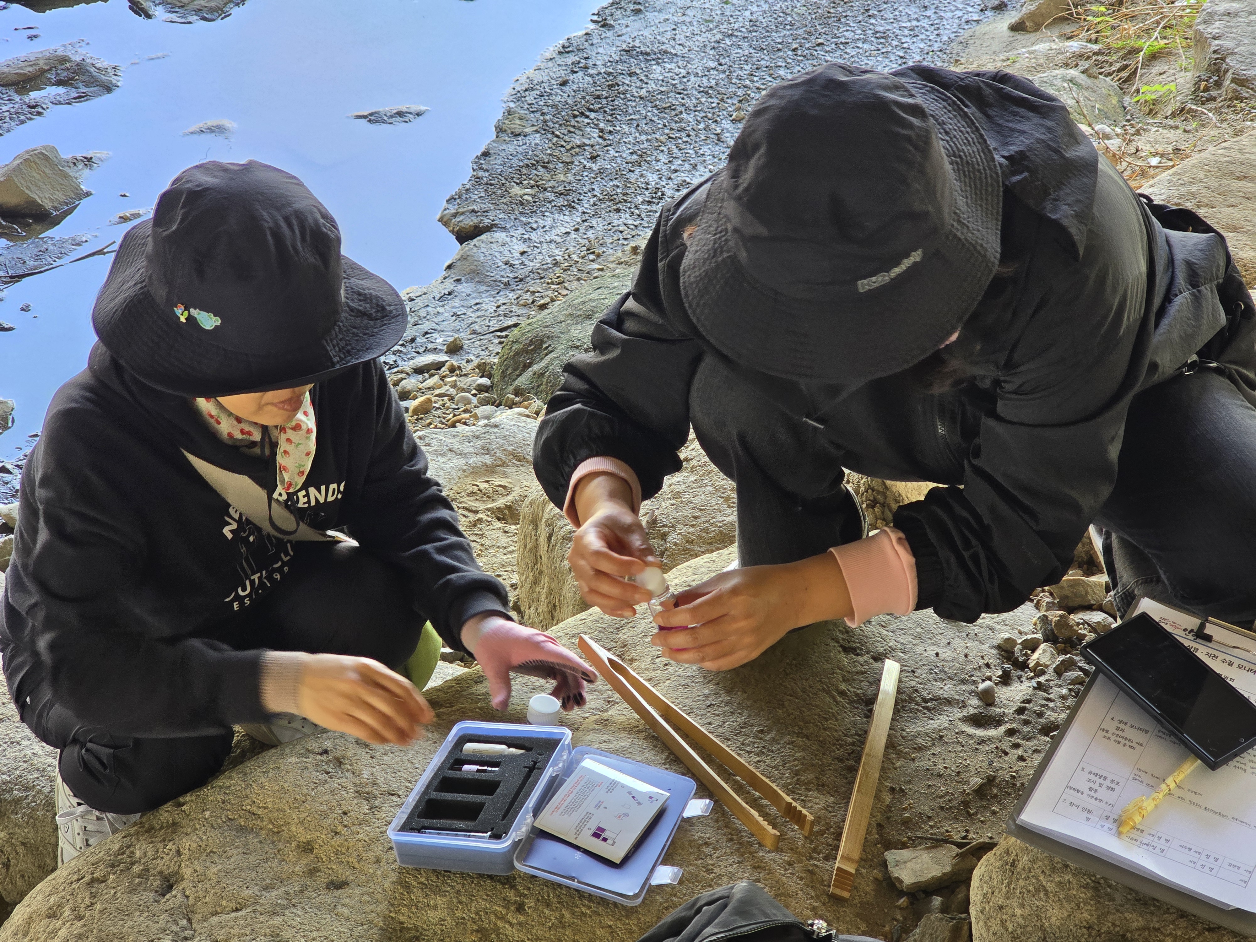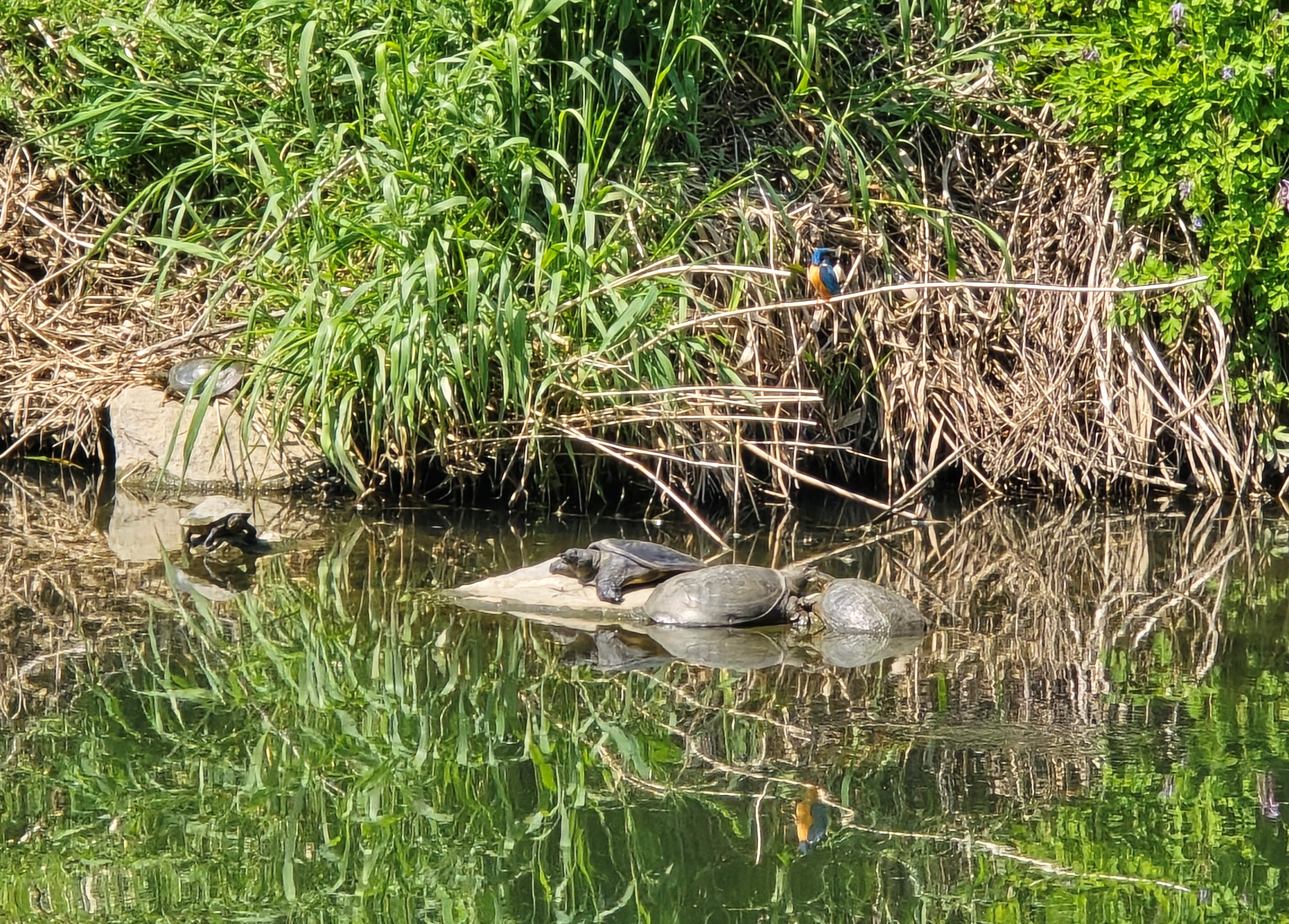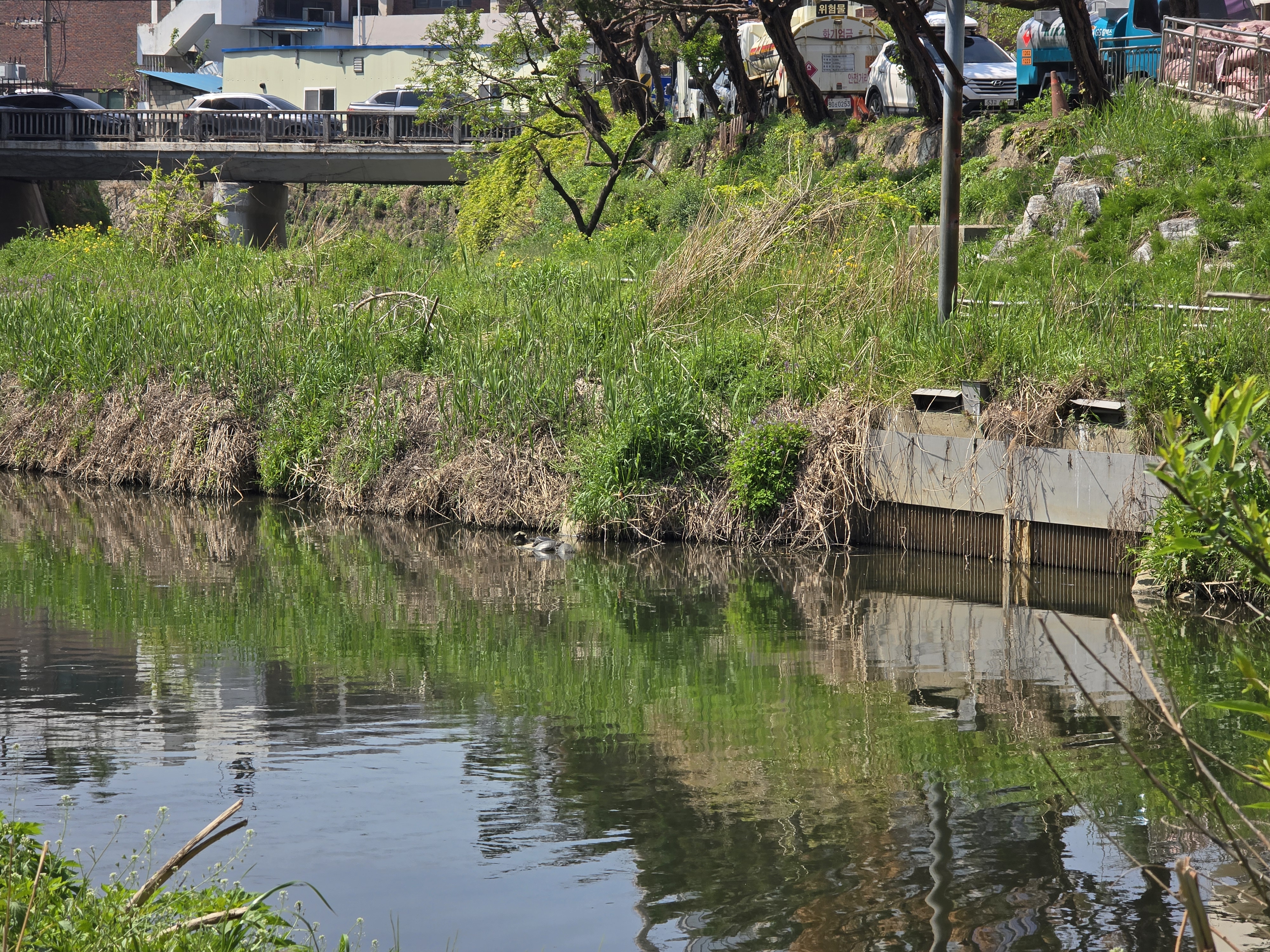 해당구간 3개 지점에서 수질검사 및 줍깅. 생태조사. 유해식물제거. 금호교옆 자리 아지트에서 5마리(지난 수년간 본것중 최다) 자라 가족과 물총새 2마리 발견.