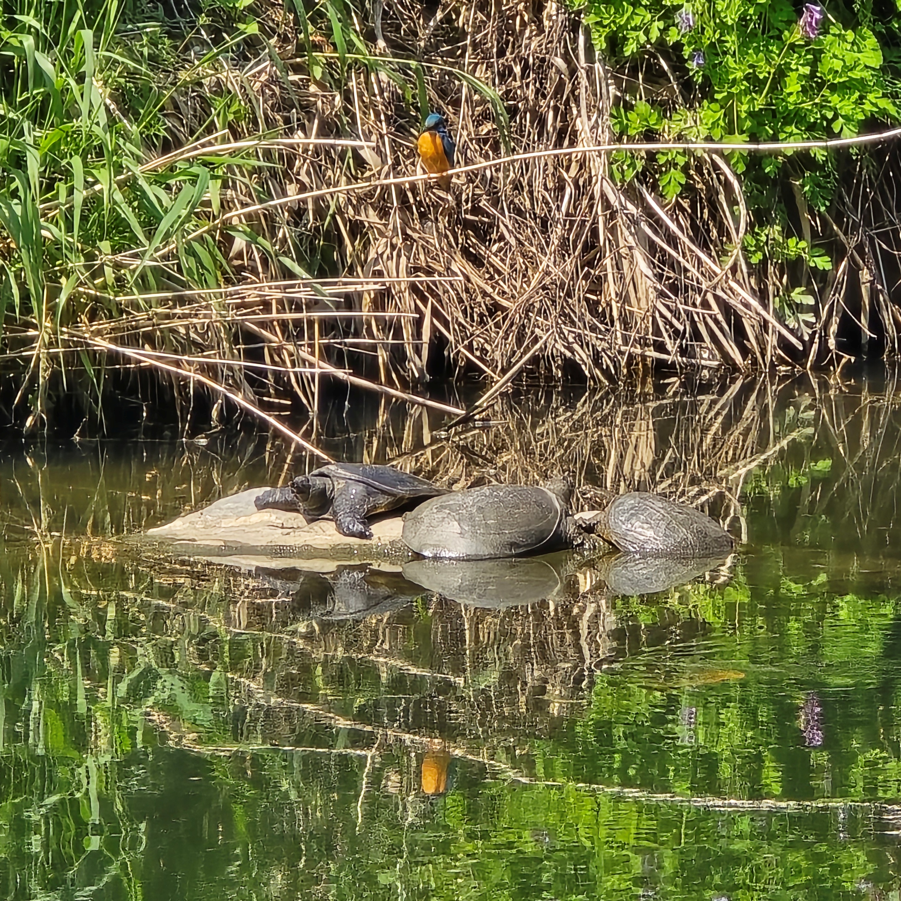 해당구간 3개 지점에서 수질검사 및 줍깅. 생태조사. 유해식물제거. 금호교옆 자리 아지트에서 5마리(지난 수년간 본것중 최다) 자라 가족과 물총새 2마리 발견.