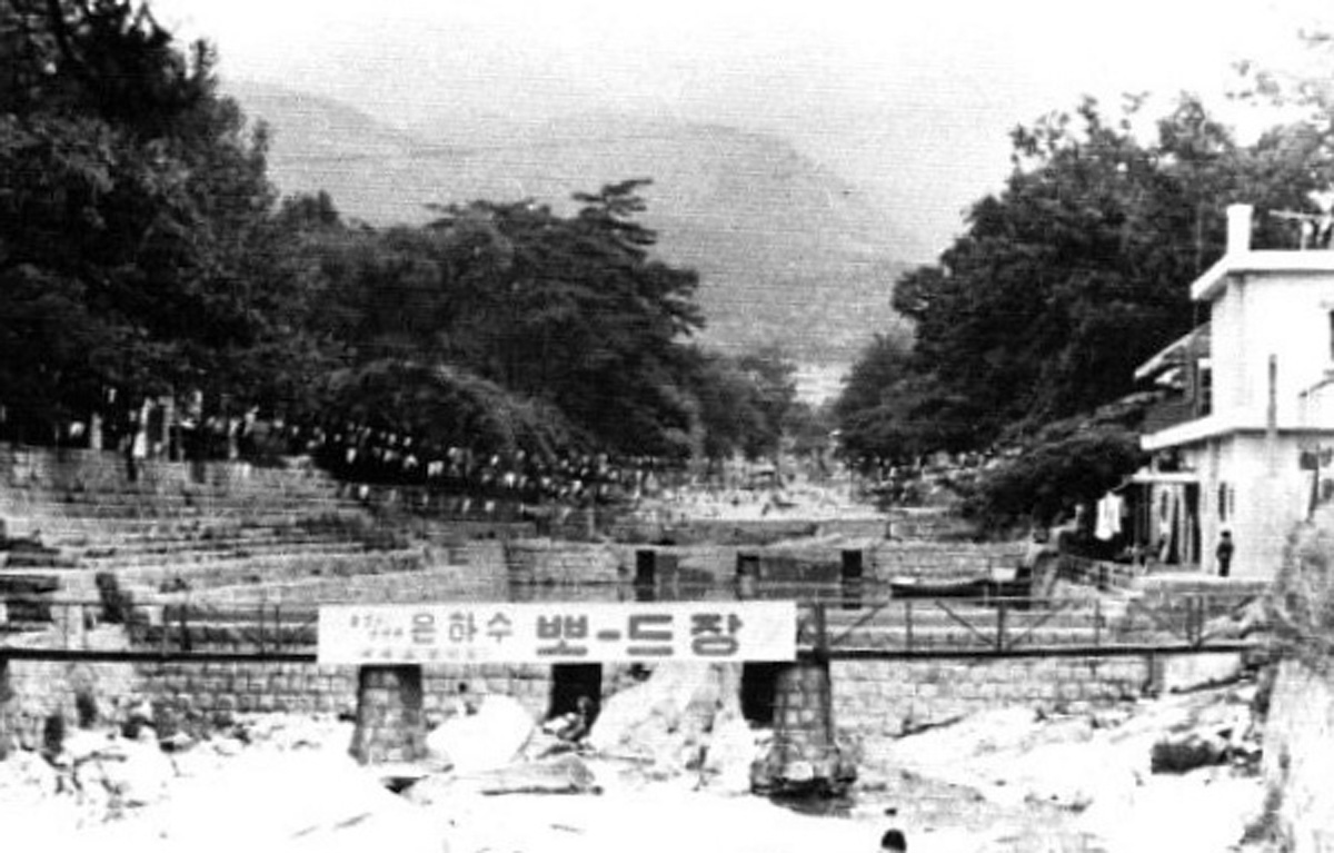 2025.05.08./ #아카이브 #옛사진 #기록 #안양 #안양유원지 #은하수뽀드장 #since1968/ 사진속 풍경은 안양유원지(현재의 안양예술공원)에 있던 은하수 보드장으로 1968년에 찍은 기록이다. 사진속 쁘드장 위치는 현재의 안양예술공원 초입 과거 공짜풀이 있던 곳으로 여름 피서철이 끝나면 뽀드장으로 이용했다,