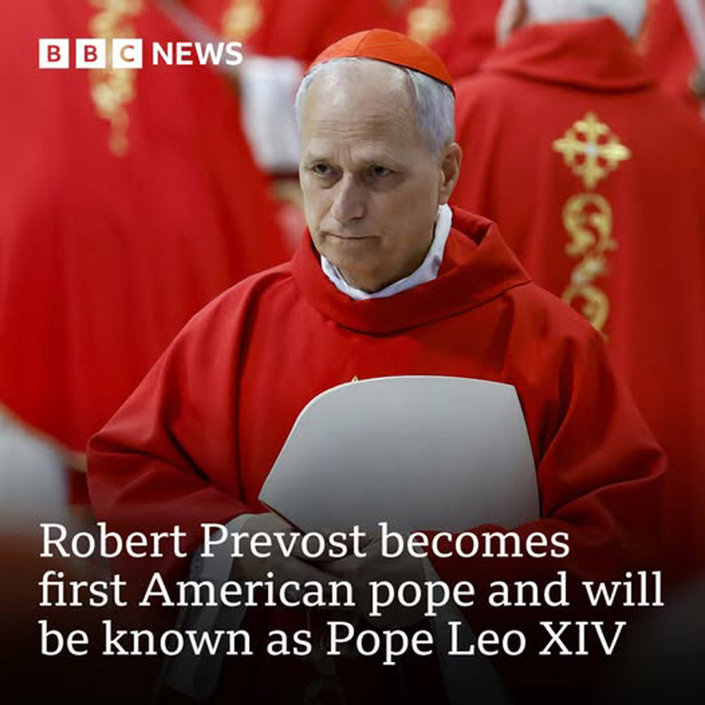 로버트 프랜시스 프레보스트 추기경께서 새 교황으로 선출되셨습니다. 새 교황님을 보내주신 하느님께 감사드리며, 레오 14세 교황님을 위해 많은 기도를 부탁드립니다.