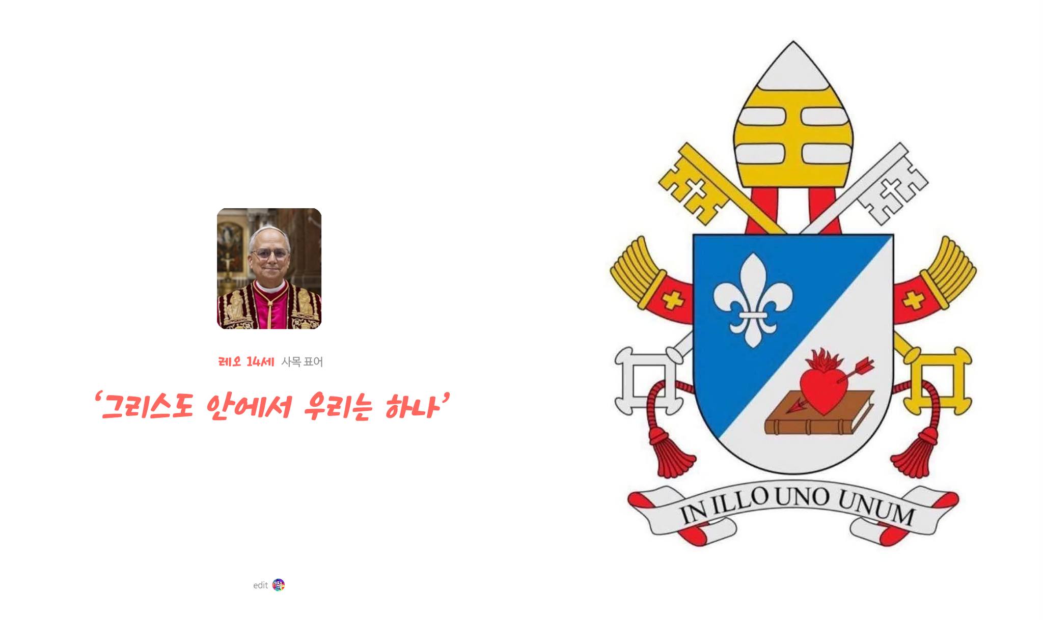 교황의 사목 표어는 ‘In Illo uno unum’으로 ‘그리스도 안에서 우리는 하나’라는 뜻이다 🙏