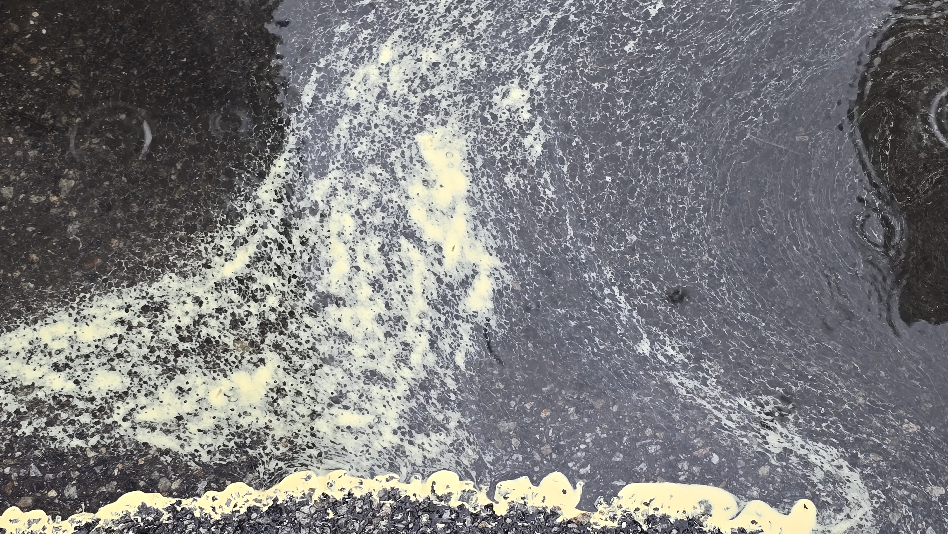 2025.05.09/ #도시기록 #안양 #골목 #송화가루/ 안양6동 골목에서 본 빗물에 고인 송화가루. 마치 송화가루로 미숫가루를 만든듯 싶다. 송화가루는 수리산에서 날아온 것이리라. 병목안시민공원에서 서쪽으로 보면 산위로 바람에 뿌옇게 날리는 송화가루가 장관인데 금년에는 가보질 못했다.