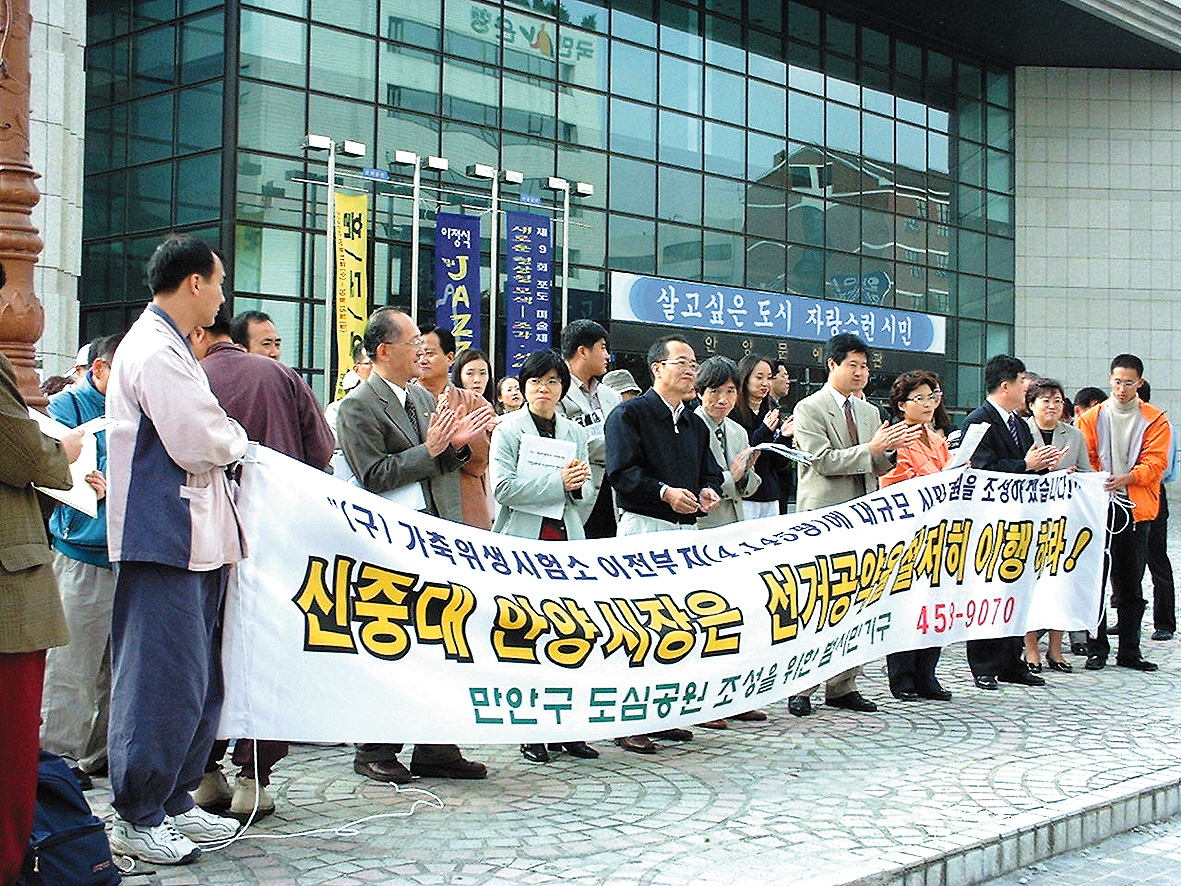 공원 조성 요구해온 시민단체와 시민들로 구성된 범시민기구는 참여단체 회원과 시민이 참여하는 릴레이 1인 시위를 공원 예정부지 앞에서 진행하였고, 거리 서명도 시작하였다. 또한 안 양문예회관에서 '아름다운 마을 숲을 지키기 위한 문화공연'을 진행하는 등 시민의 힘을 모으는 활동을 이어나갔다. 그리하여 1차로 모 집된 4,384명 안양시민의 의견을 대통령과 경기도지사에게 '도심공원 조성을 위한 탄원서를 제출하였고, 당시 안양시장인 신중대시장에게는 자신의 선거공약인 도심공원 조성 약속을 지킬 것을 촉구했다.