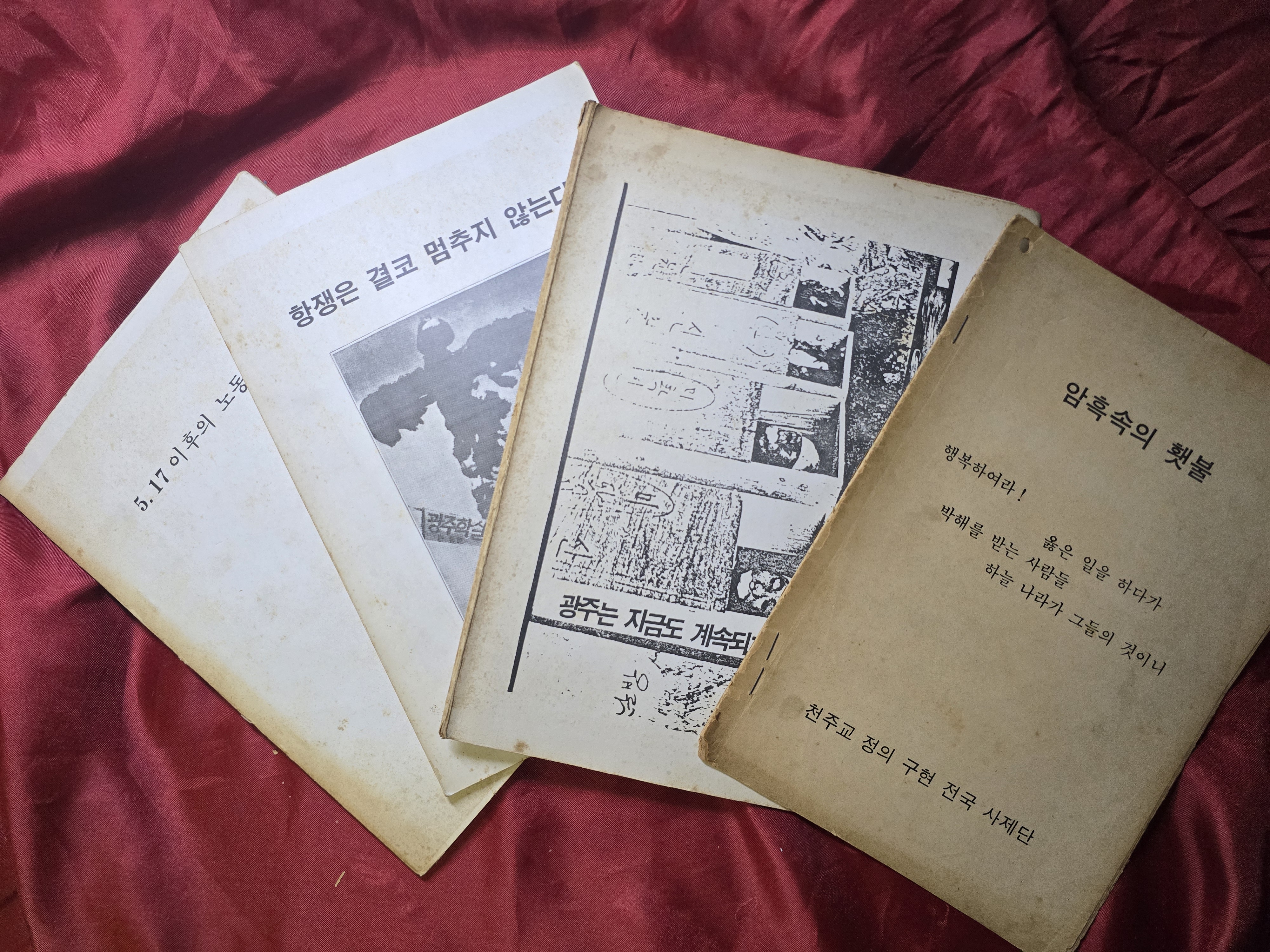 한강 작가의 소설 '소년이온다'에 담긴 광주의 오월이 돌아왔습니다. 5.18! 어느새 45주기. 날이 밝아오는 새벽에 깊숙한 곳에 두었던 보자기를 꺼내 풀어 보니 5월 광주와 6월 민주항쟁 자료들이 제법됩니다. 참혹한 장면의 사진들이 수록된 광주 자료들을 다시금 살펴보며 1980년, 광주의 정신을 되새겨봅니다. 오월의 광주를 기억해주세요.