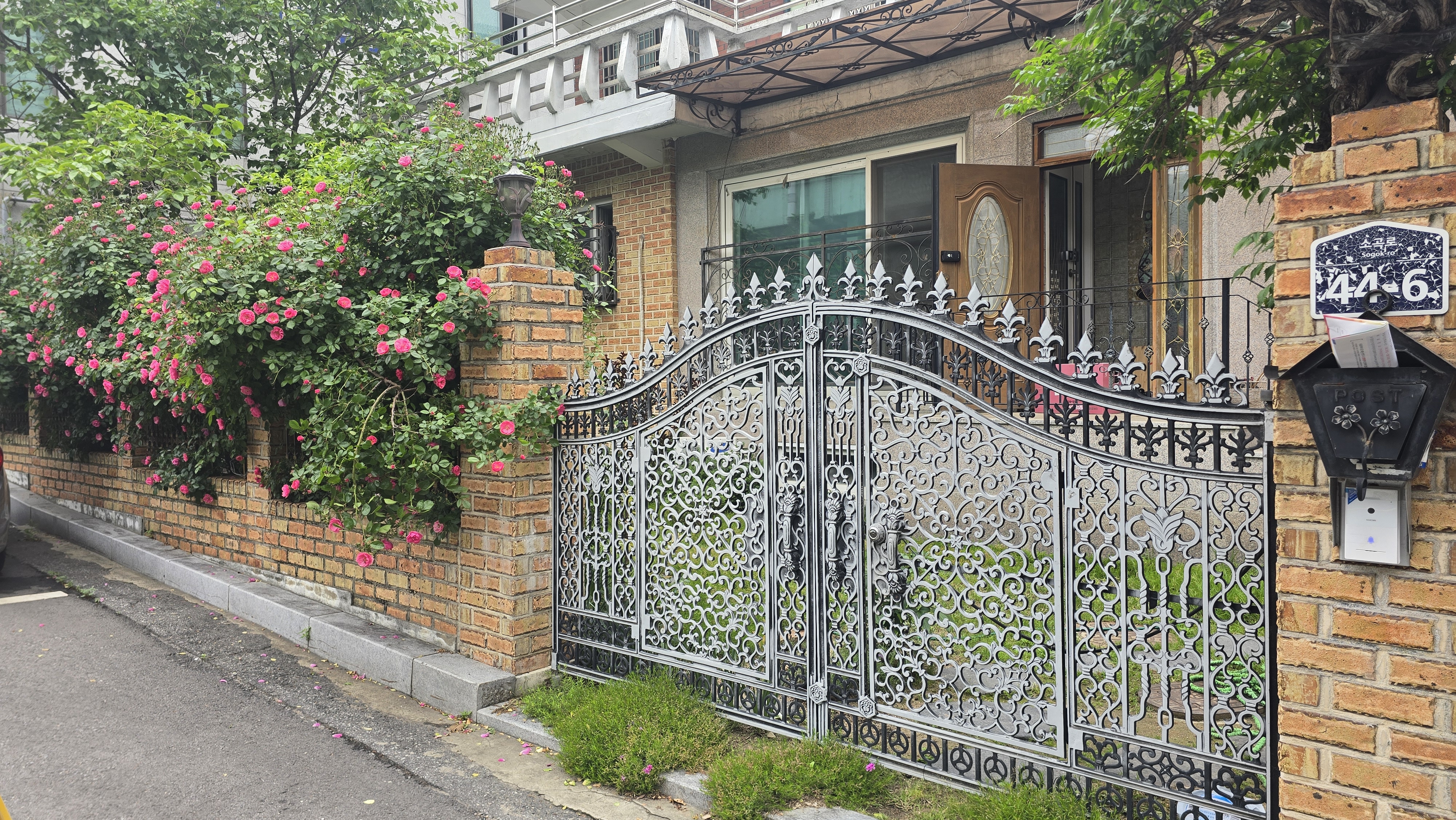 2025.05.20/ #도시기록 #안양 #장미꽃/ 안양6동 은혜와진리교회에서 안양세무서 가는길(소곡로) 우측 단독주택 담벼락의 핑크장미꽃 물결. 아파트 부럽지않을듯 싶다.