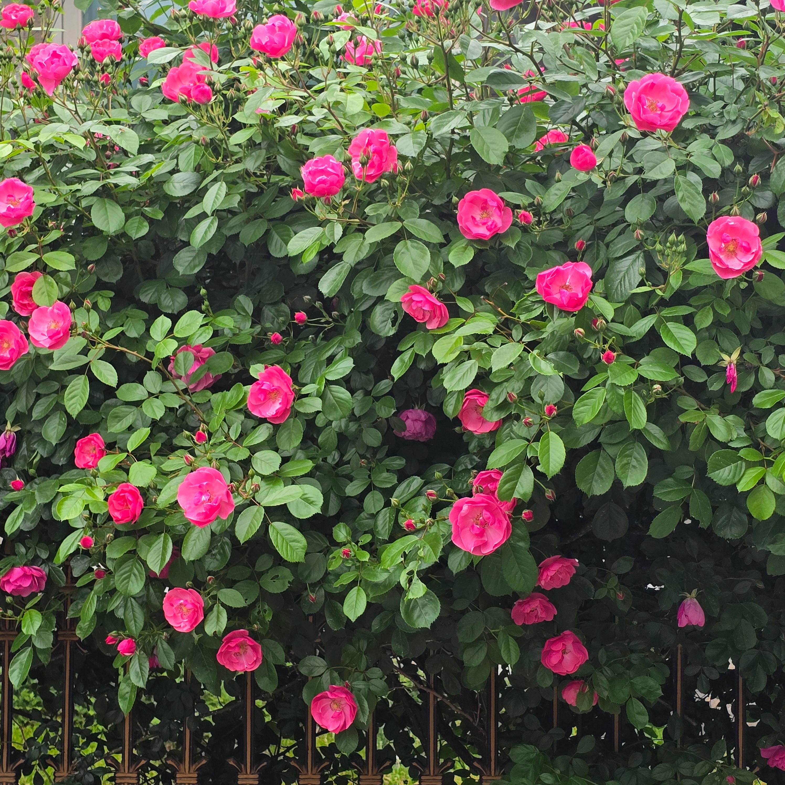 2025.05.20/ #도시기록 #안양 #장미꽃/ 안양6동 은혜와진리교회에서 안양세무서 가는길(소곡로) 우측 단독주택 담벼락의 핑크장미꽃 물결. 아파트 부럽지않을듯 싶다.