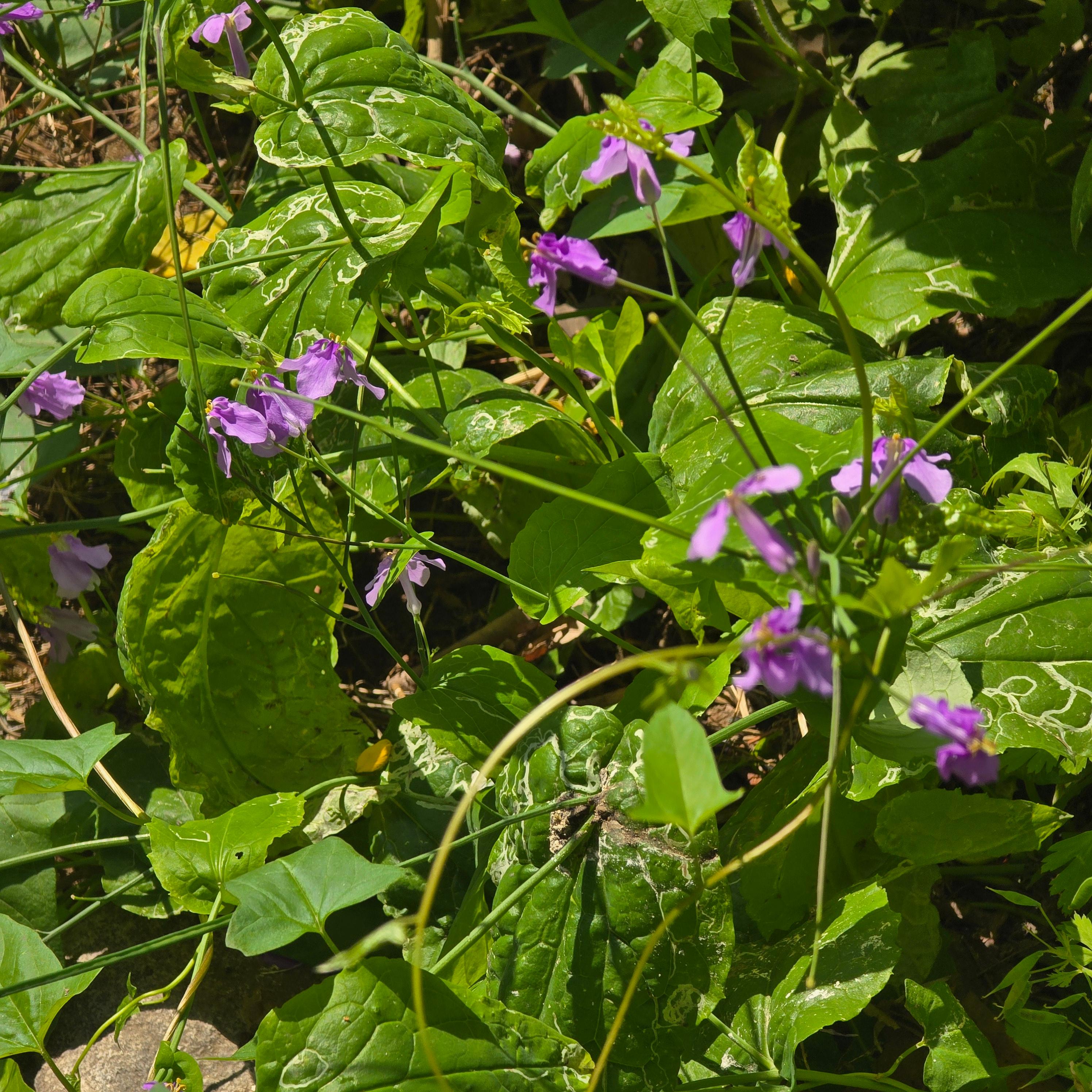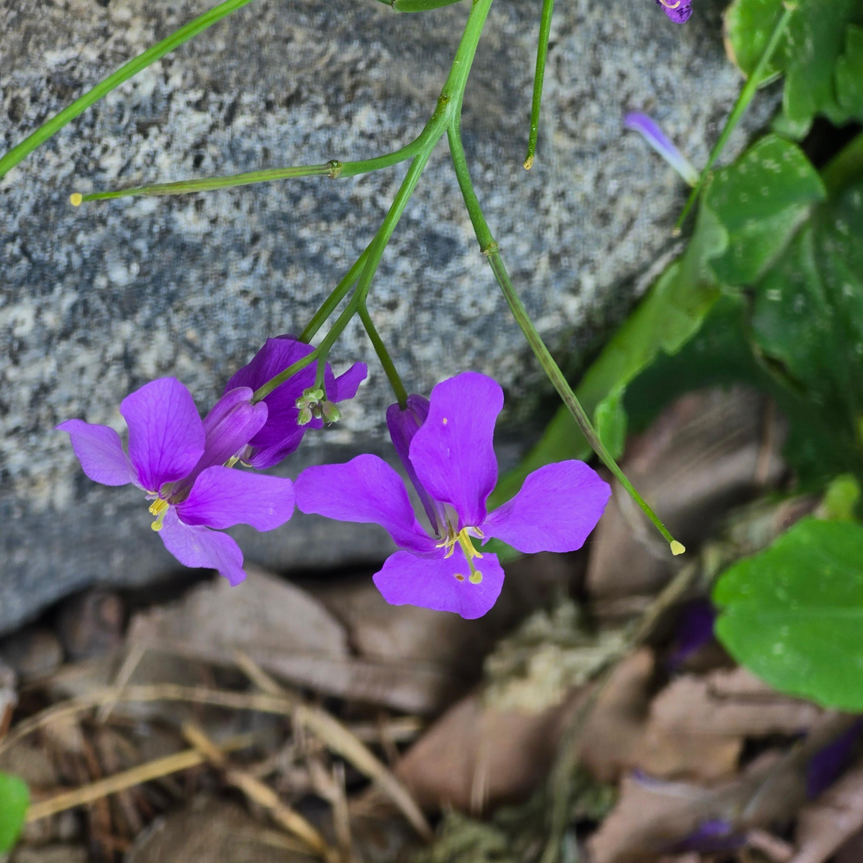 이 꽃은 중국이 원산지인 귀화식물로 양귀비목 십자화과로 제갈채(諸葛菜), 보라유채, 제비냉이 등 이명(異名)도 많지요.