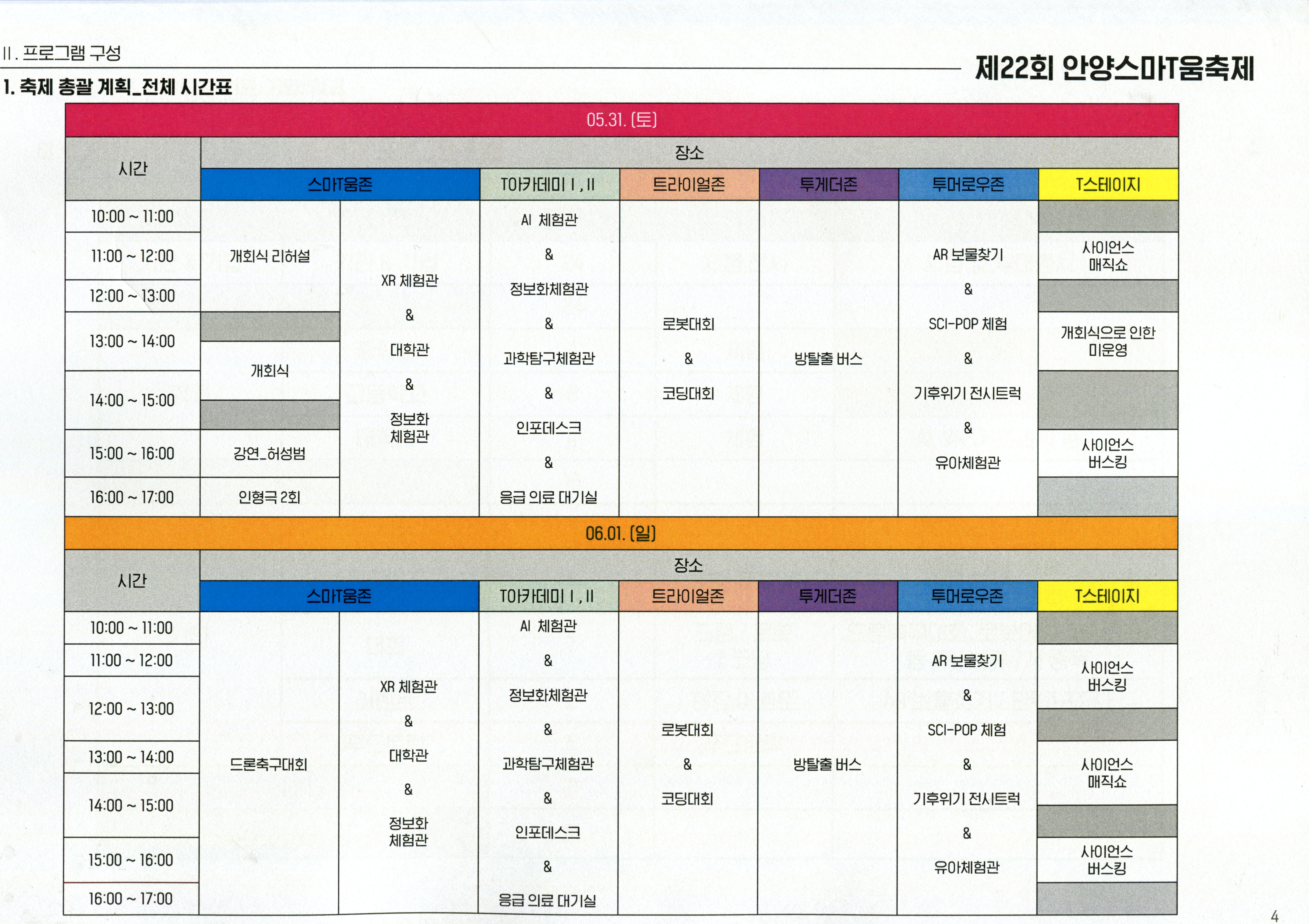 <안양스마T움축제>는 글로벌 ICT 전문가 및 과학 인재 양성과 더불어 빠르게 변화하는 사회 흐름에 따라 과학 분야를 발전시키려는 취지로 시작되었고 경진대회, 정보화 체험관, 초중고교 과학동아리 부스 운영 등 다양한 부대행사로 구성된 대규모 과학축제다.