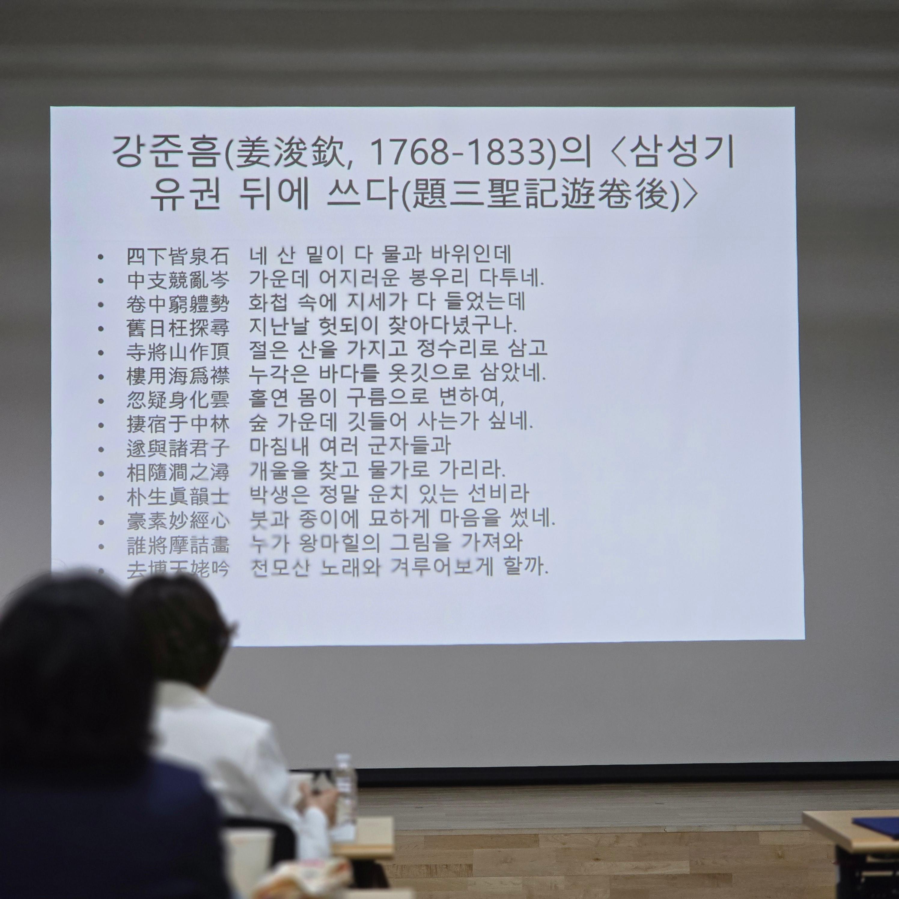 ▲정재은(안양박물관) ‘기록의 시선이 머문 곳: 《삼성기유첩》에 담긴 안양의 유적’▲이종묵(서울대학교)‘《삼성기유첩》과 운초 박지수’ ▲류승민(국가유산청) ‘19세기 전반기 조선의 첩학(帖學) 전통 -안양박물관 《삼성기유첩》을 중심으로 ▲이경화(서울대학교 규장각한국학연구원) ‘《삼성기유첩》: 삼성산과 관악산 명소의 회화적 재현 방식’ ▲박정애(전남대학교) ‘조선 후기 명산 실경산수화의 전개와 《삼성기유첩》’ 등 회화사·한문학·서예사 관점의 발표를 진행했다.