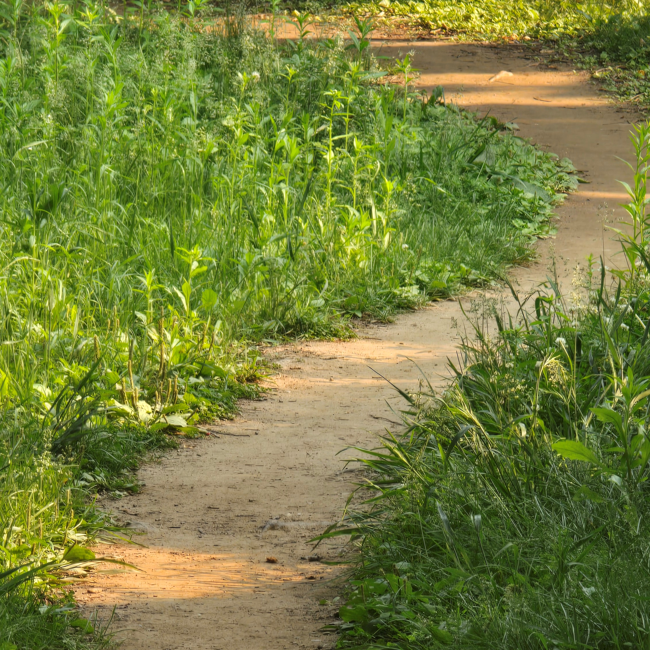 2025.06.02/ #도시기록 #안양 #길 #엣검역원/ 안양6동 옛검역원내 정원에 맨발걷기 열풍으로 반들반들한 흙길이 생기고 담장 일부가 철거된 이후 수풀을 가로지르는 지름길이 생겼다.