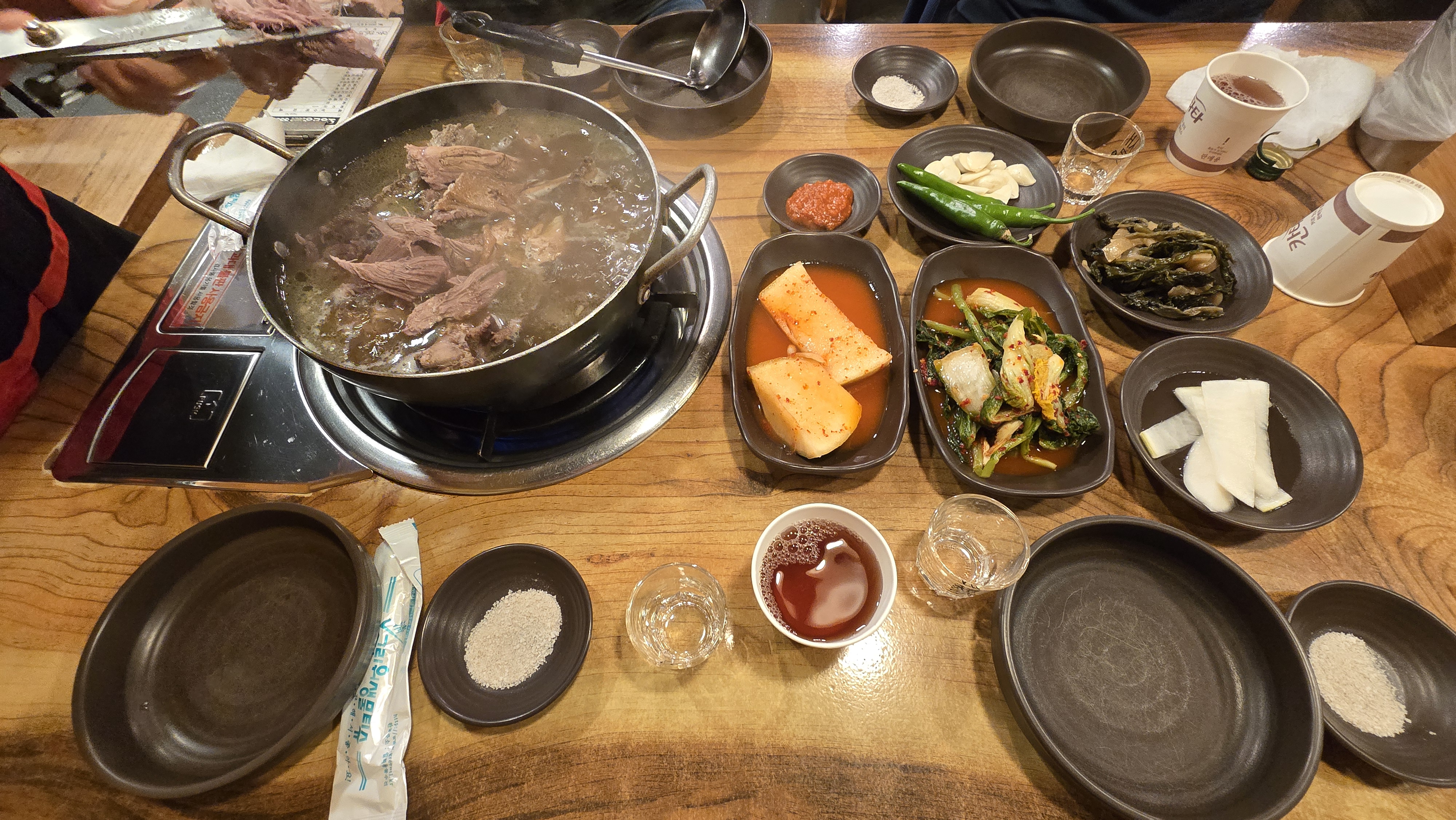 고기를 먹고나면 마지막은 찰밥이다, 담백하고 잡내 일절 없는 참쌀밥을 국물에 풀어서 계속 뒤적여야 맛있다고 한다, 손님이 적으면 서빙 이모님이 직접 해주시기도 한다.