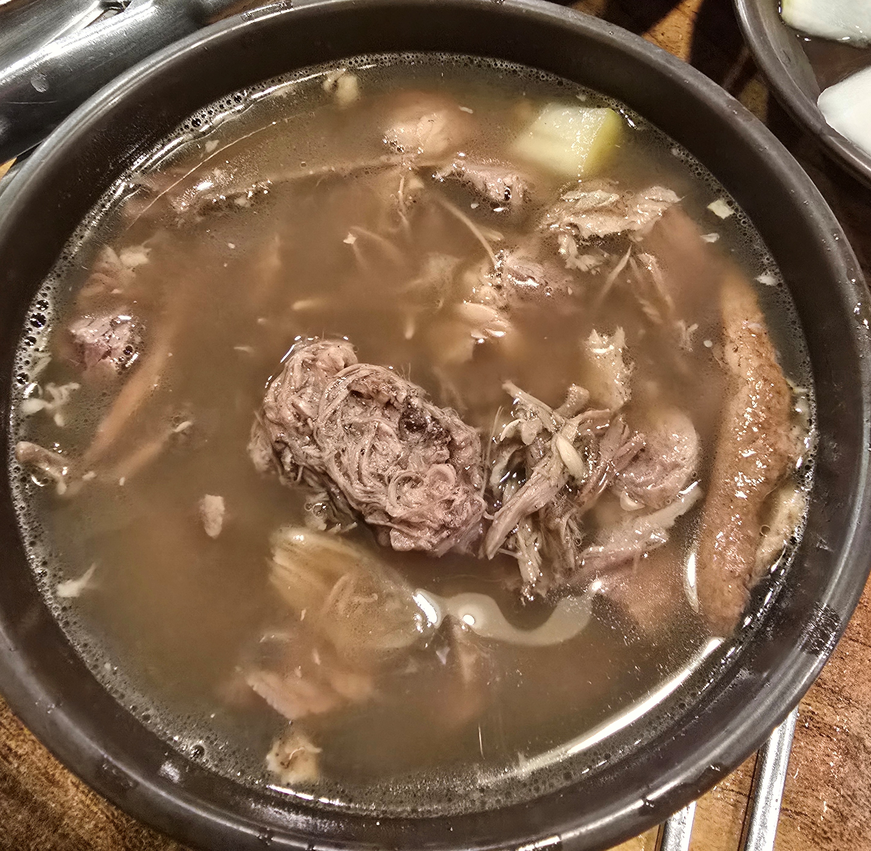 옻나무를 우린 물 때문인지 오리 고기랑 육수가 상당히 검다. 국물은 상당히 진하고 개운하다. 고기는 고소하고 담백하고 진한 맛으로 건강한 기분이 들기도 하고...