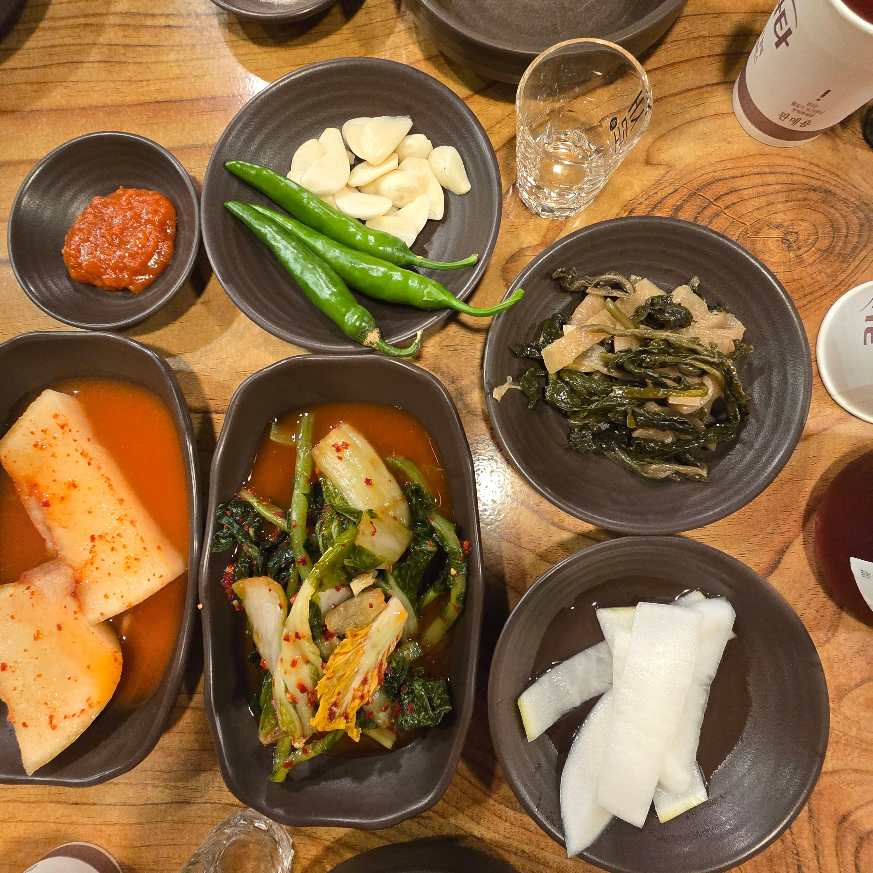 기본으로 깔끔하게 나온 찬들이 깔끔하다. 모든 재료가 국내산이다.