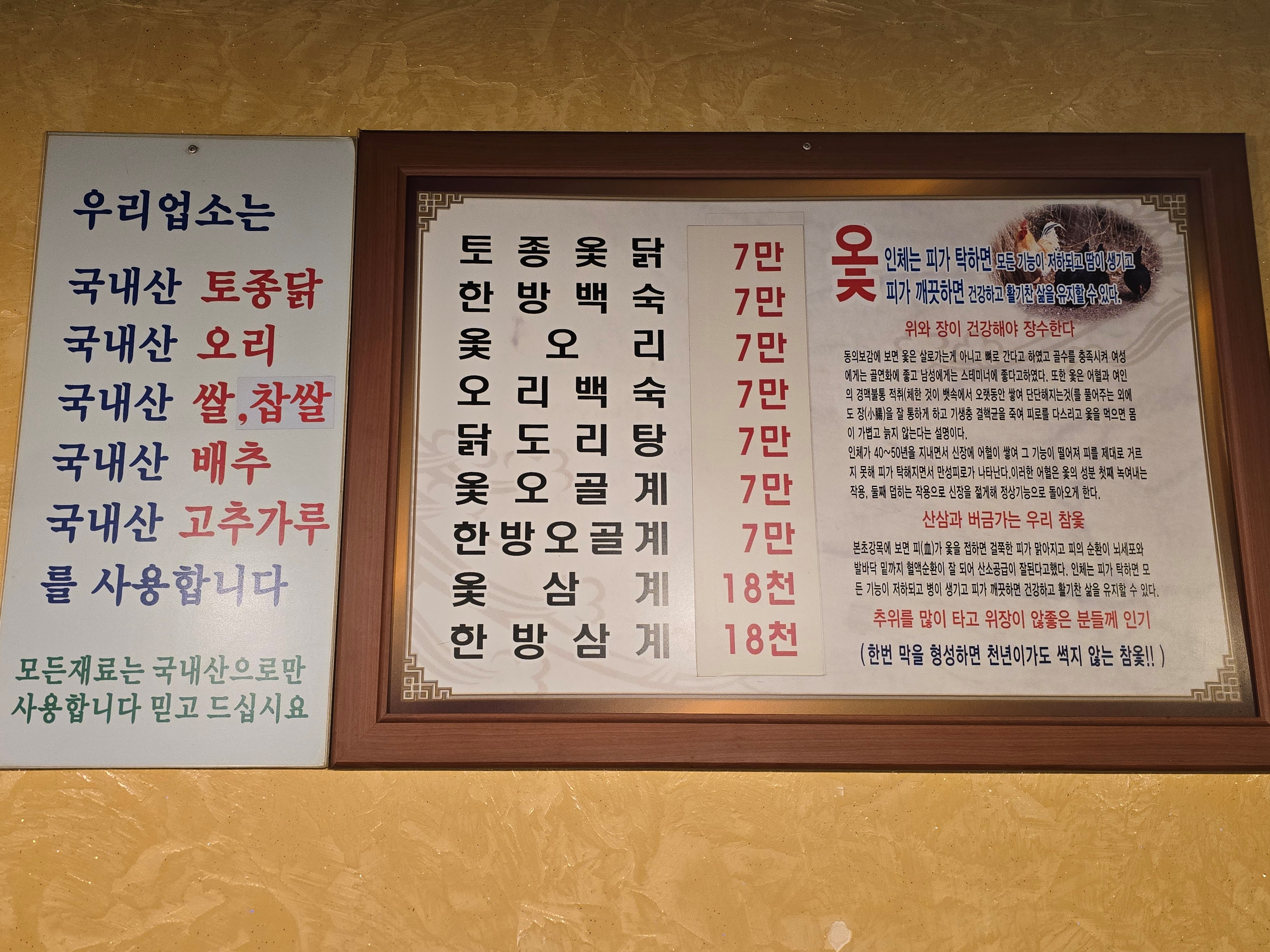 닭이냐 오리냐 입맛과 취향에 따라 선택하면 되지만 써빙 이모님 추천은 양도 많고 보신 효과도 좋은 오리가 좋다고 하네요.