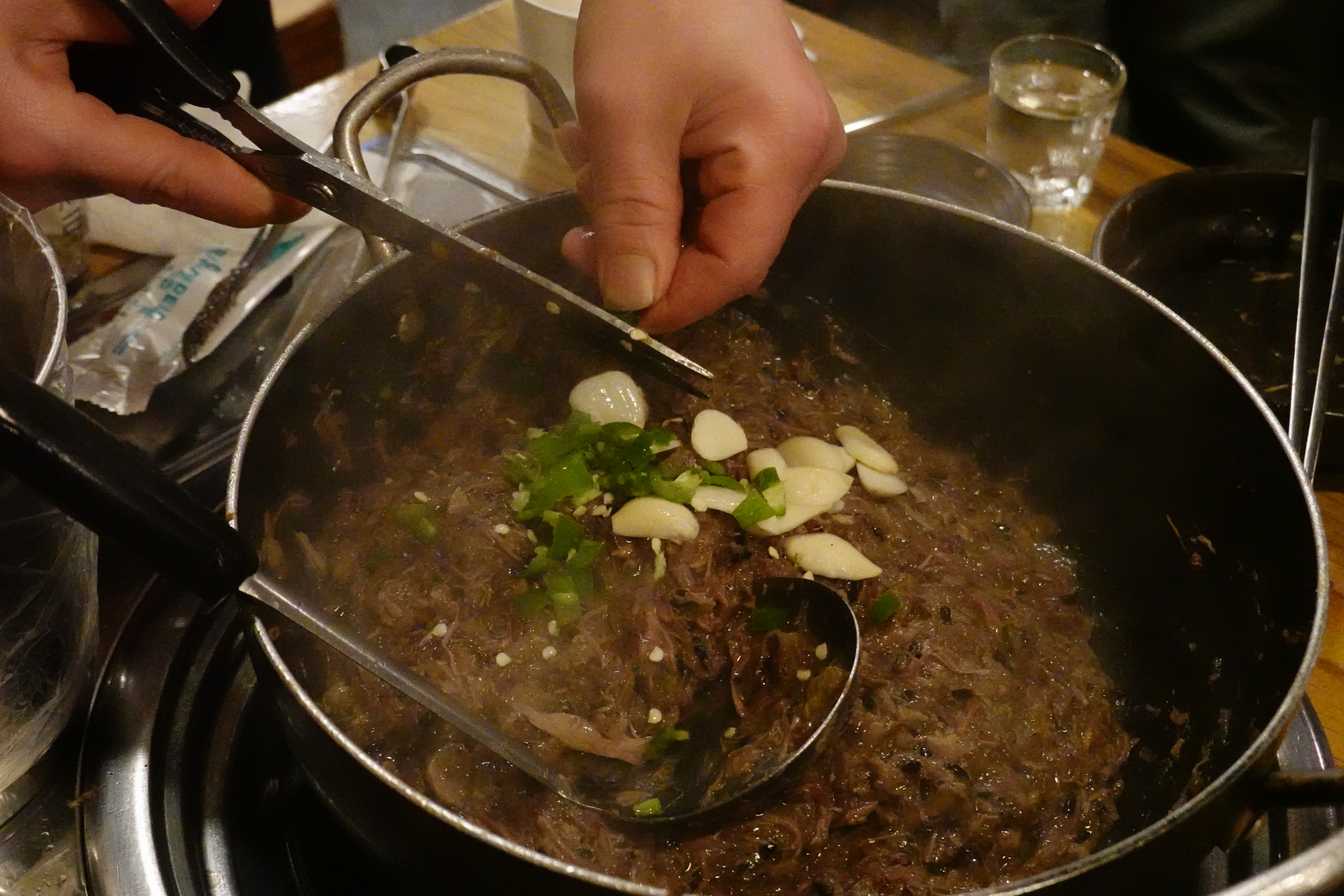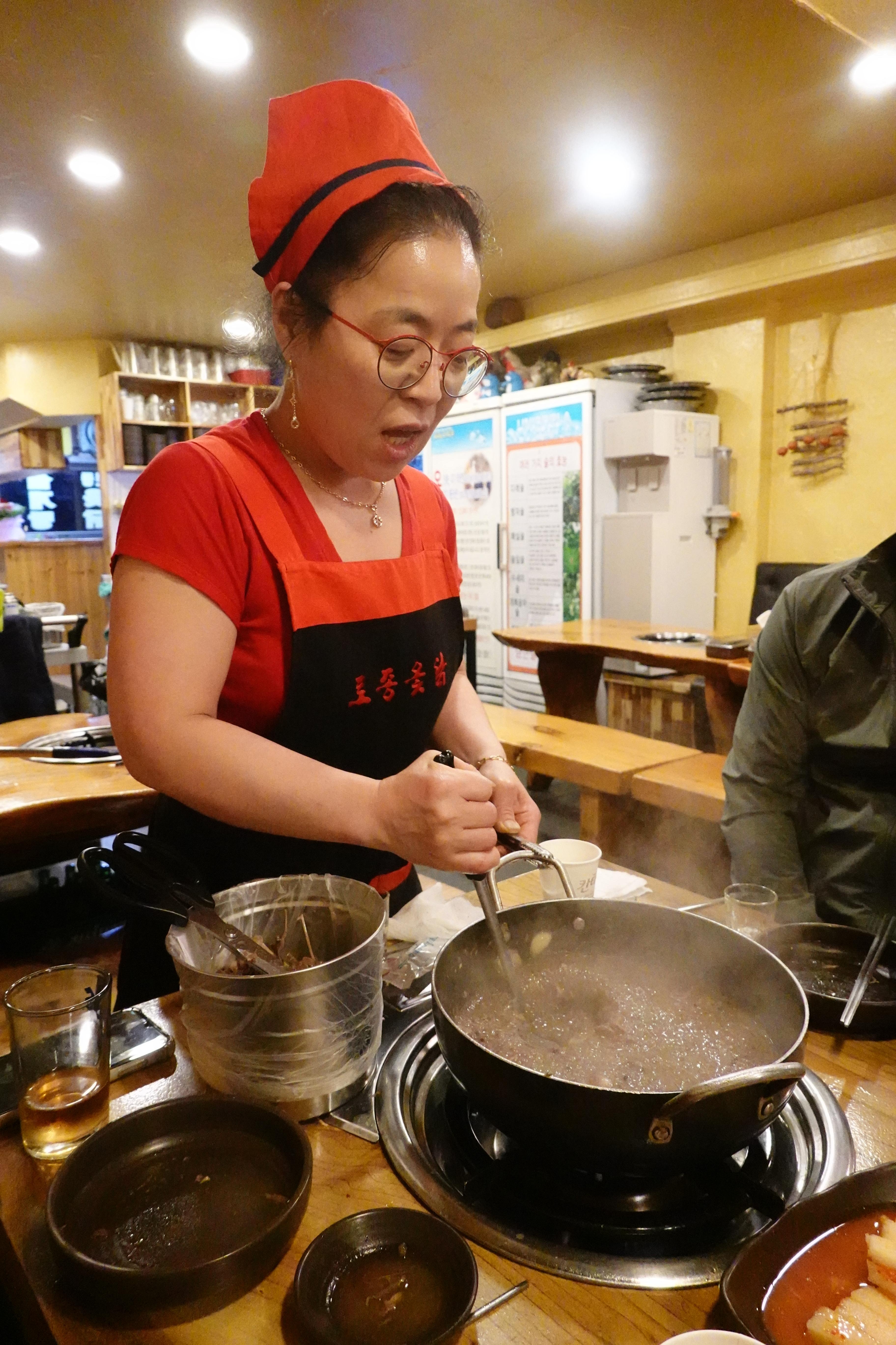 고기를 먹고나면 마지막은 찰밥이다, 담백하고 잡내 일절 없는 참쌀밥을 국물에 풀어서 계속 뒤적여야 맛있다고 한다, 손님이 적으면 서빙 이모님이 직접 해주시기도 한다.