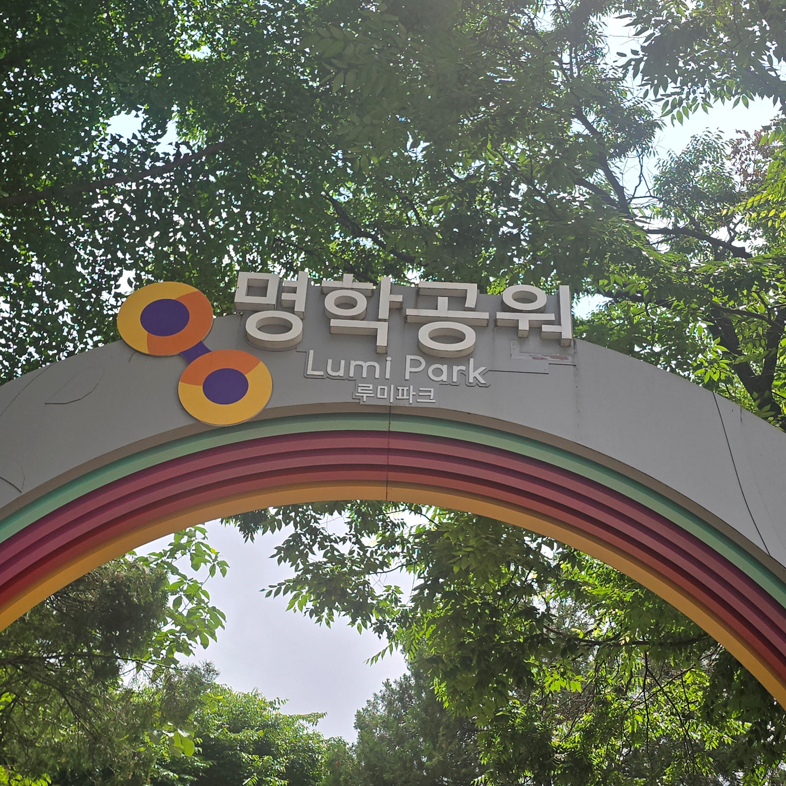 2025.06.10/ #도시기록 #안양 #명학공원 #에공/ 명학공원 정문 아치에 부착된 명패 글씨 일부가 떨어져 보기에 흉해 보수가 필요하나 그대로 방치되고 있다. 관리 책임이 안양시인지 만안구청인지 조속한 조치가 필요해 보인다.