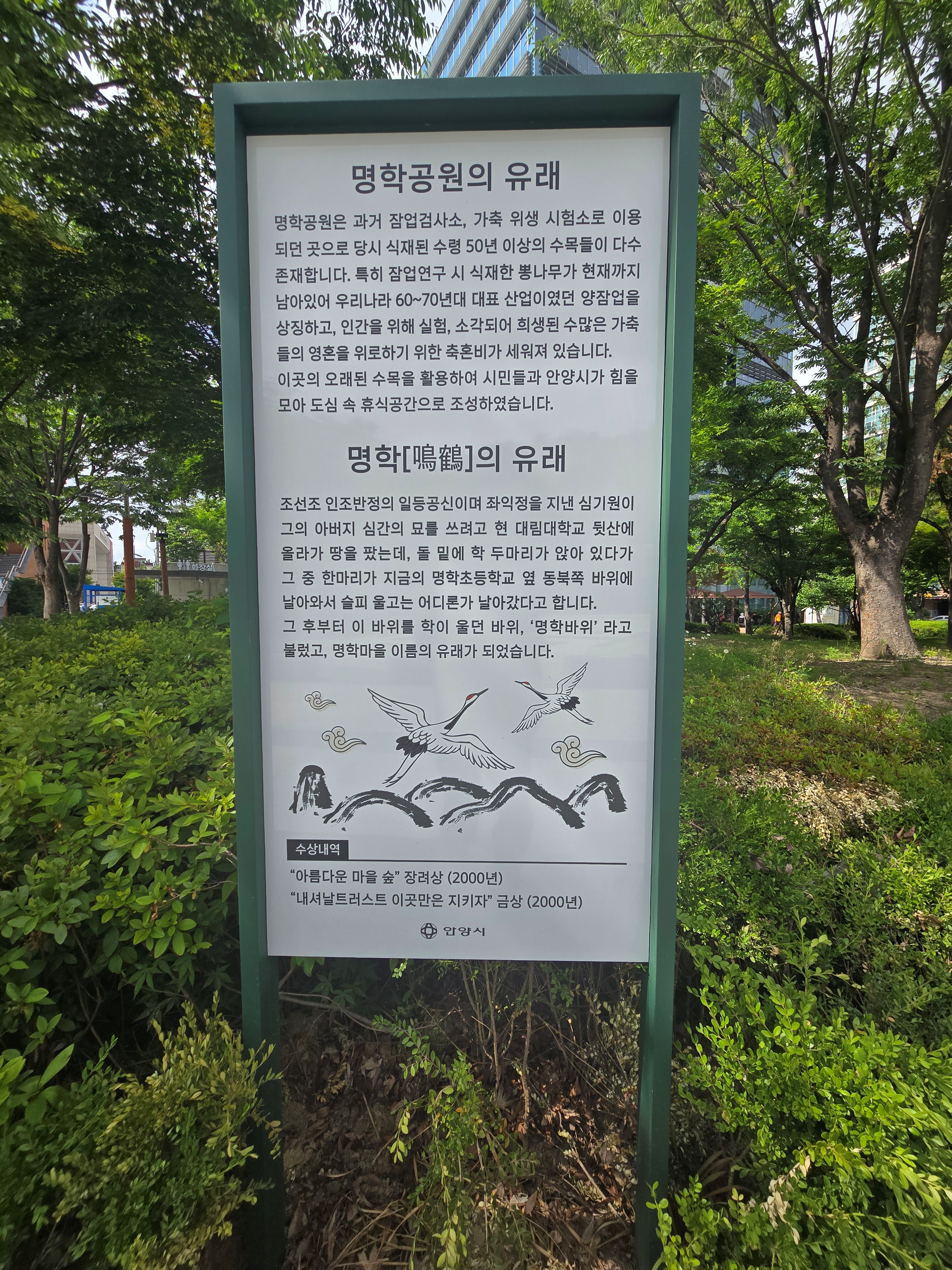 명학공원은 과거 경기도 가축위생시험소와 잠업(蠶業)연구소가 있었던 곳으로, 지난 2009년에 공원으로 조성돼 현재까지 다양한 연령층의 많은 시민이 이용하고 있다.