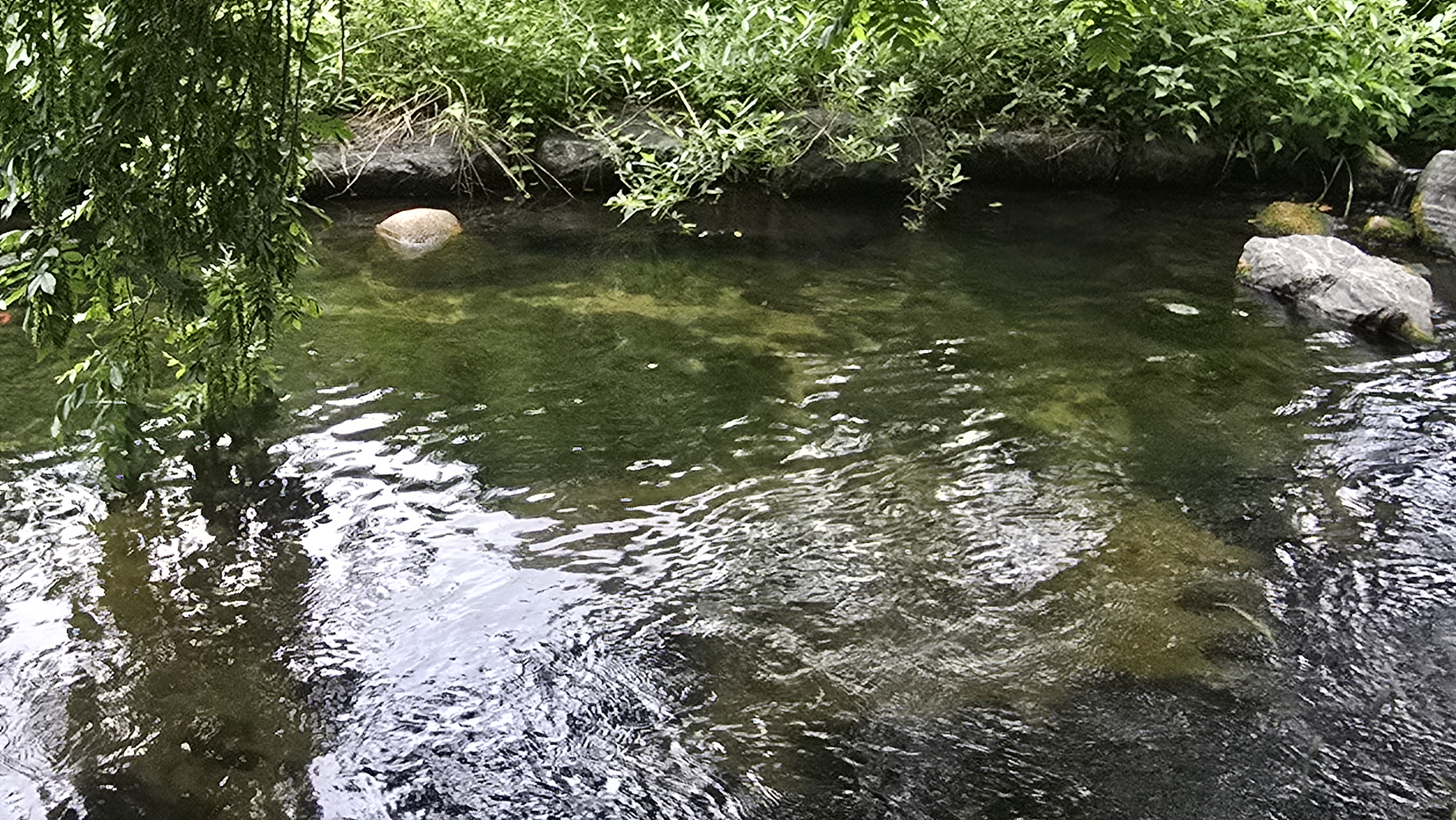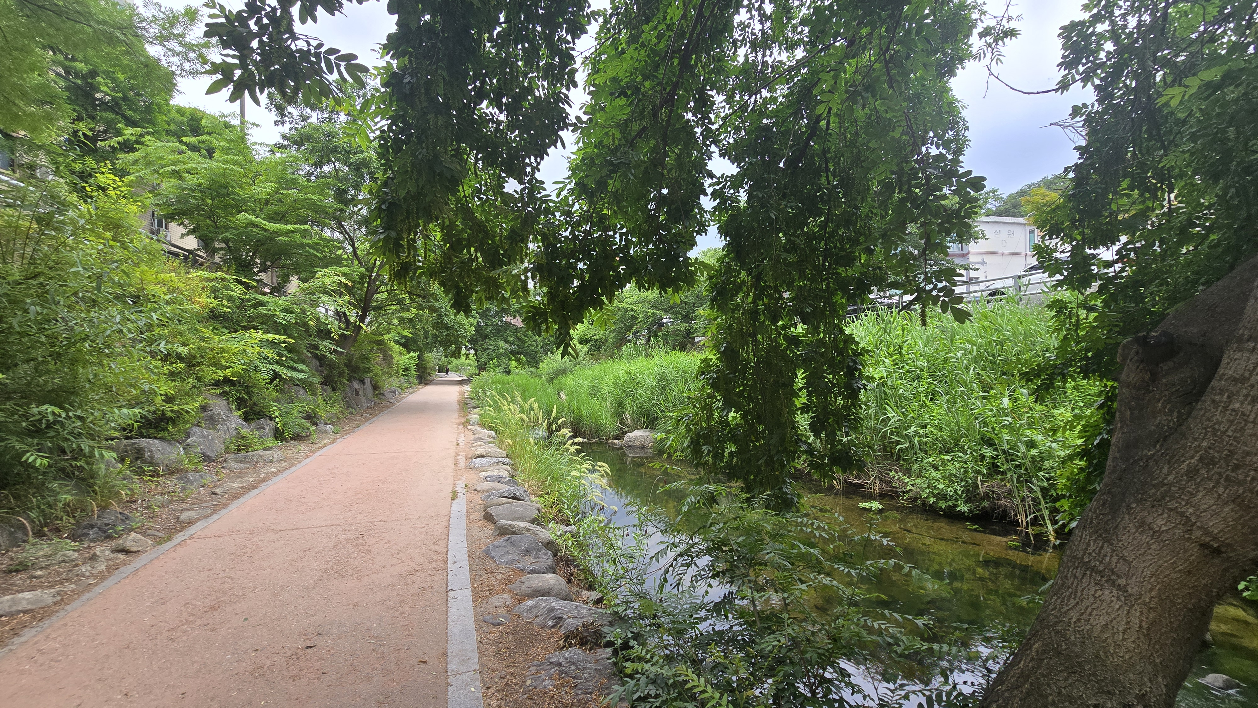 2025.06.15/ #도시기록 #안양 #삼성천 / 경수대로~중초사교~마애종교~예술공원교 구간 삼성천 풍경. 녹음 짙은 나무 그늘의 천변 산책길이 아름다운 곳. 하천 물 깊이가 제법 깊다. 온갖 물고기들이 바글바글하다.