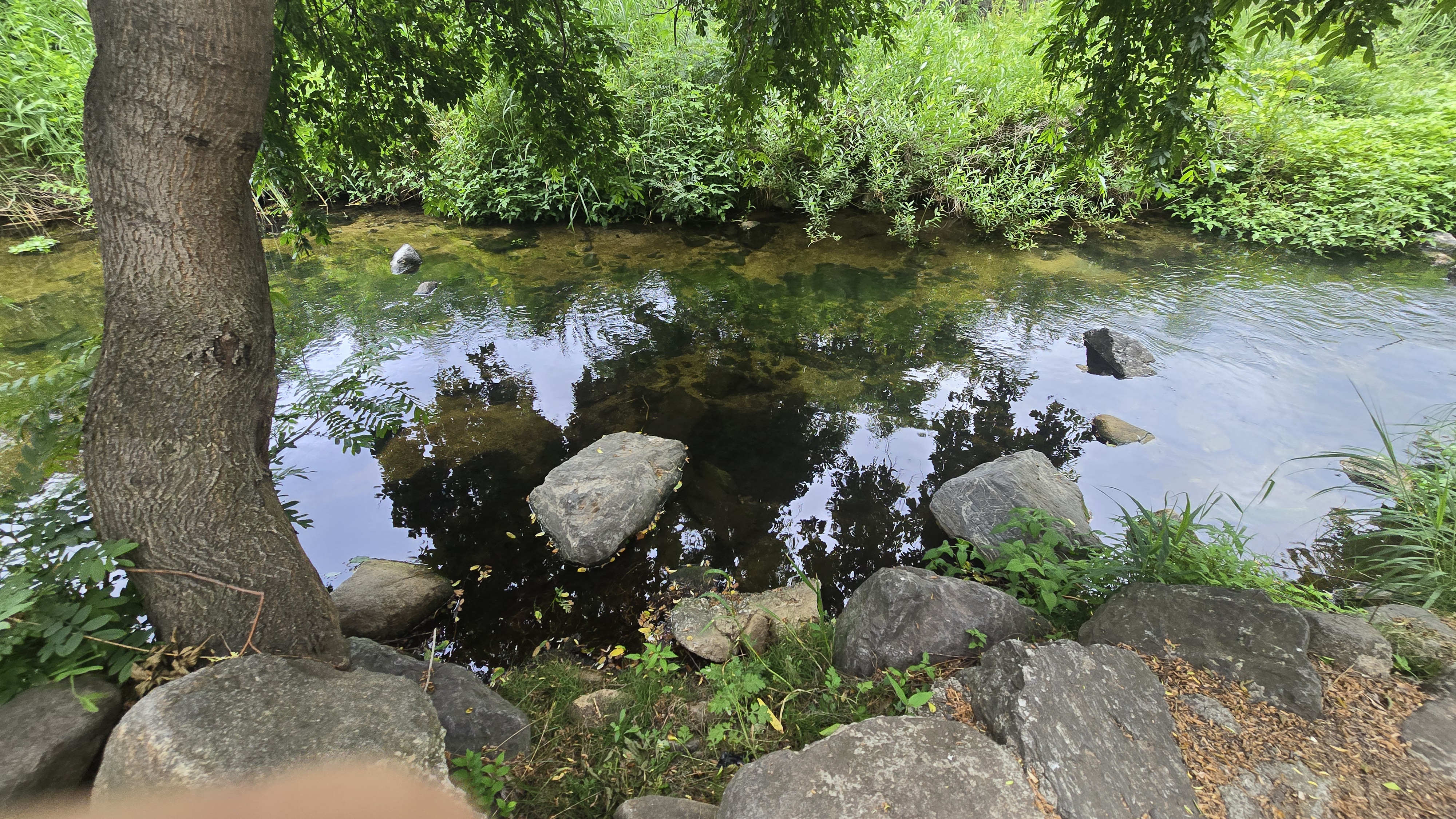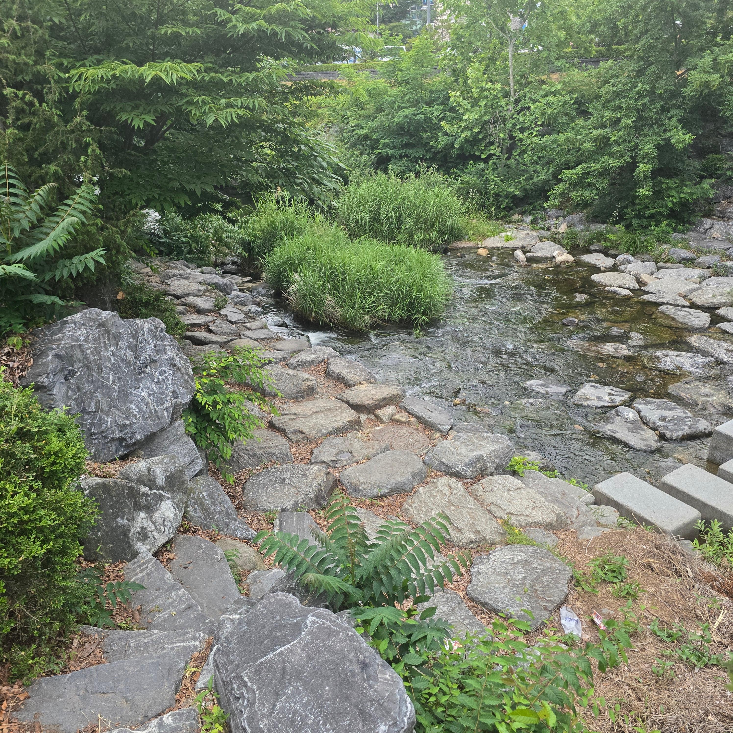 2025.06.15/ #도시기록 #안양 #삼성천 / 경수대로~중초사교~마애종교~예술공원교 구간 삼성천 풍경. 녹음 짙은 나무 그늘의 천변 산책길이 아름다운 곳. 하천 물 깊이가 제법 깊다. 온갖 물고기들이 바글바글하다.